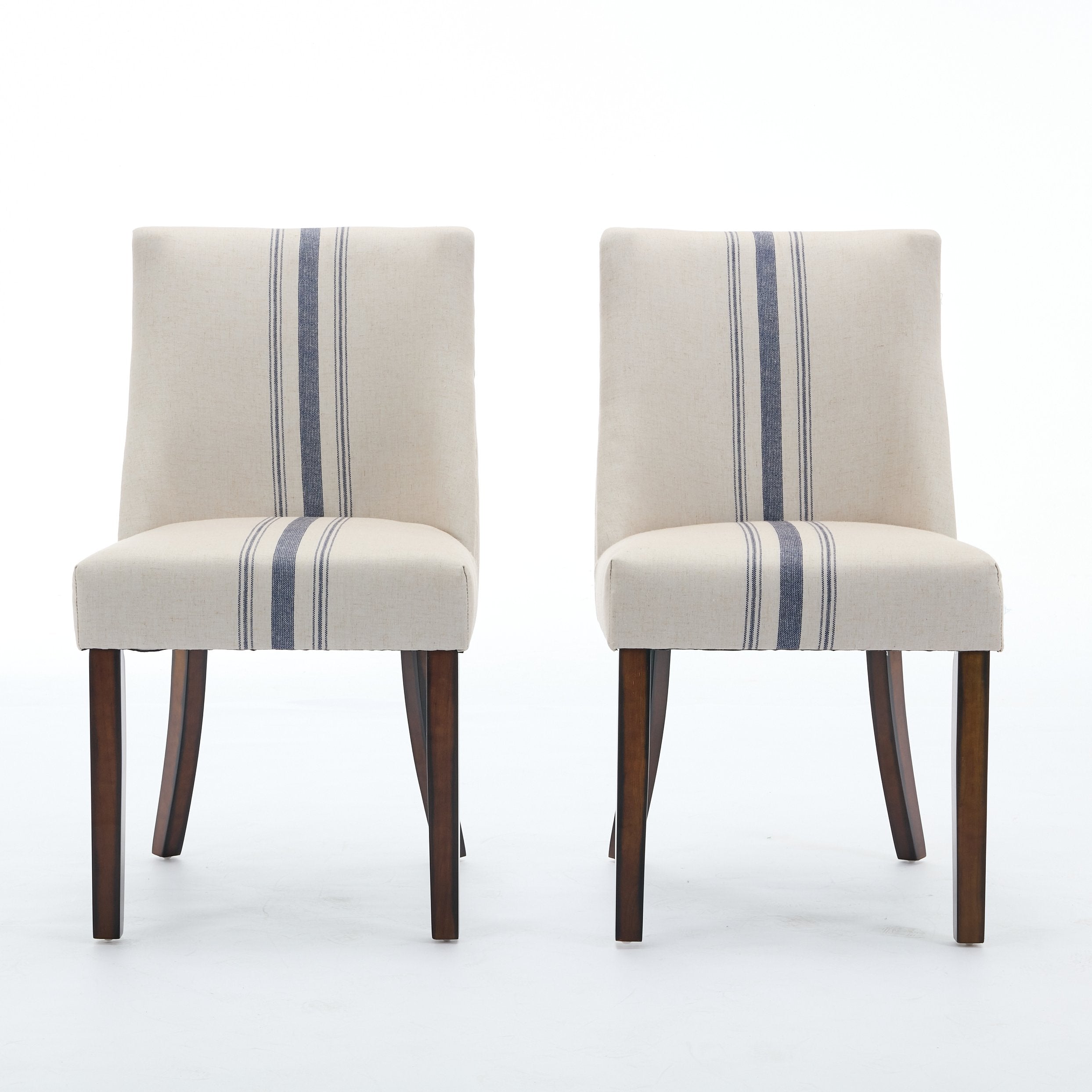 Elevate your dining space with this set of two beige upholstered chairs that blend contemporary simplicity with warm, country-inspired details. Designed for comfort and everyday durability, these chairs feature plush seating, tapered rubberwood legs, and tasteful nailhead trim—making them a refined addition to both formal and casual dining rooms.