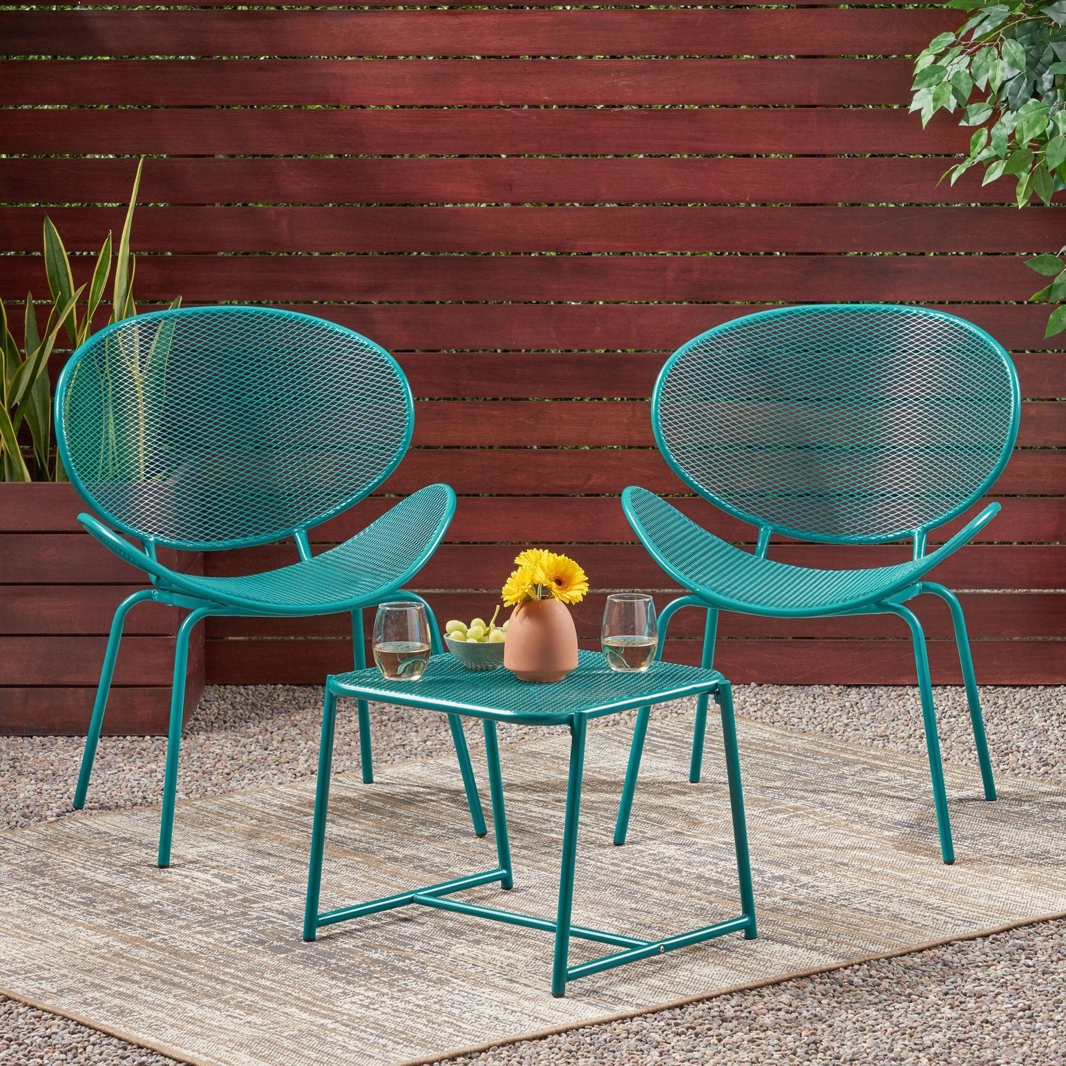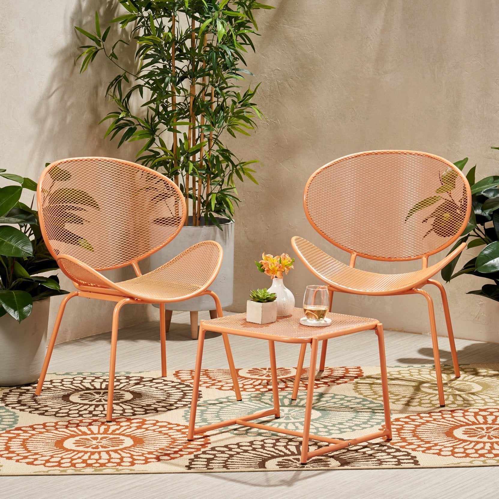 - MODERN: With a delightful mesh motif contrasted perfectly by its rounded edges, our table is the ideal modern accessory for your outdoor space. Finished with shell frames, this set not only has a sleek, minimalistic look but also provides a stable structure.