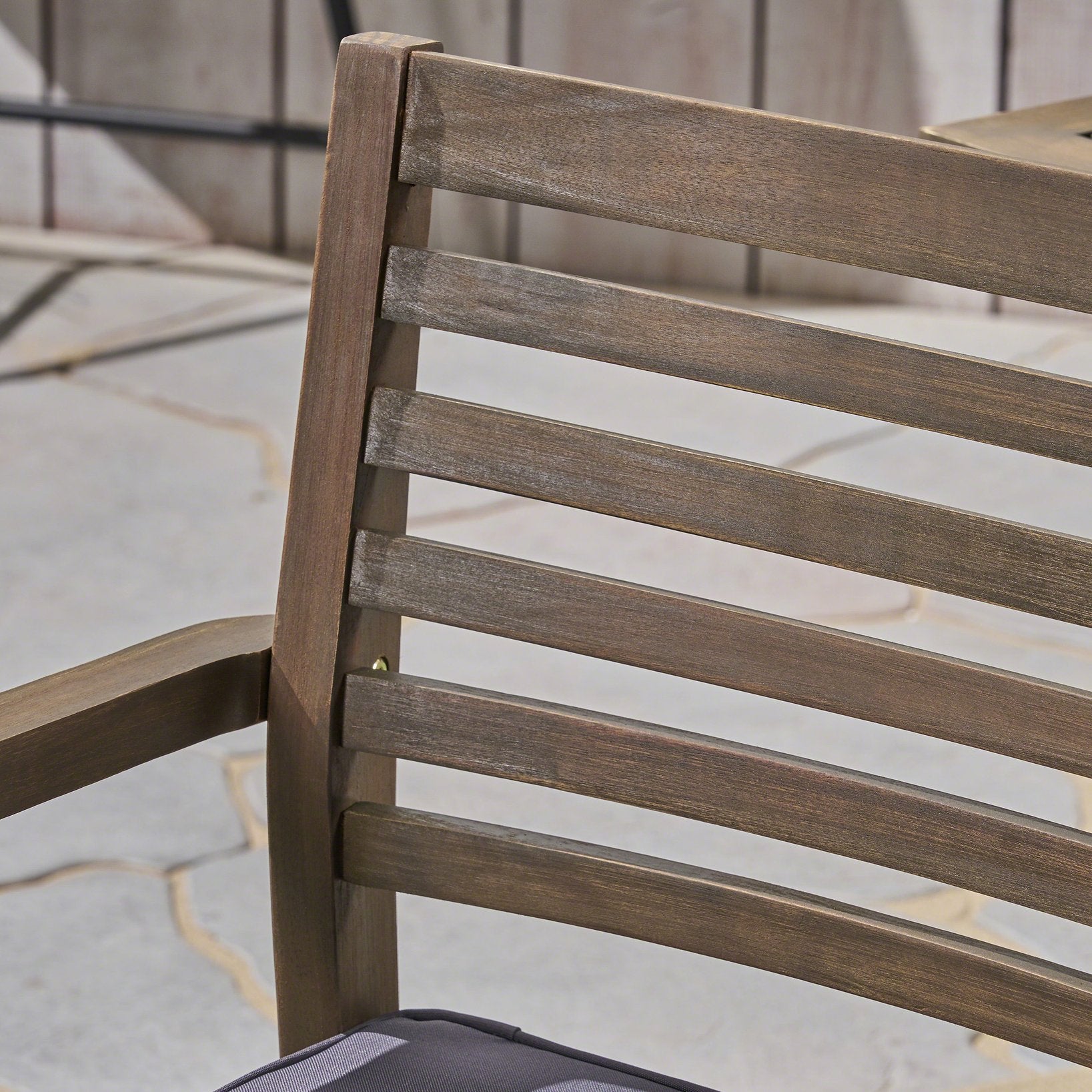 - Durability: Natural weather resistance of acacia wood and water-resistant cushion fabric help the set withstand outdoor conditions