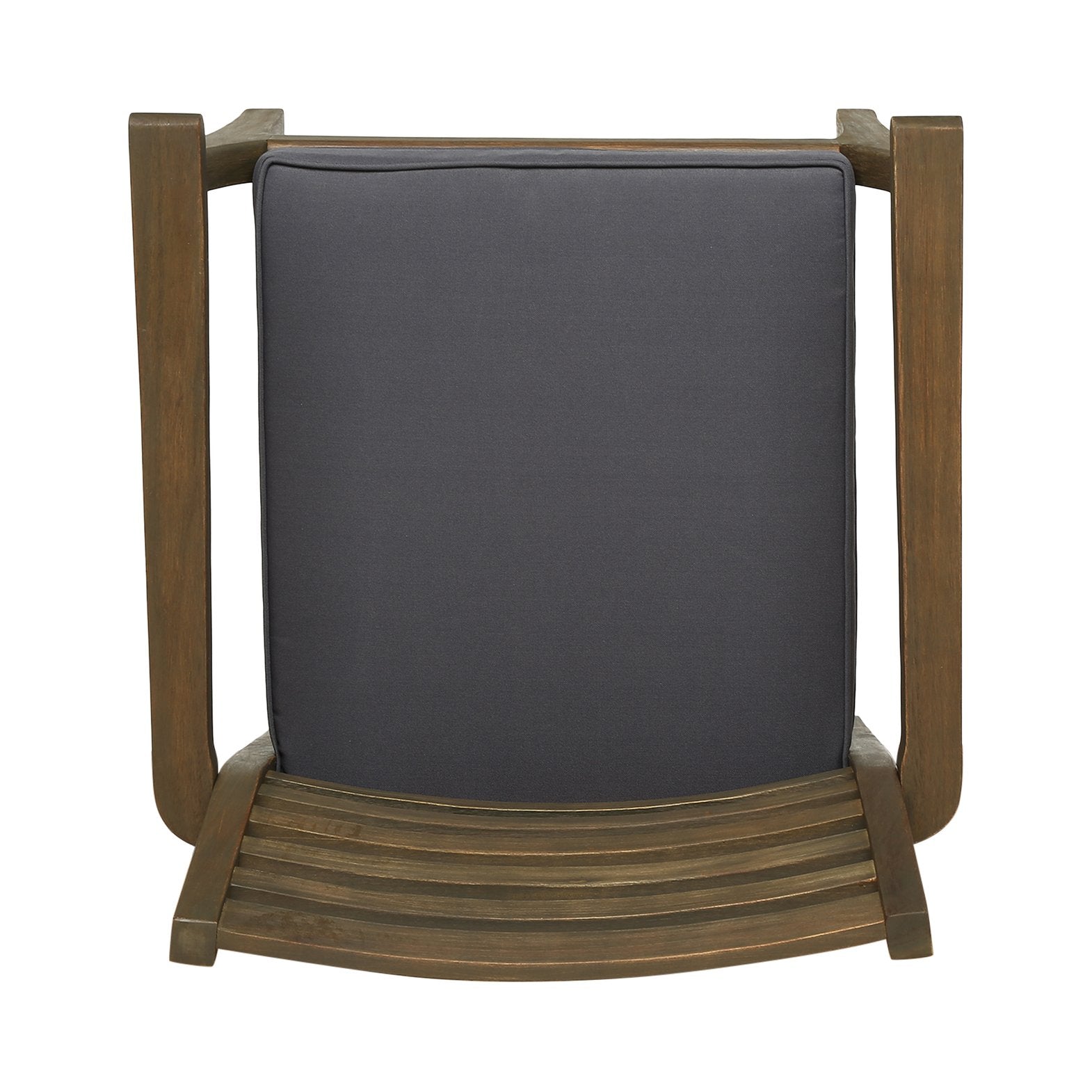 - Comfort: Ergonomic slatted back and cushioned seat for relaxed seating; cushions include Velcro straps to keep them securely in place
