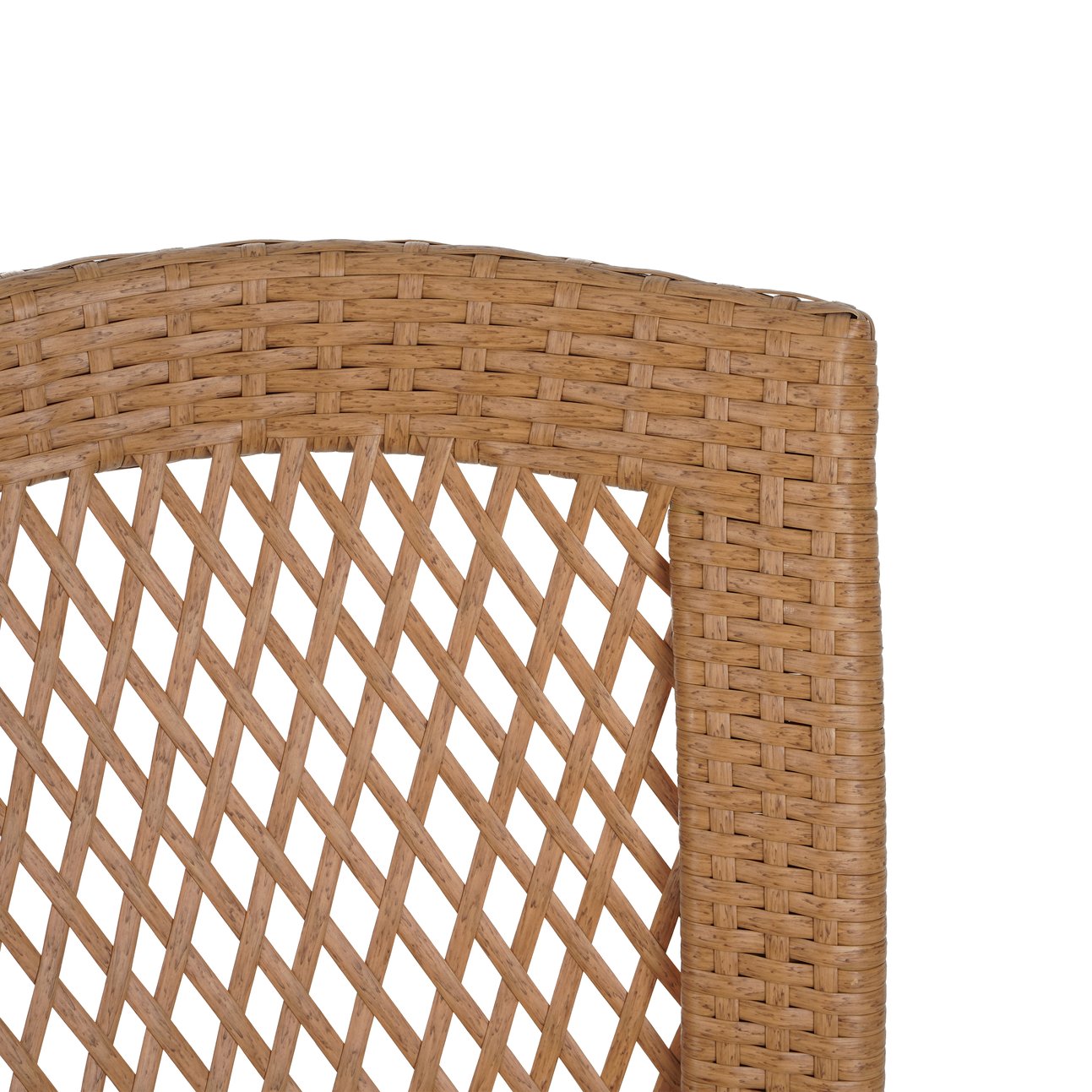 - Quality Craftsmanship: Made with top-quality polyethylene wicker wrapped around an iron frame, these chairs offer both durability and aesthetic appeal. The hand-crafted details and light brown finish ensure a refined look for any outdoor space.