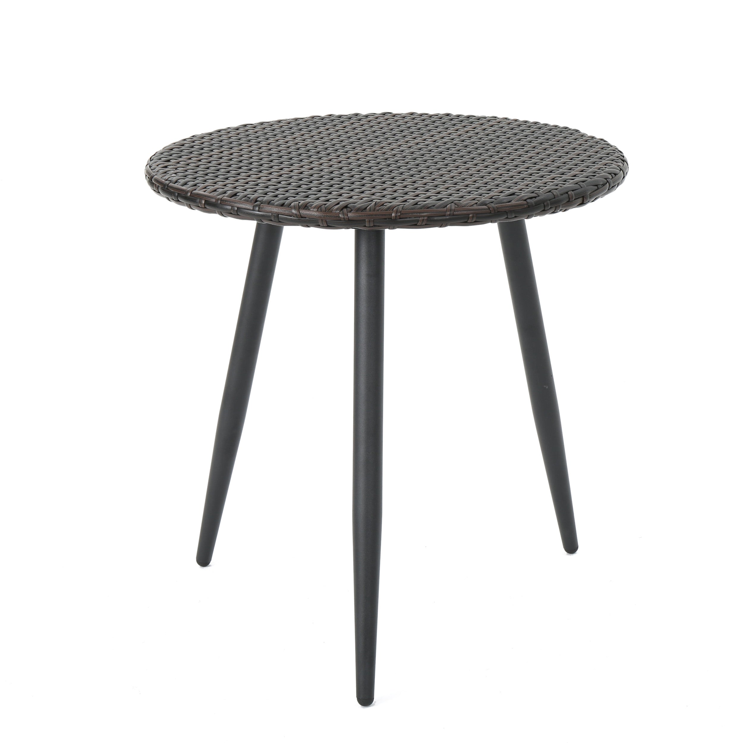 - Create an intimate corner in your backyard with this charming chat set. Made from highest-quality wicker over an iron construction, the legs of the table and chairs feature a heat-transferred wood over metal, meaning that they will continue to look good whatever the weather brings. A perfect place for two people to enjoy the outdoors together.