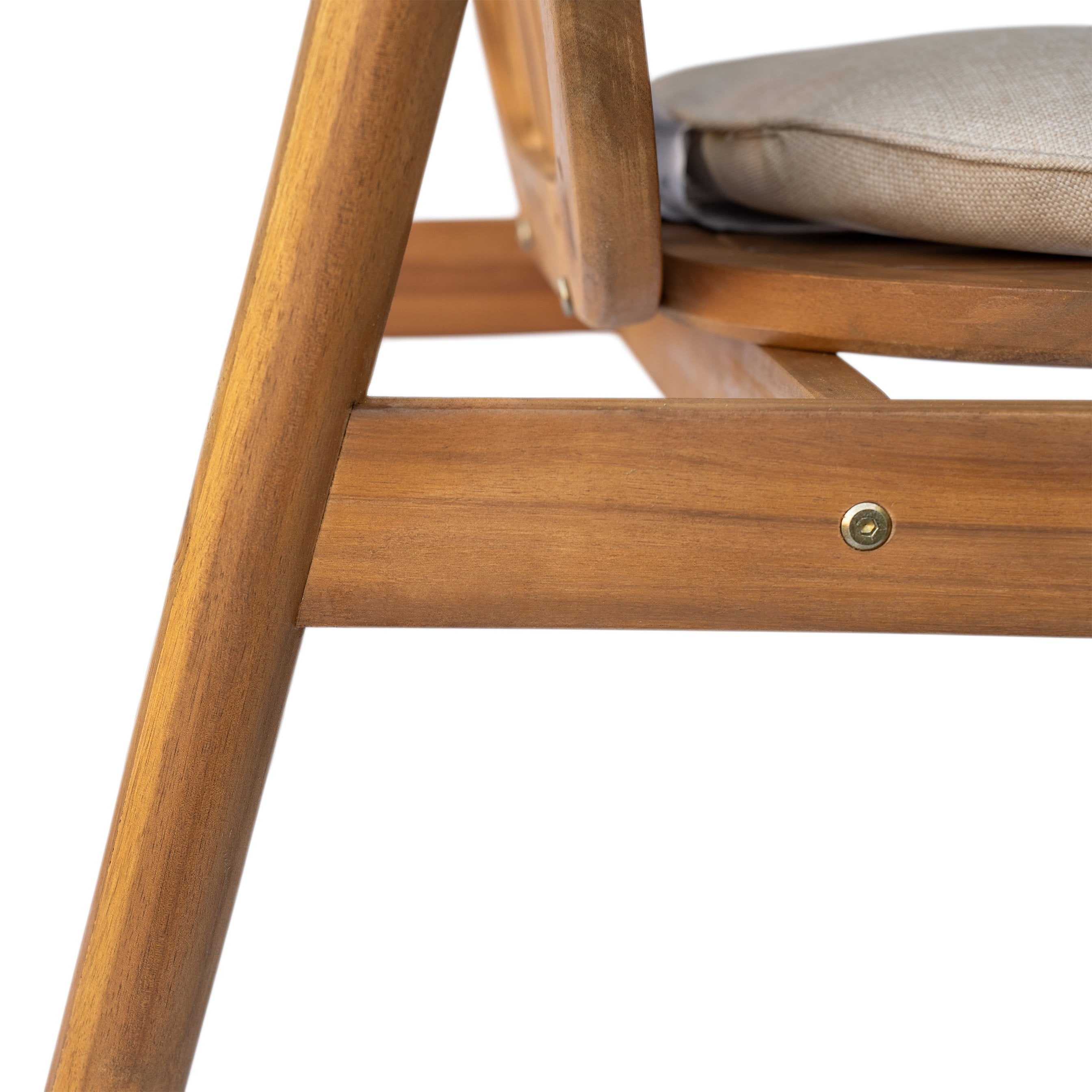 - Finish & Color: Natural teak-tone wood with beige polyester cushion covers for a neutral, versatile look