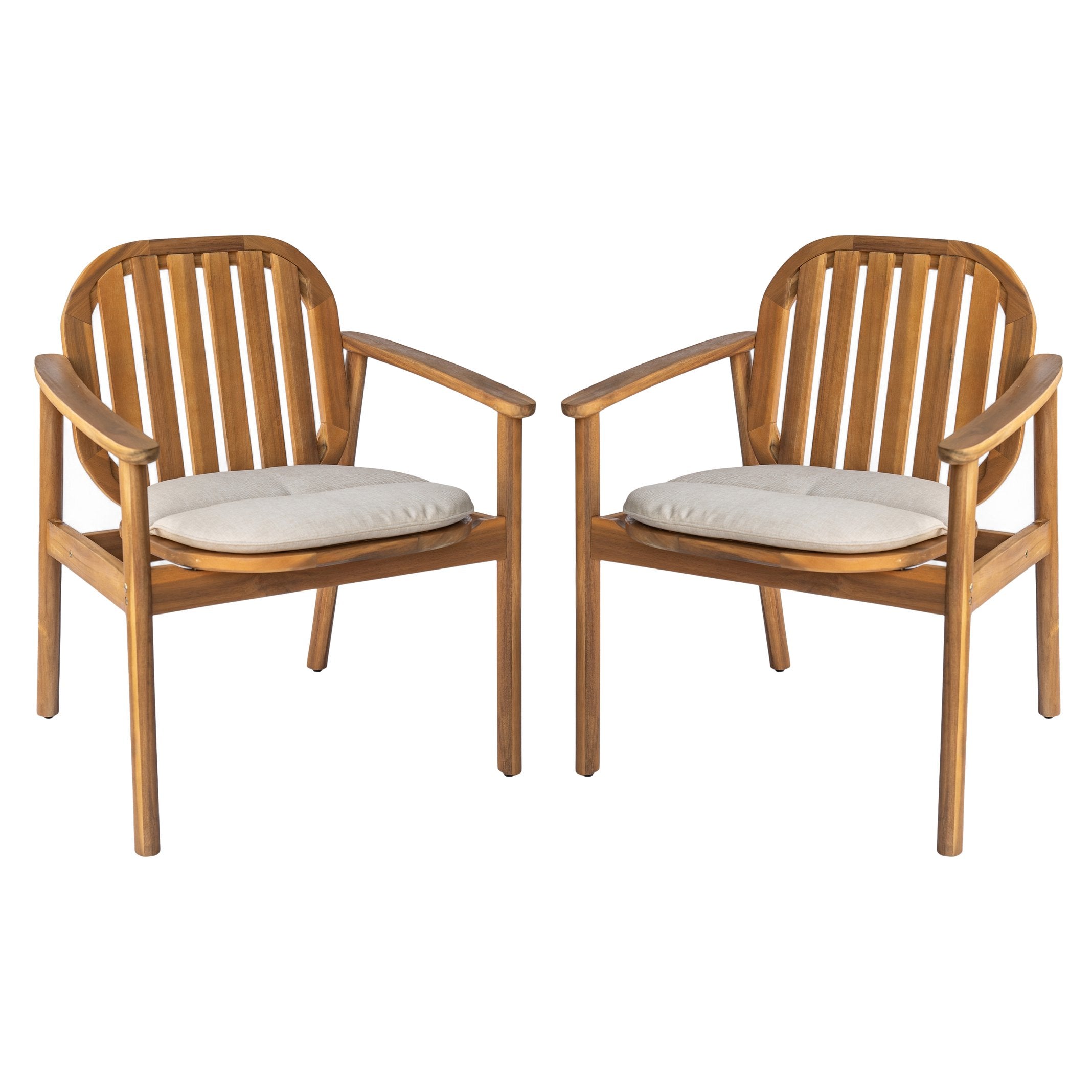 Enjoy relaxed, stylish dining with this pair of Meja dining chairs—designed to blend natural wood warmth with comfortable seating. Thoughtfully crafted from acacia and eucalyptus woods and finished with neutral beige cushions, these chairs bring durable, weather-resistant functionality and understated elegance to both indoor and outdoor spaces.
