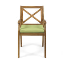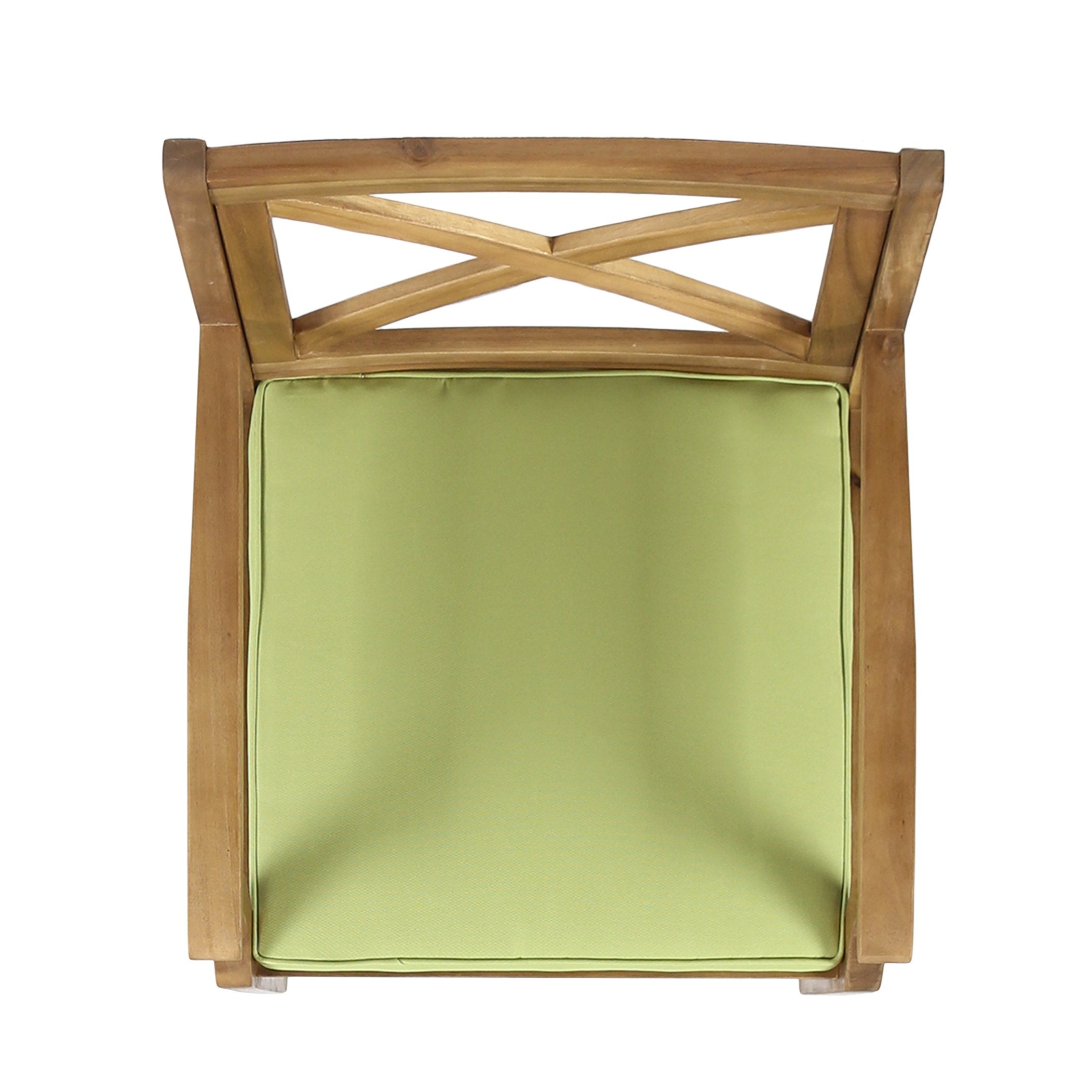 - Durable and Comfortable: Crafted from acacia wood with water-resistant fabric cushions, these chairs are designed to withstand the elements while providing comfort for extended outdoor use. The refreshing cream green cushions add a pop of color and a hint of nature to your outdoor space.