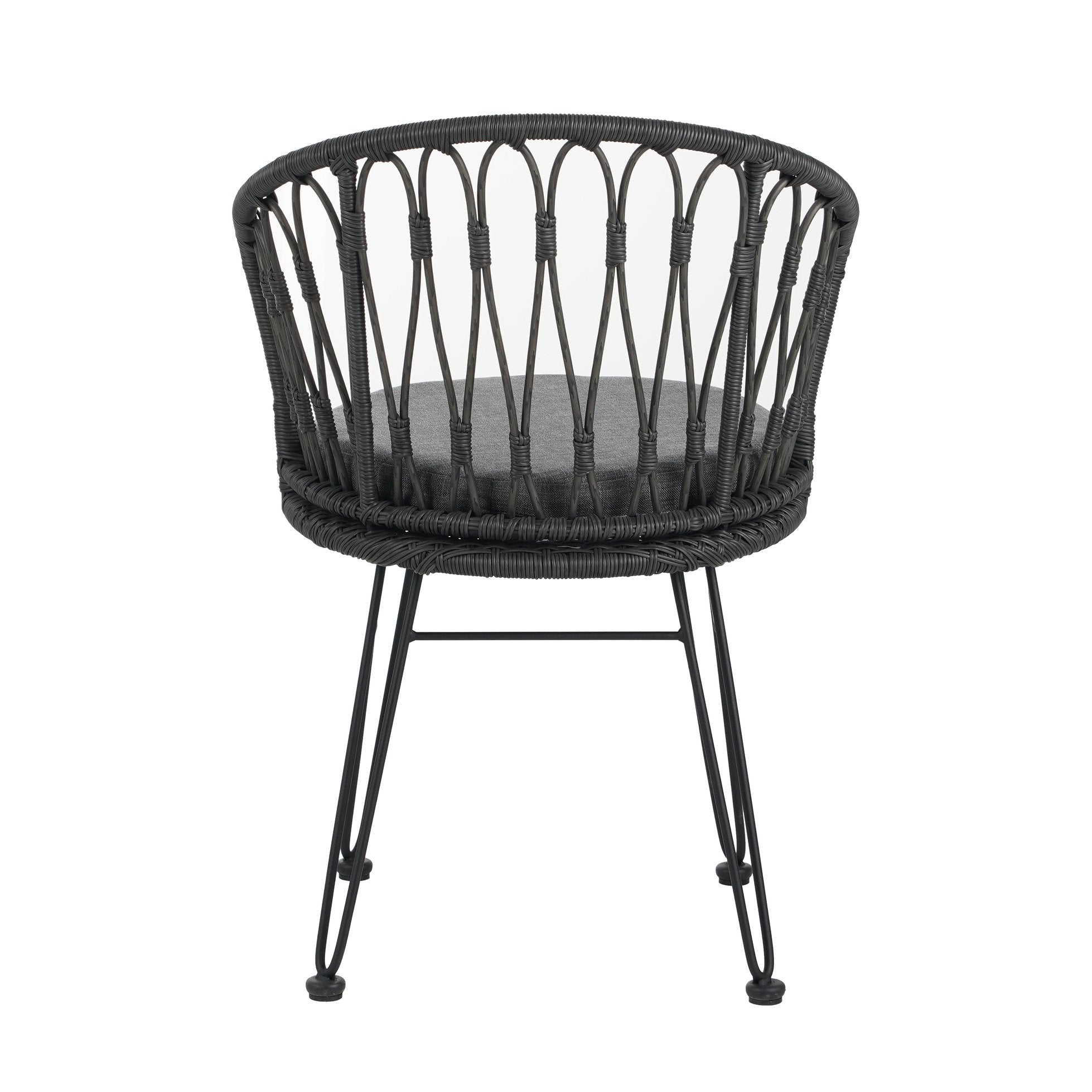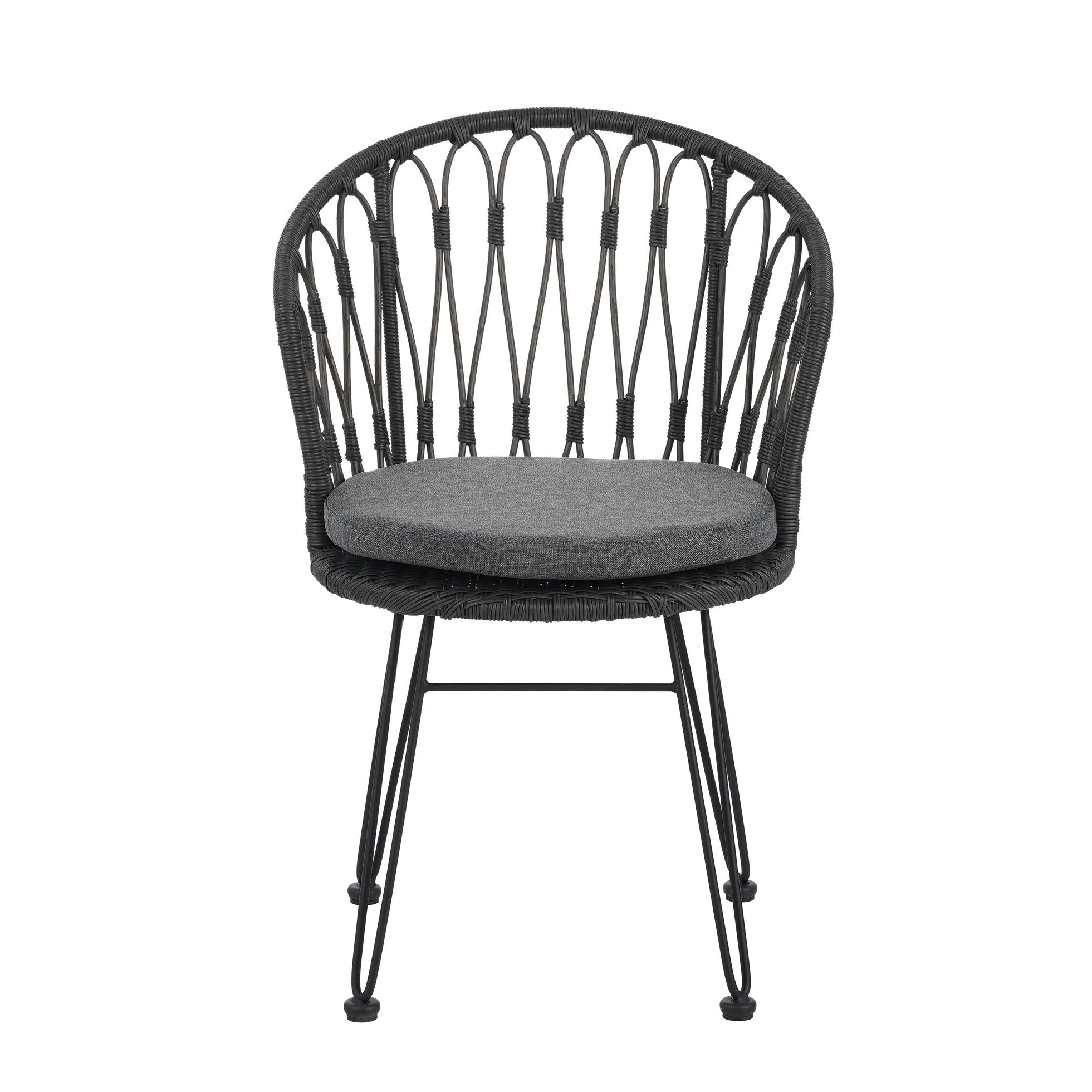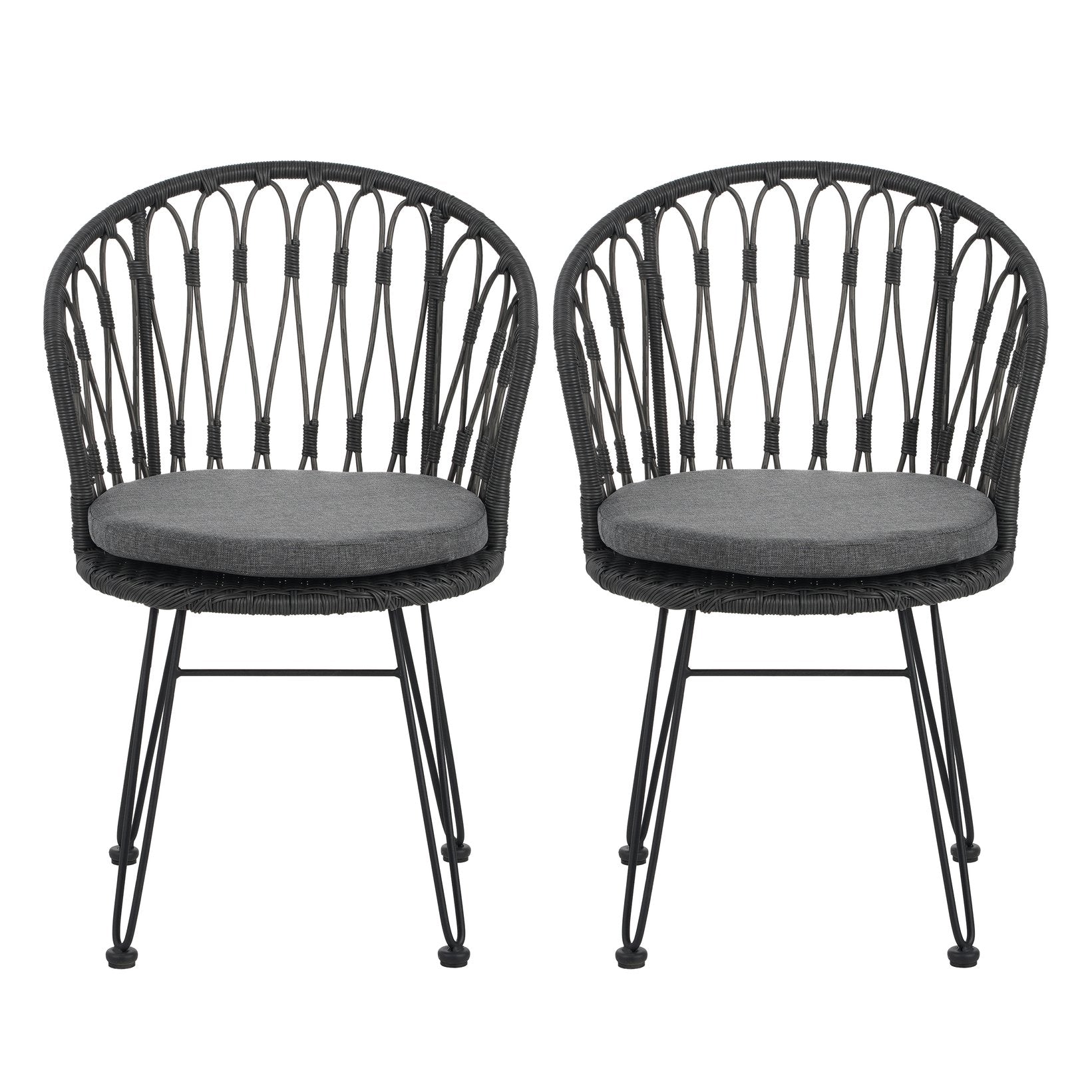 Enjoy relaxed, contemporary seating with the TAVON chair set—two stylish gray rattan chairs with coordinating cushions that blend durability and comfort for indoor or covered outdoor use. Thoughtfully designed for easy assembly and everyday living, this set delivers a modern silhouette, sturdy iron framing, and plush cushions to elevate your patio, sunroom, or living space.