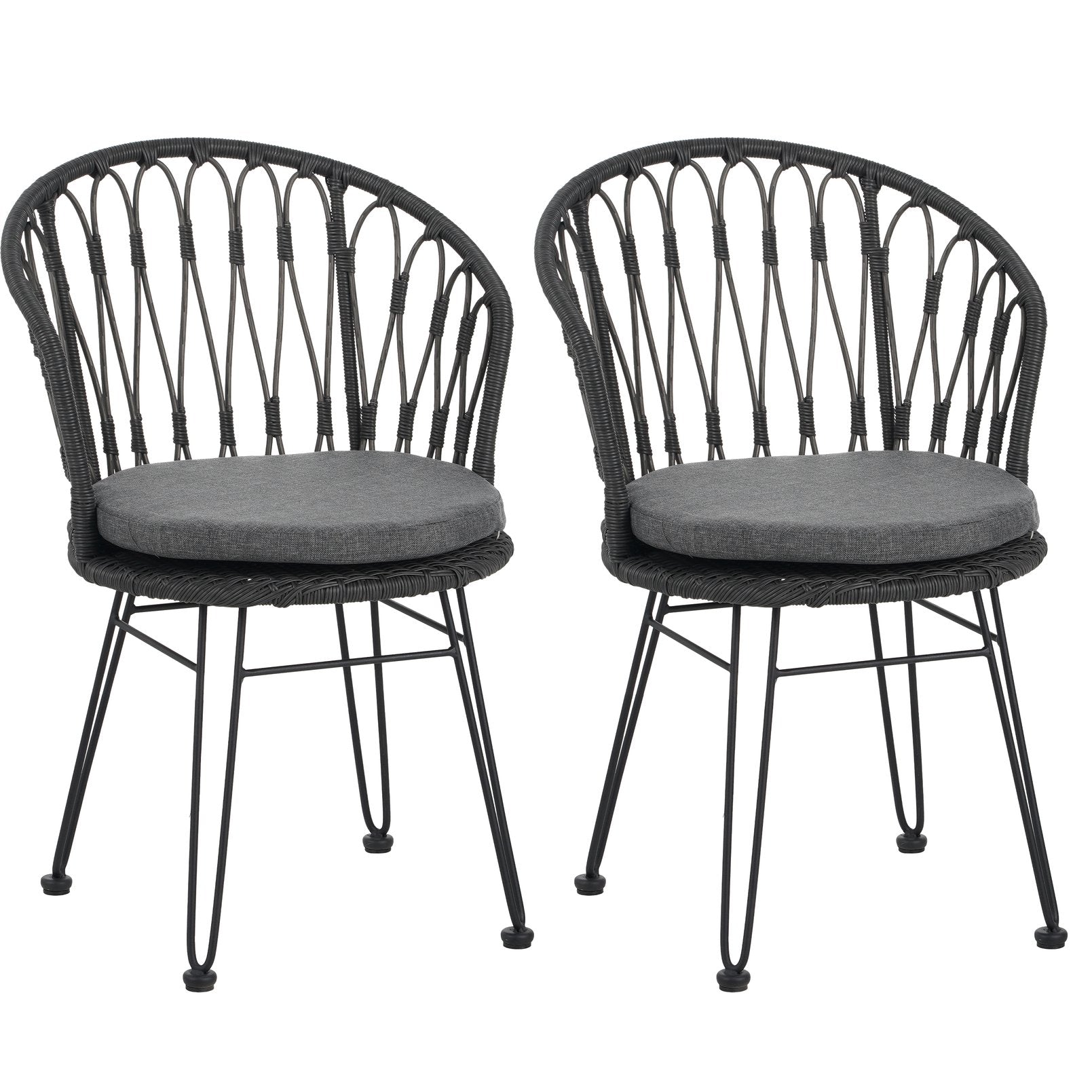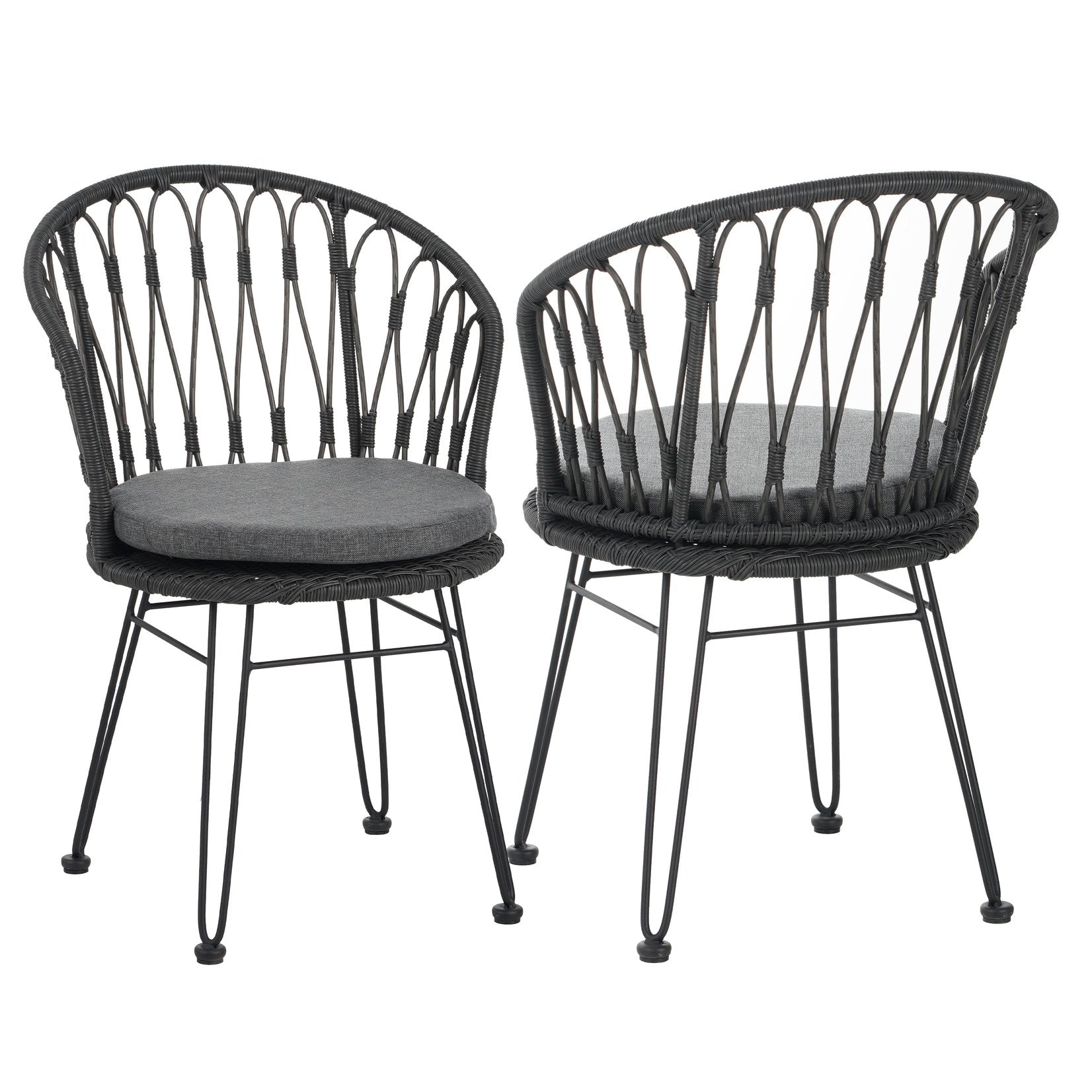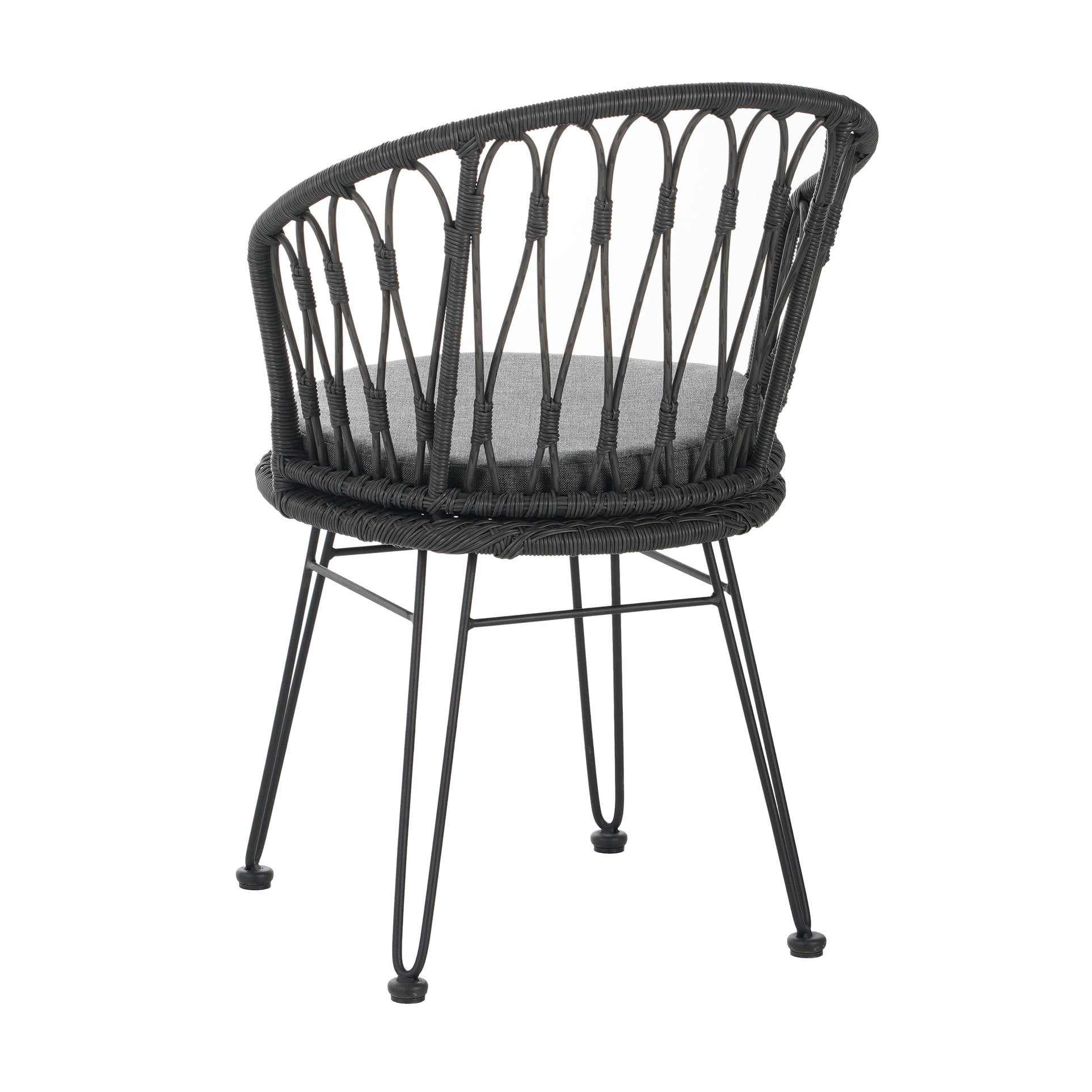 Enjoy relaxed, contemporary seating with the TAVON chair set—two stylish gray rattan chairs with coordinating cushions that blend durability and comfort for indoor or covered outdoor use. Thoughtfully designed for easy assembly and everyday living, this set delivers a modern silhouette, sturdy iron framing, and plush cushions to elevate your patio, sunroom, or living space.