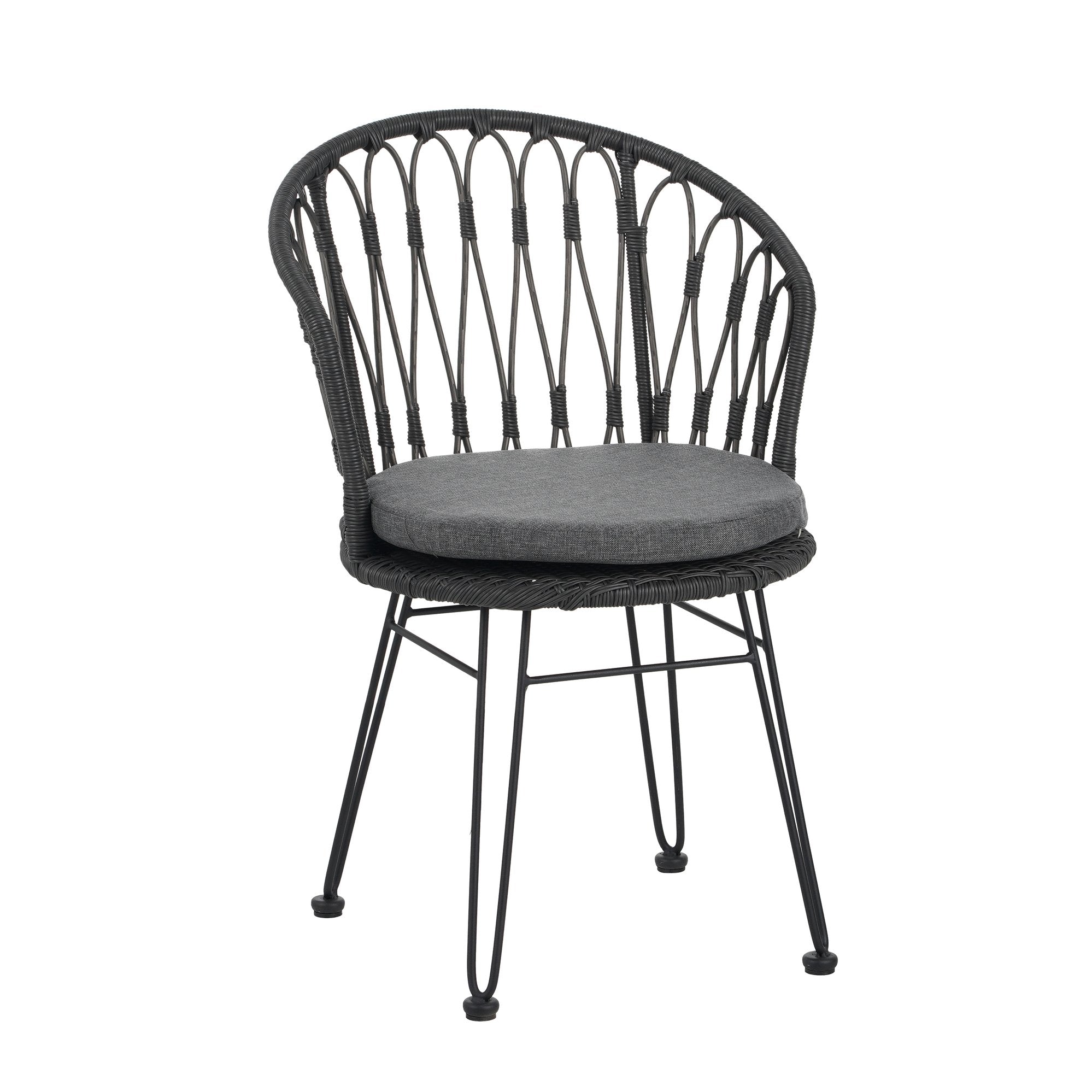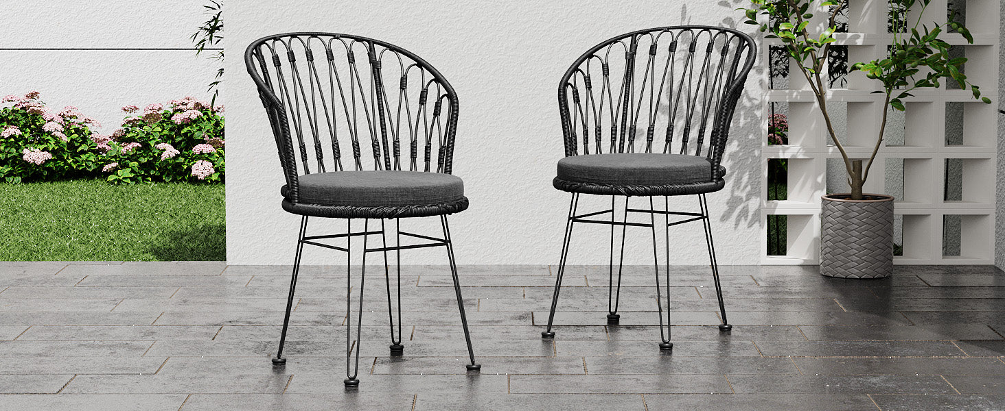 - BOHO INDUSTRIAL: For a carefree, unconventional look and a variety of textures for your patio space, our dining chairs bring an earthy boho touch to your decor. Featuring minimalistic hairpin legs, this set is finished with an industrial influence.