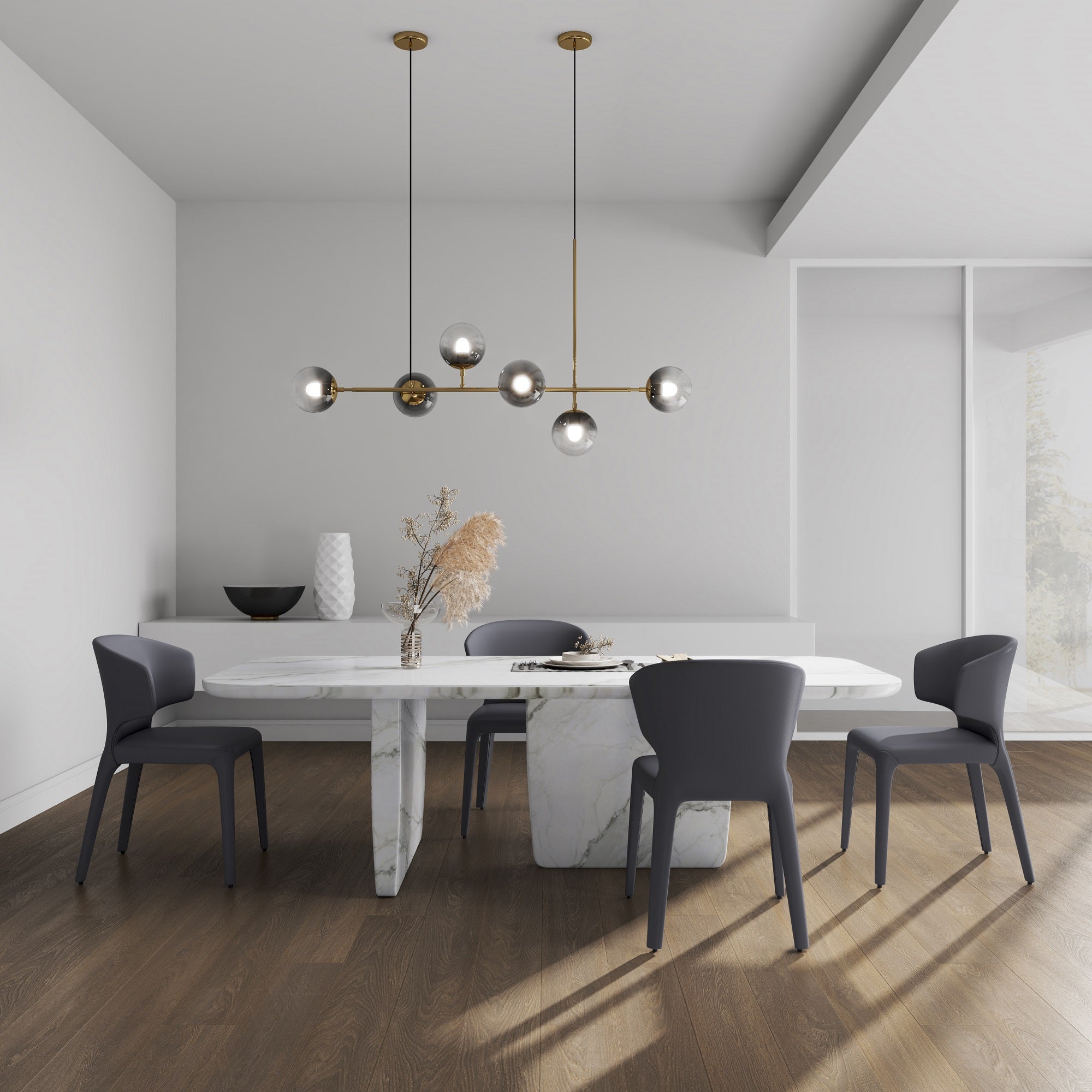 Elevate your dining space with these contemporary upholstered chairs that blend modern lines, comfort, and durability. Designed for everyday use and effortless style, this set of two chairs offers supportive seating with premium upholstery and a sturdy metal frame—perfect for dining rooms, kitchens, or as accent seating.