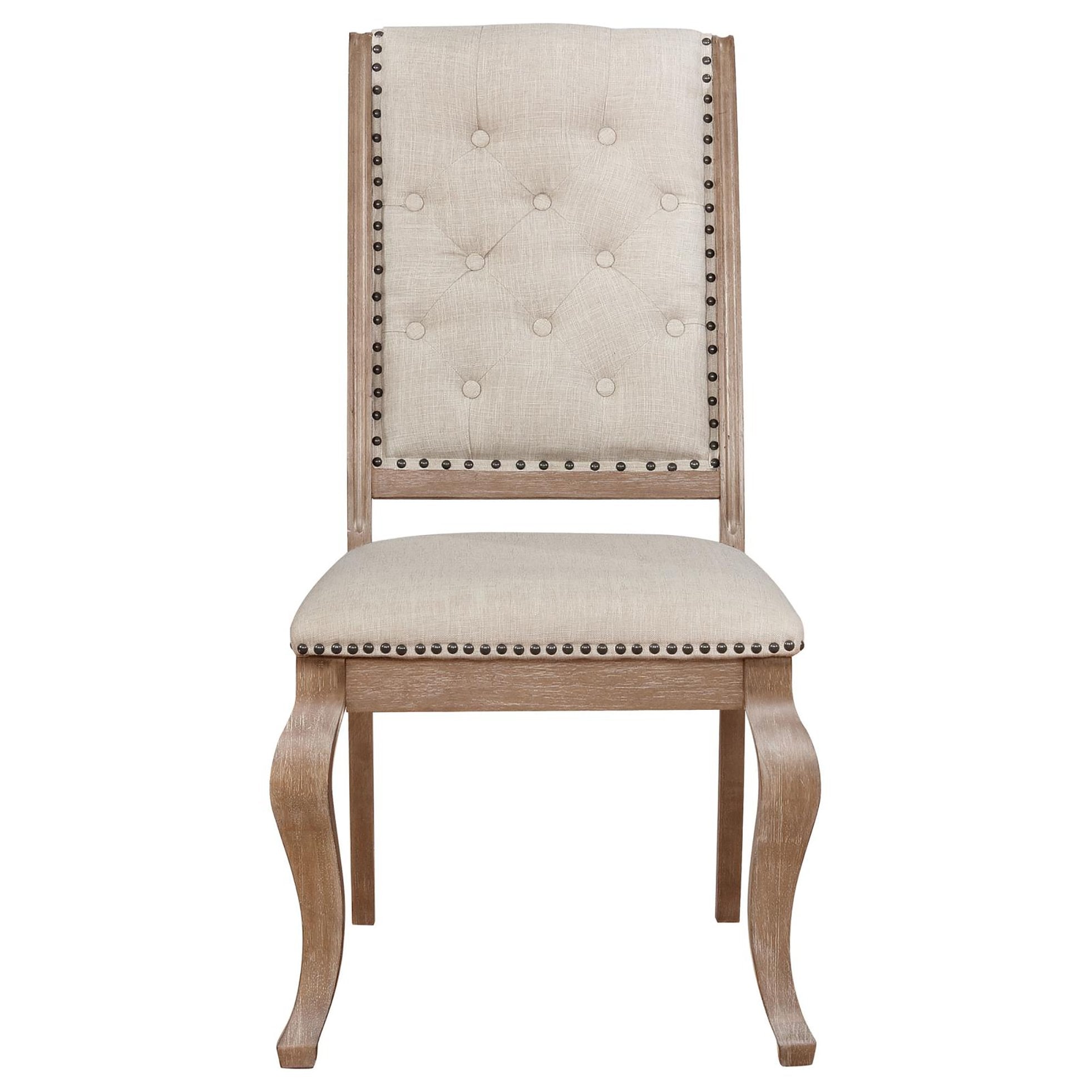 Add a touch of rustic elegance and everyday comfort to your dining room with this two-piece tufted dining chair set. Each chair pairs classic button-tufted cream polyester upholstery with a warm barley-brown frame, delivering visual texture and a timeless silhouette that complements farmhouse, transitional, and cottage-inspired interiors. Thoughtful construction and protective details make these chairs as practical as they are attractive for daily meals and gatherings.