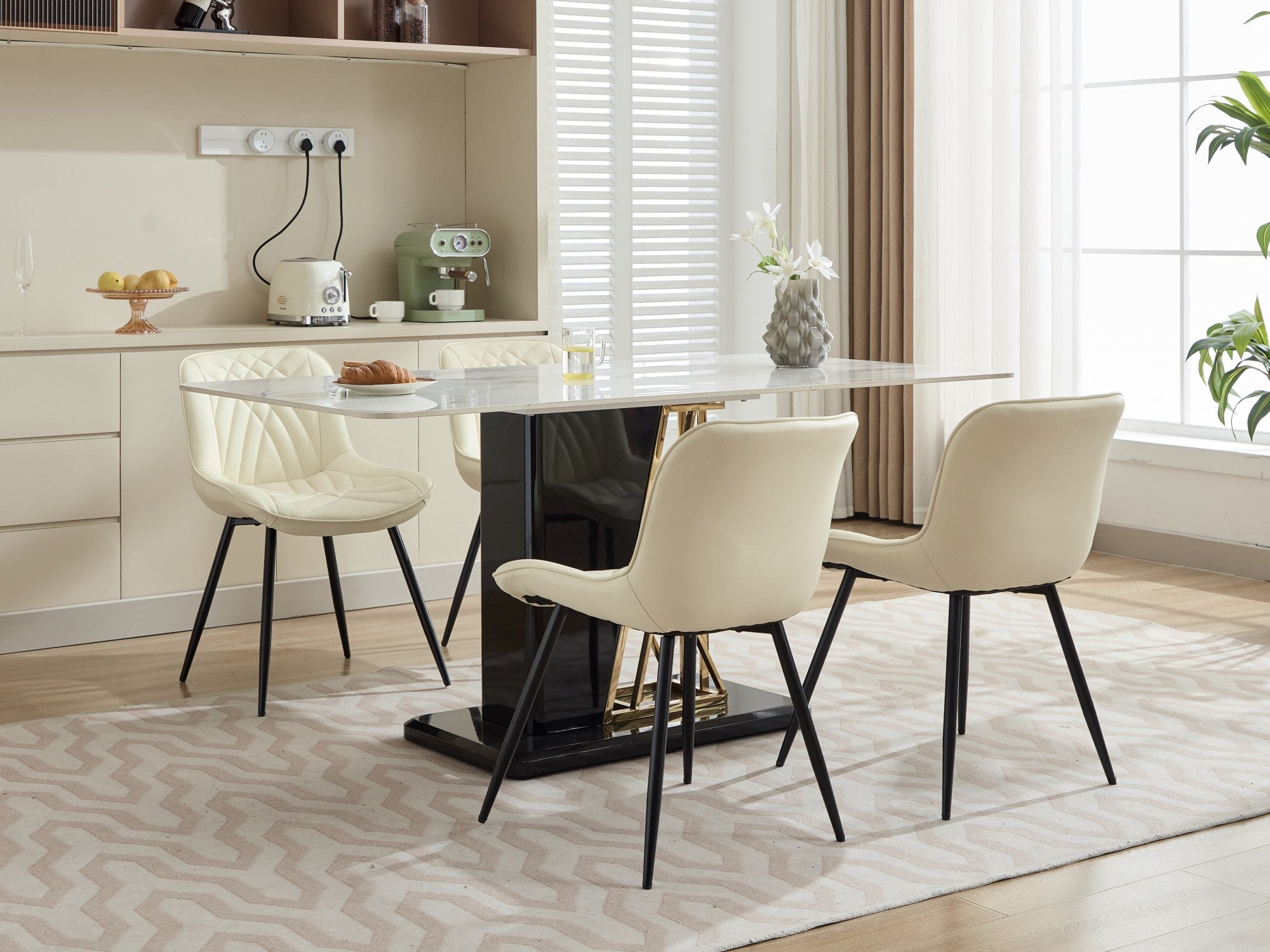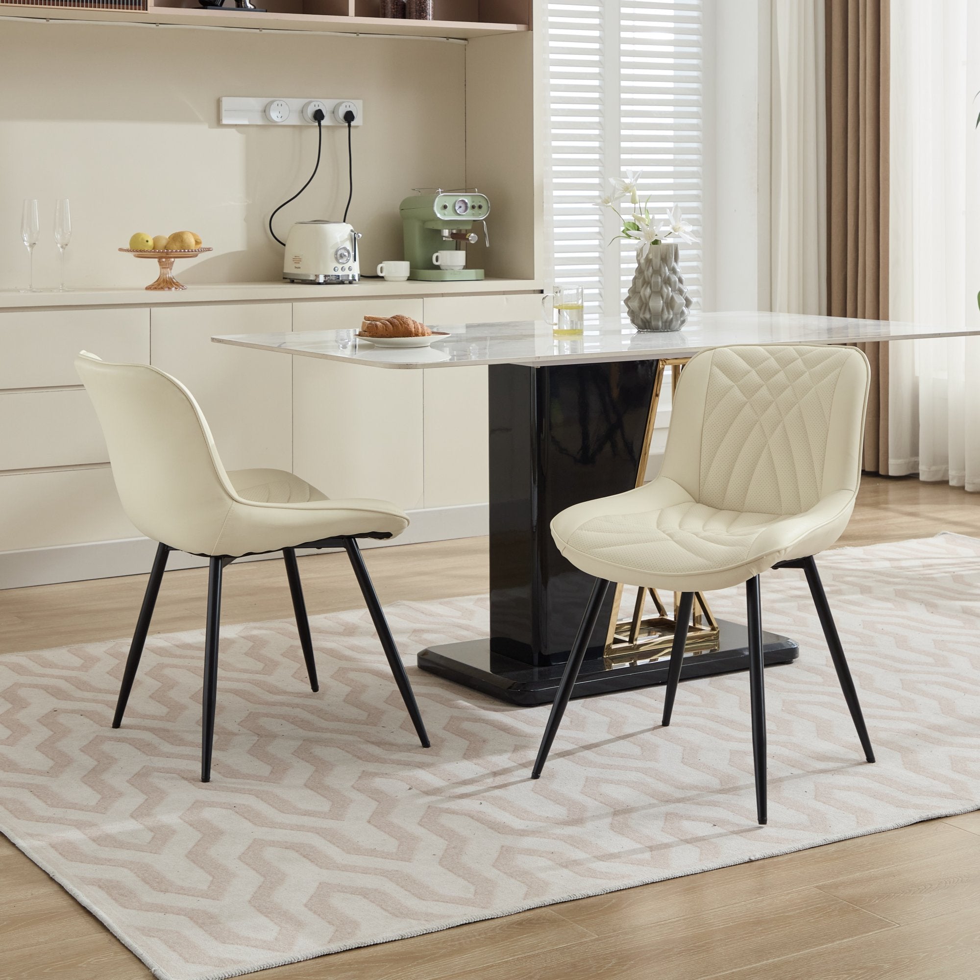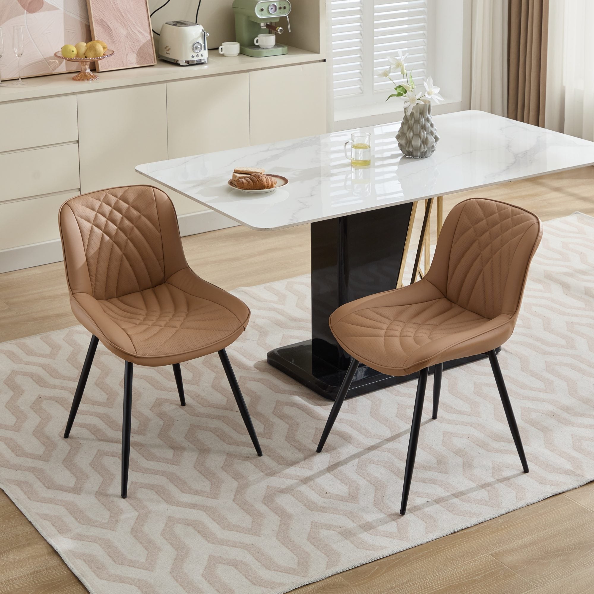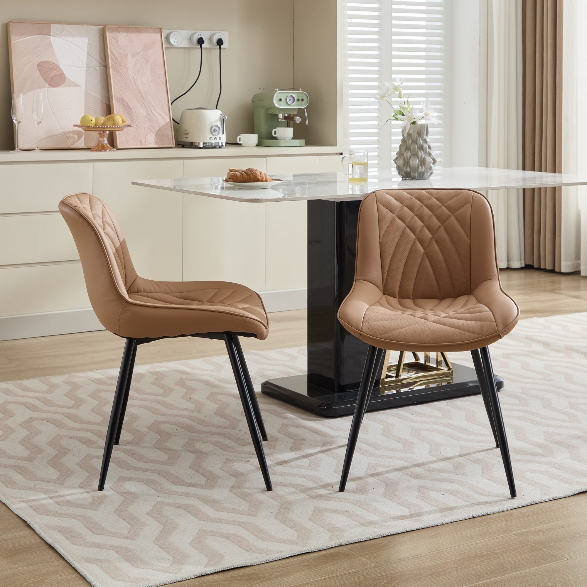 Enjoy stylish, comfortable seating that complements modern and mid-century decor. These upholstered faux-leather dining chairs combine ergonomic design with durable materials to provide supportive, breathable seating for everyday meals and gatherings.
