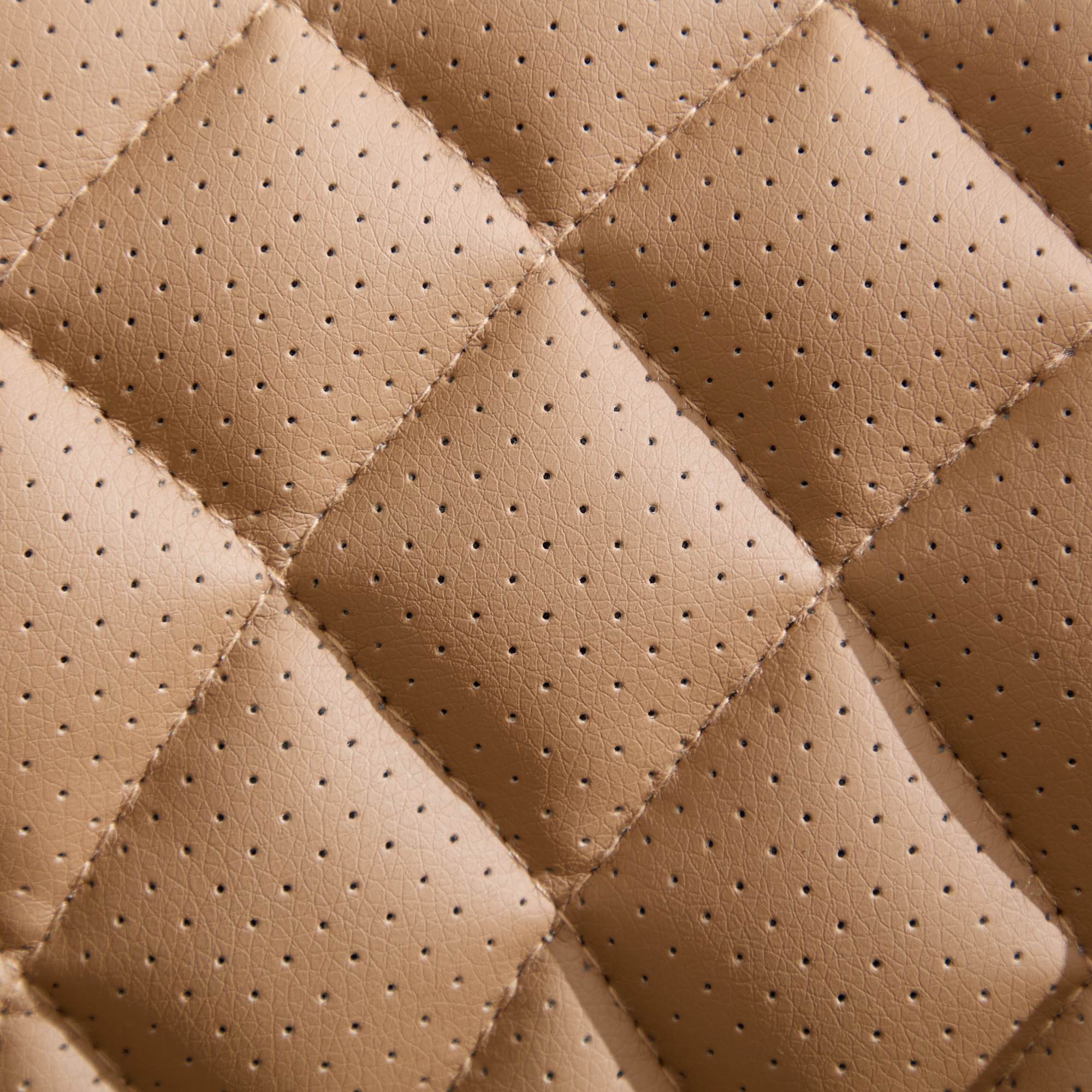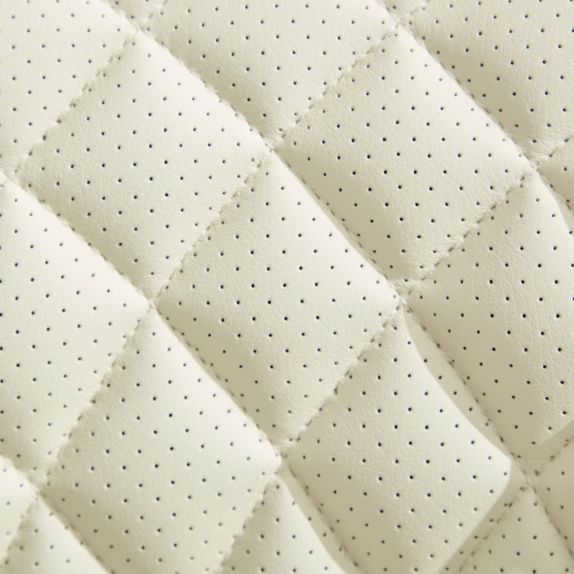 - The PU fabric of the chair cushion adopts a perforated design, which significantly enhances air permeability and prevents your pants from getting sweaty and sticking to your body even when you sit for a long time. Meanwhile, the fabric also utilizes a quilting process with graceful curves. The beautiful sewing workmanship is well-proportioned with concave and convex parts, and it can keep the surface free from wrinkles after use.