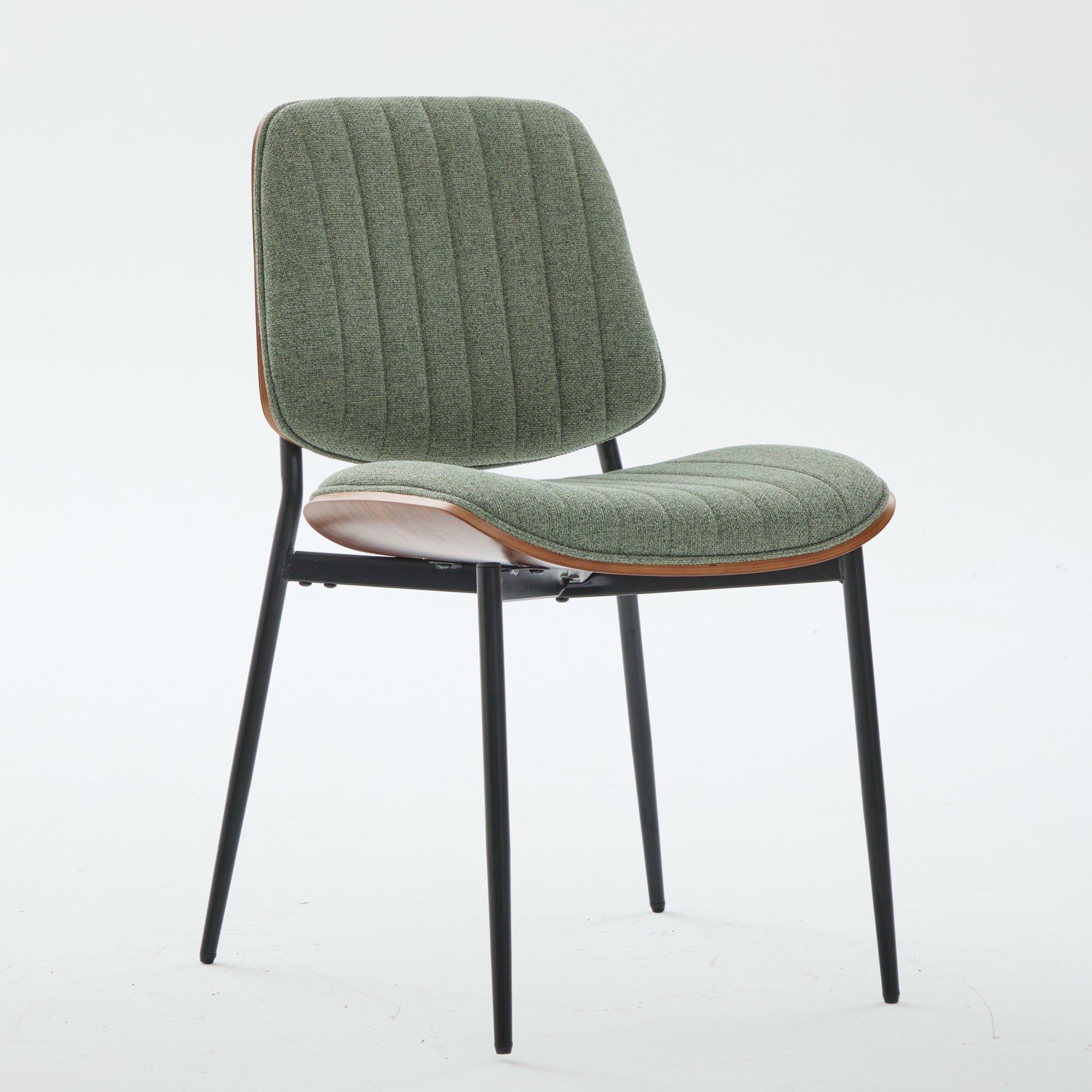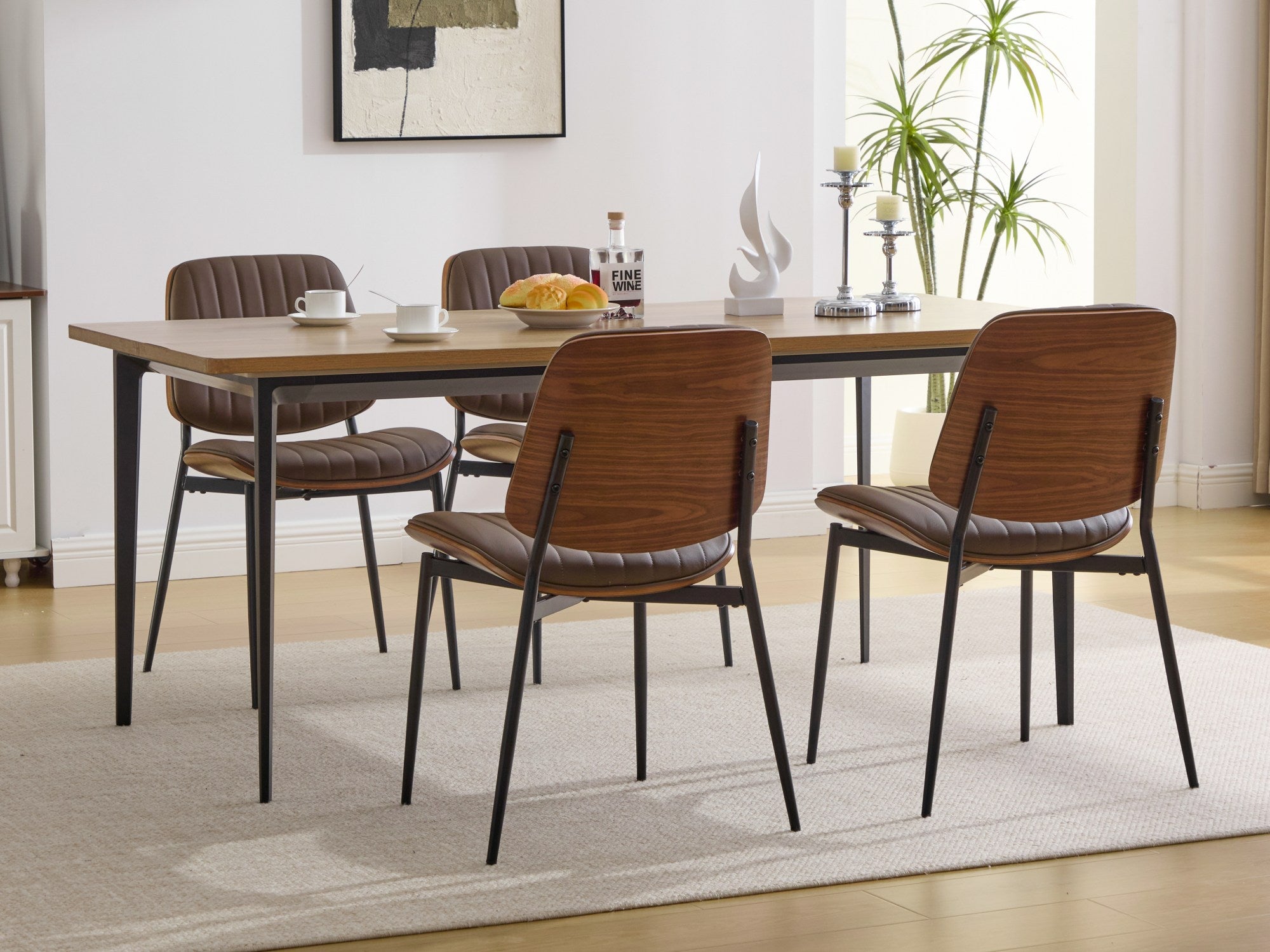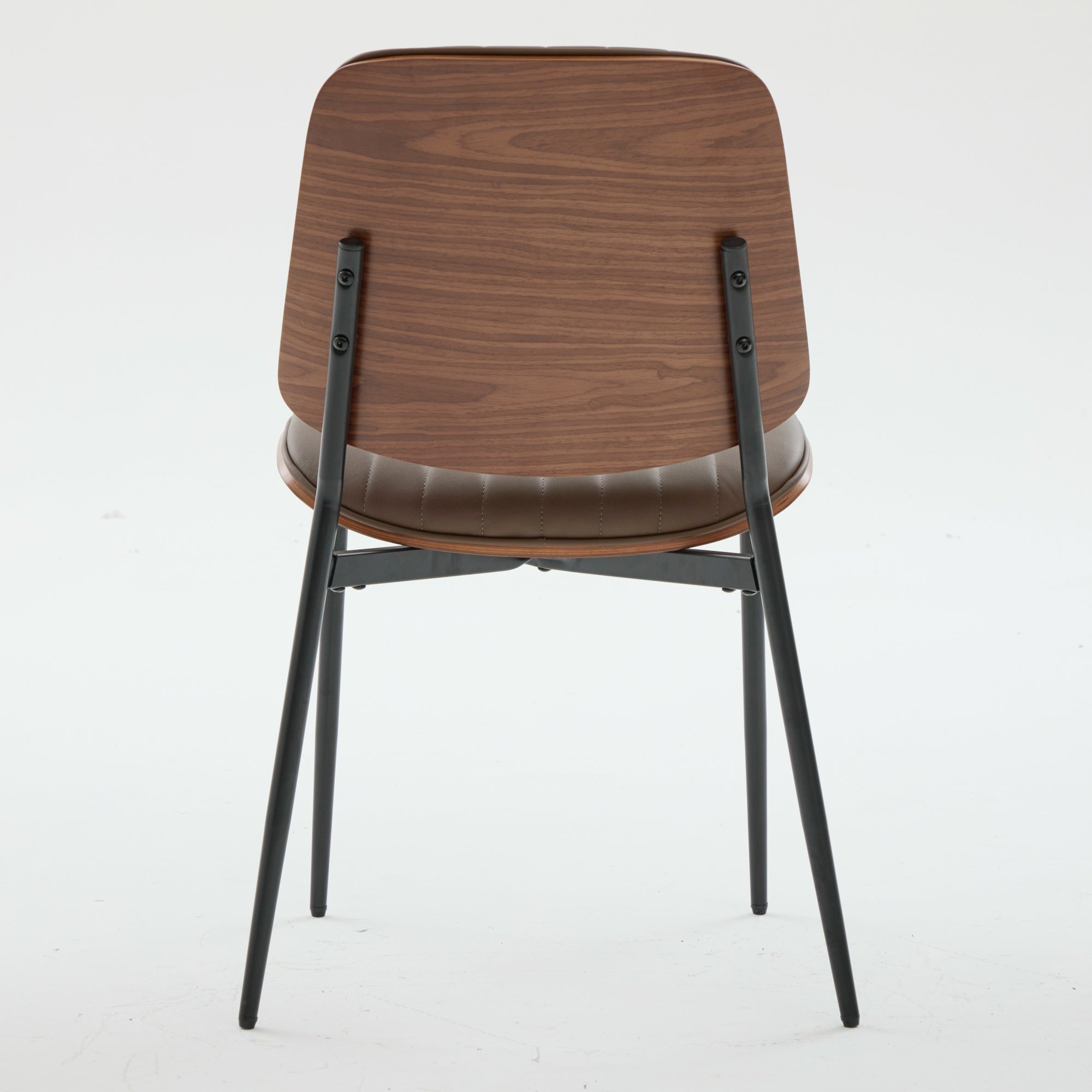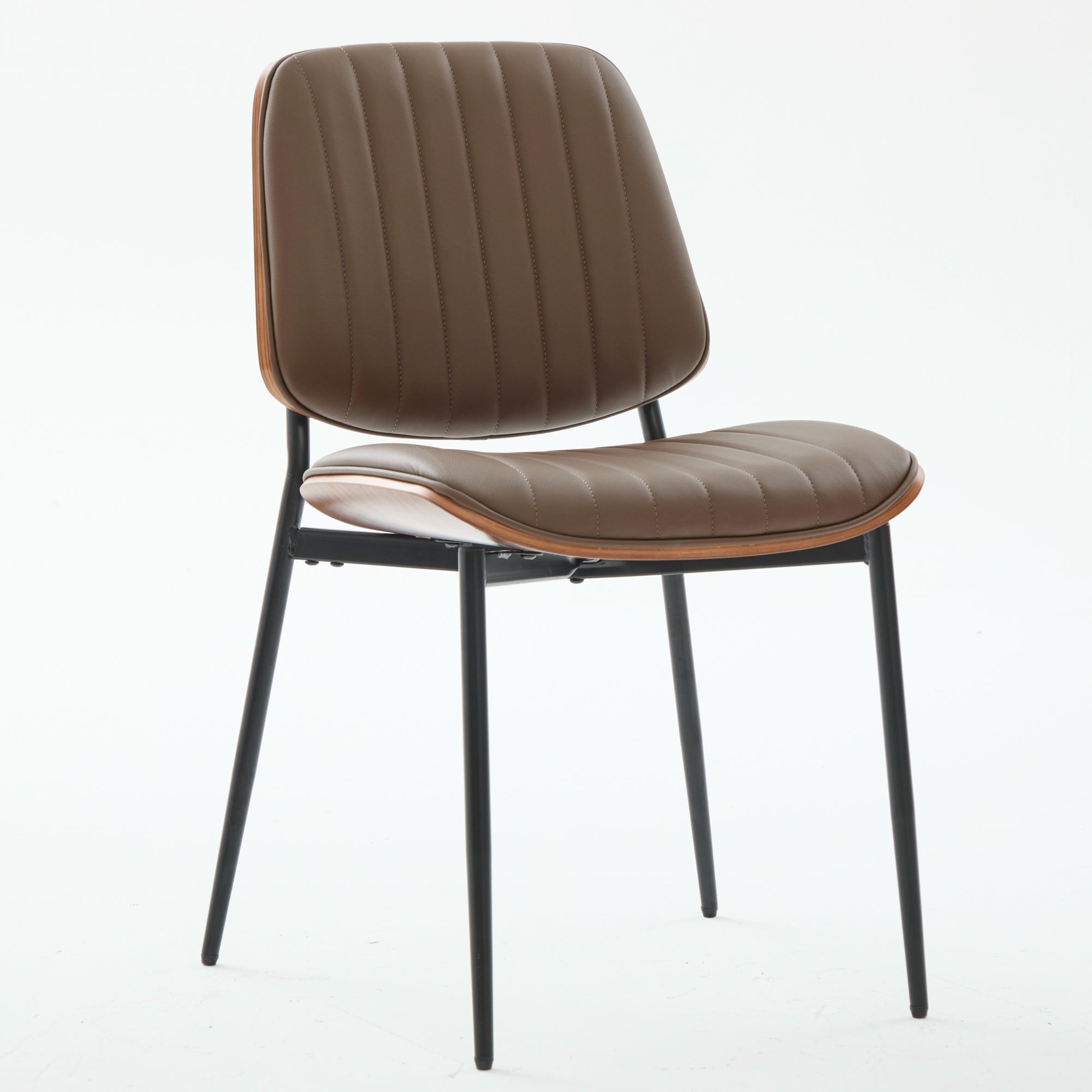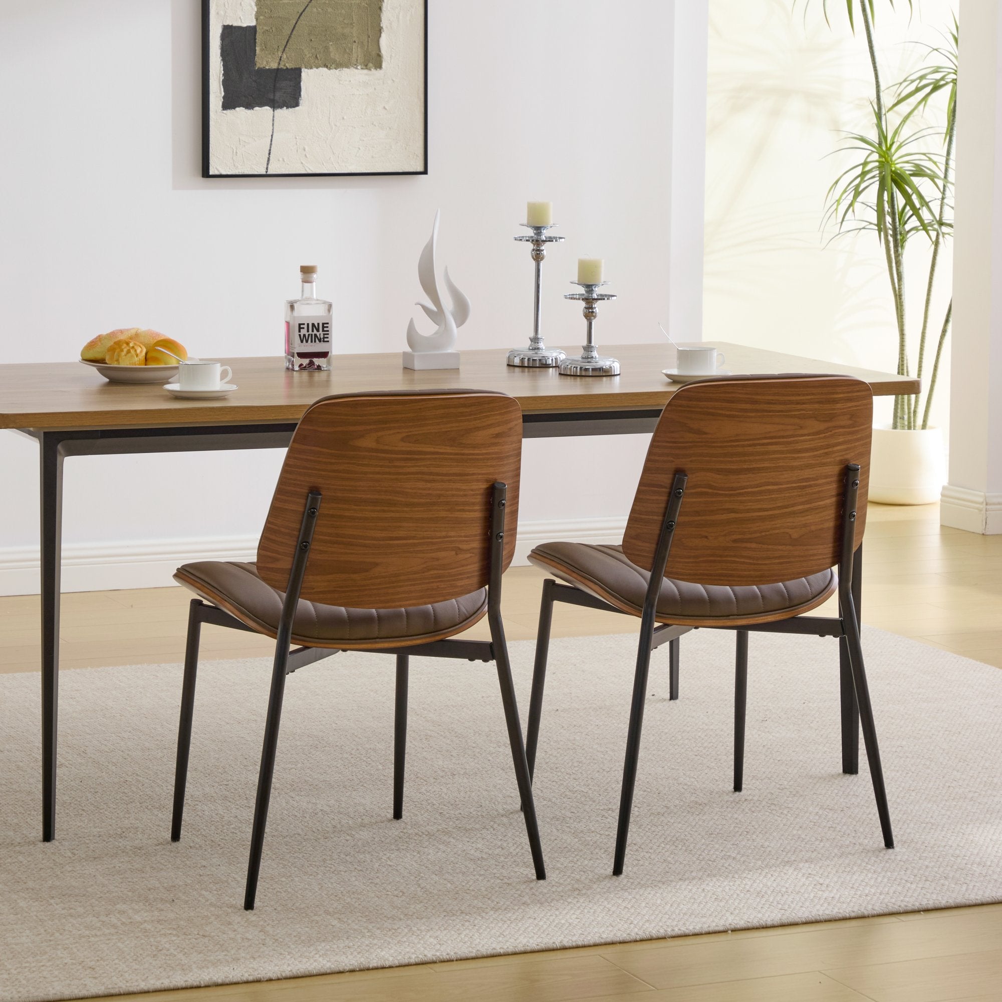 Elevate your dining space with these mid-century modern dining chairs—an inviting blend of retro style and contemporary comfort. Thoughtfully designed for everyday use, each chair pairs a warm walnut bentwood back with a cushioned faux leather seat and sturdy metal legs, delivering durability, easy maintenance, and an ergonomic seating experience ideal for kitchen or dining rooms.