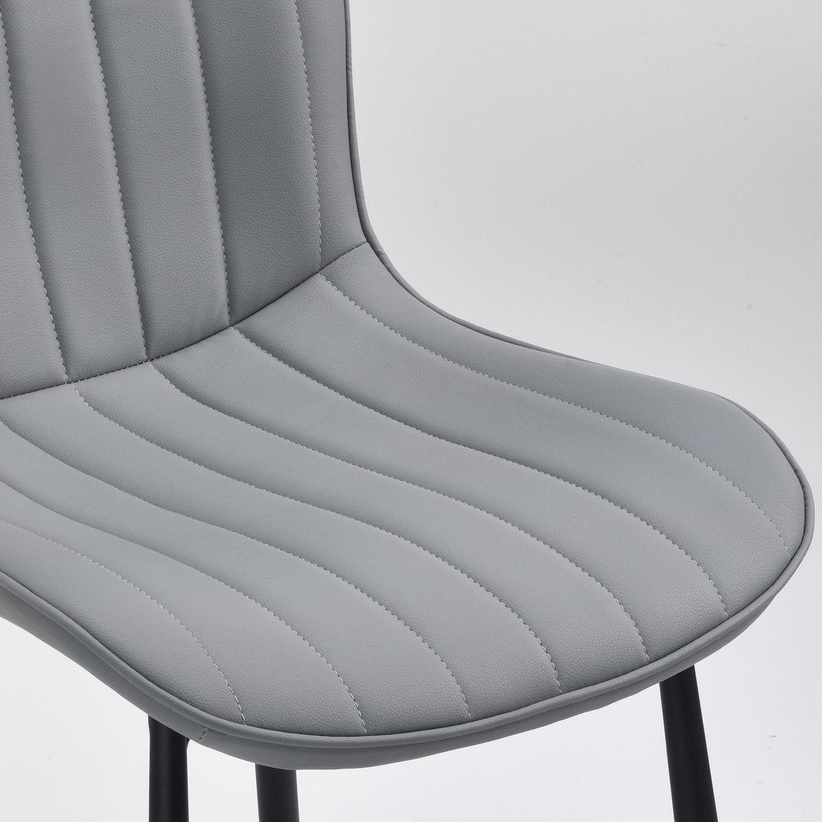 Elevate your dining space with this stylish set of 2 mid-century modern dining chairs. Upholstered in durable grey faux leather with a sculpted spindle back and slender metal legs, these chairs combine comfort, easy maintenance, and contemporary flair—perfect for kitchens, dining rooms, breakfast nooks, or as extra seating in living areas.