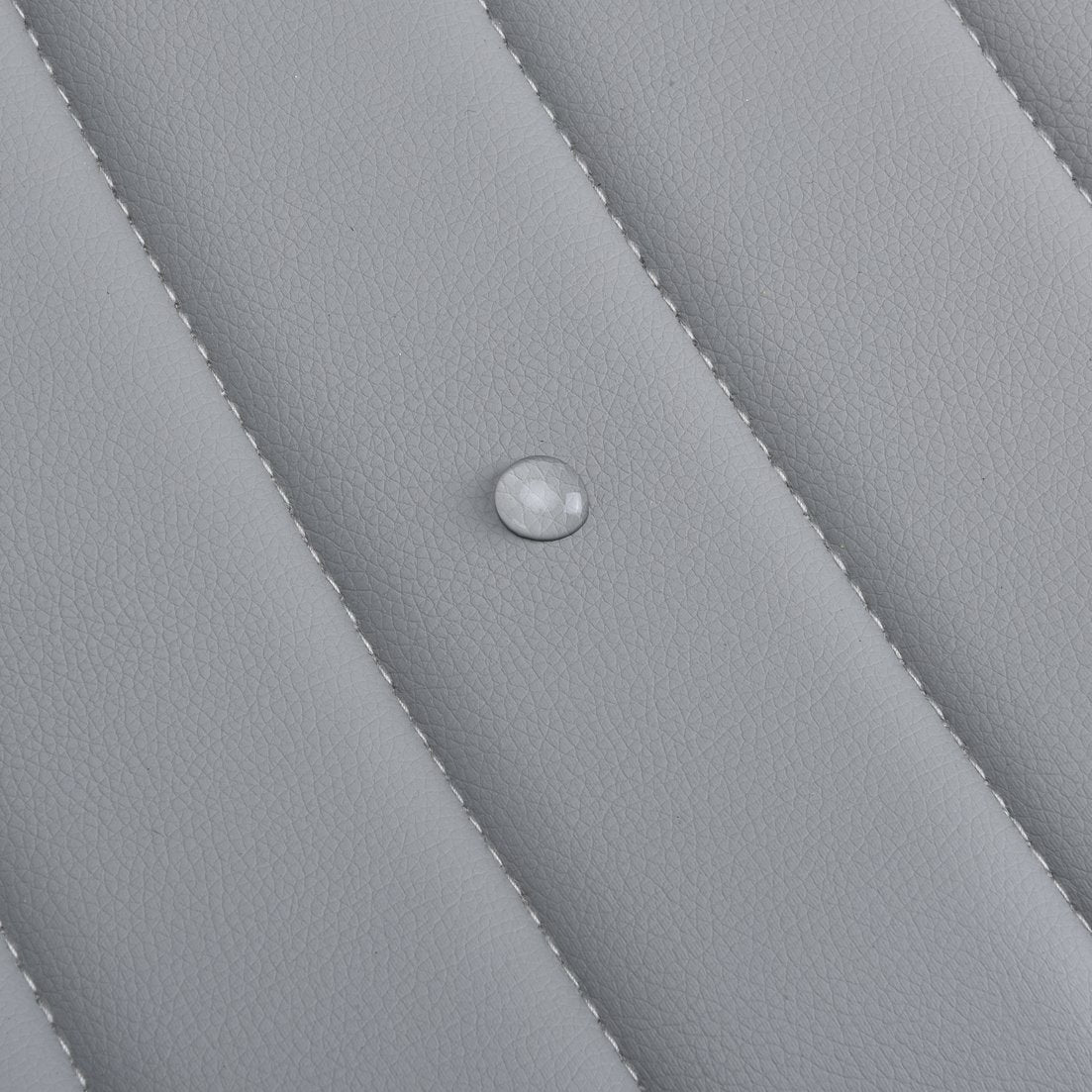 - Upholstery: High-quality grey faux leather that’s easy to clean and resists spills and stains