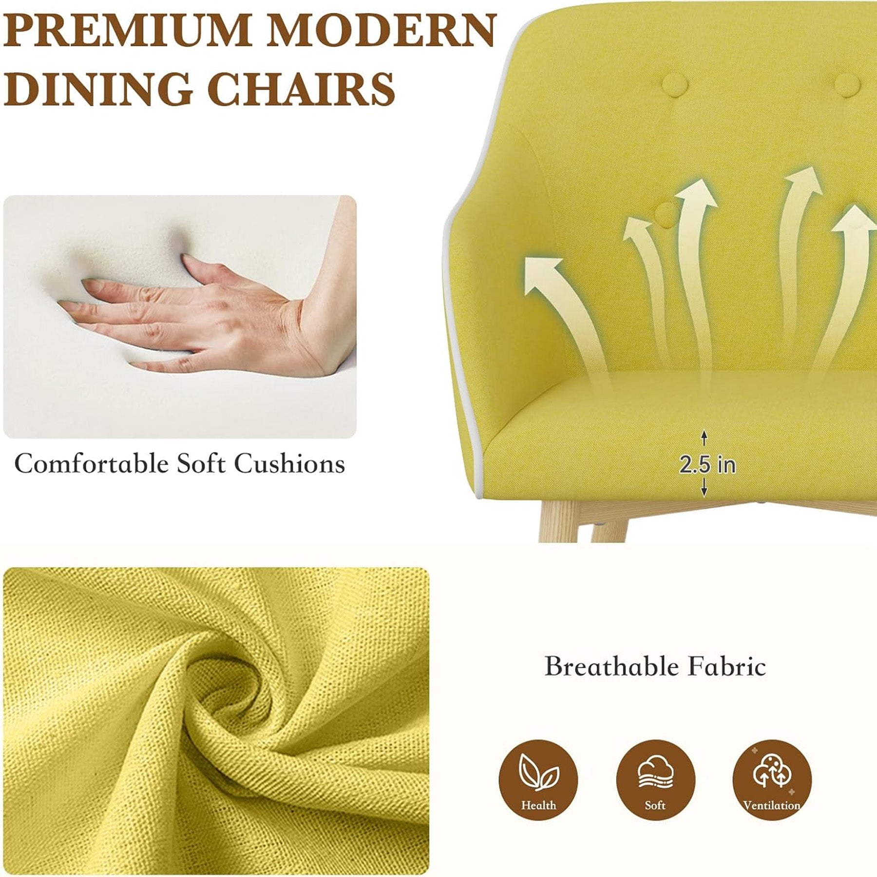 - Comfortable and Supportive Seating- This dining chair is designed with your comfort in mind. The thick foam cushion of dining chairs provides excellent support and a plush seating experience, making it perfect for long, leisurely meals in dining room. The fabric upholstery is soft to the touch and adds an extra layer of comfort.