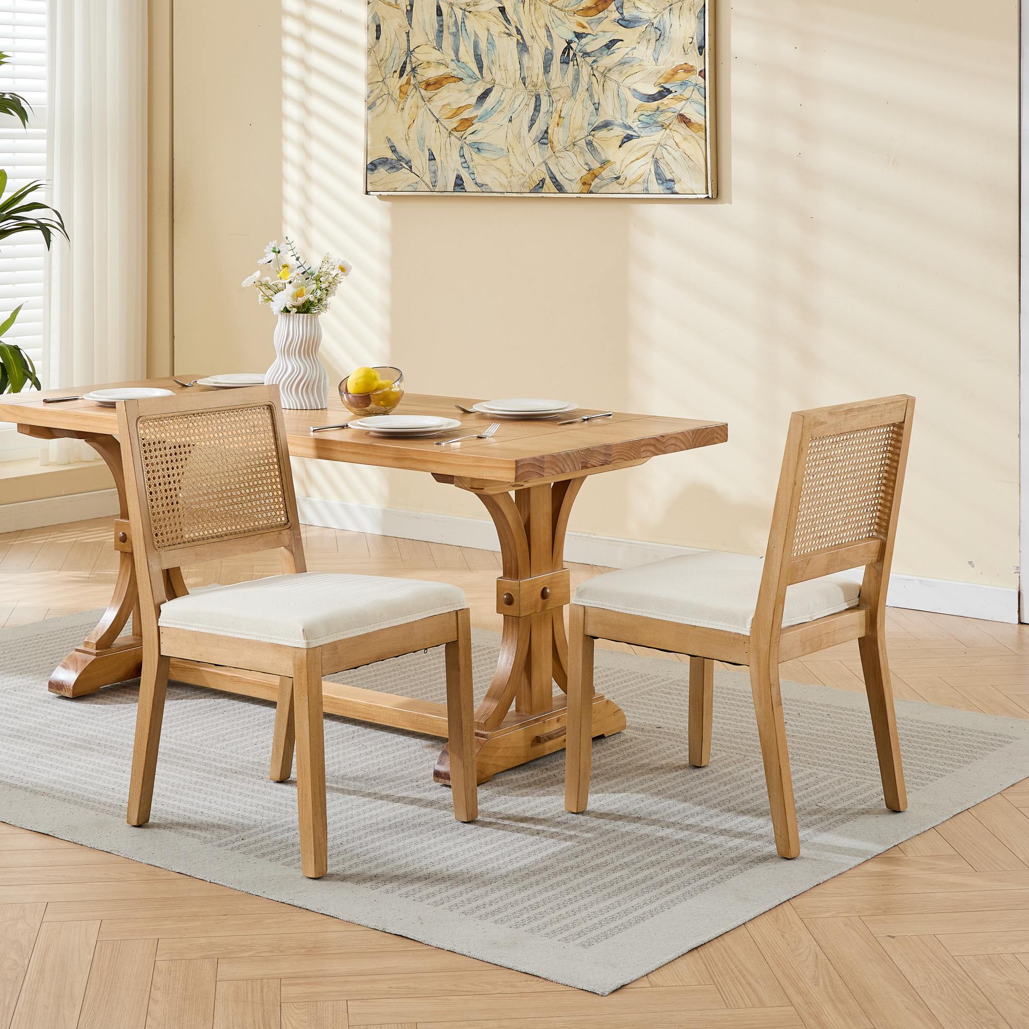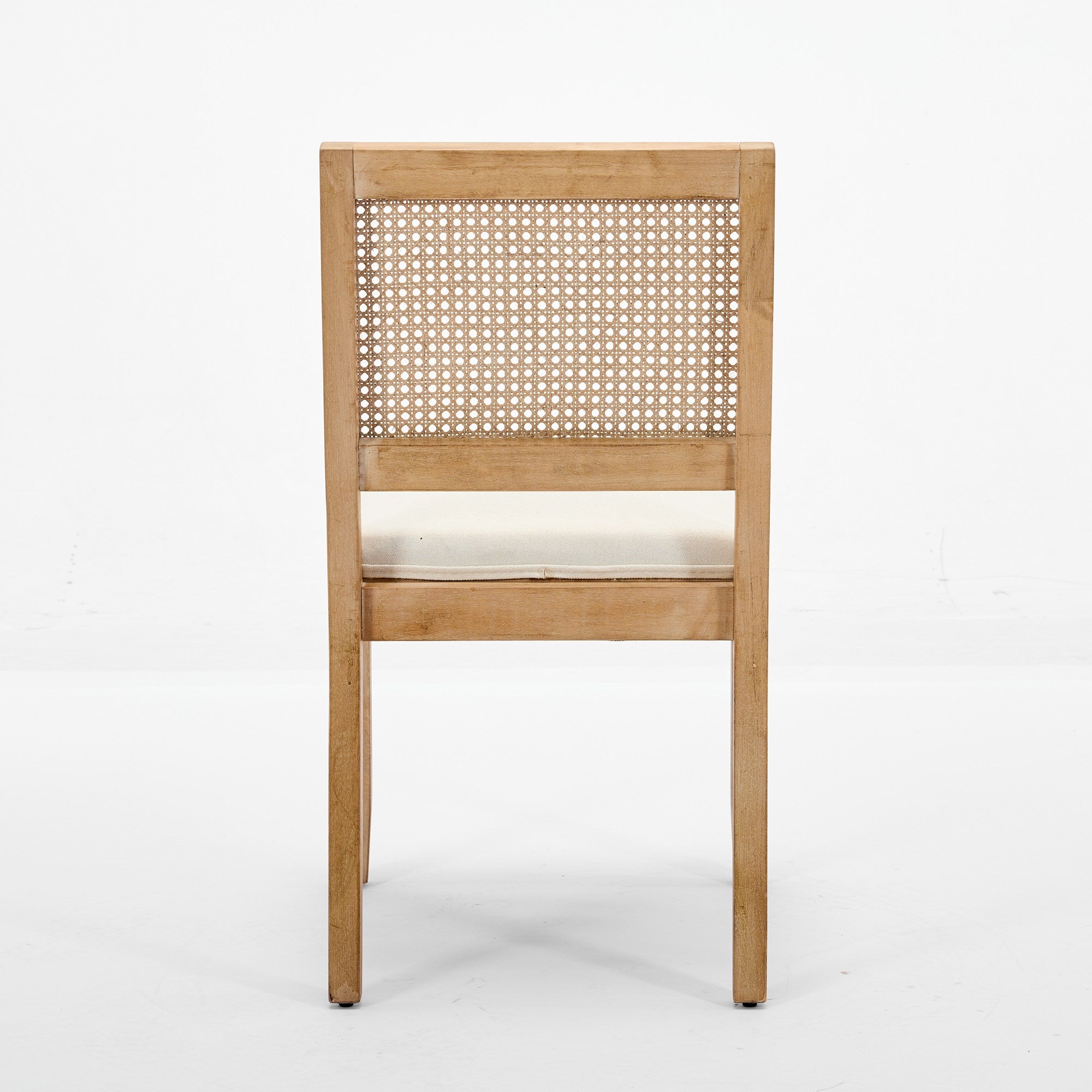 Bring farmhouse charm and mid-century modern comfort to your dining space with this set of two rattan dining chairs. Thoughtfully designed with a cane-backed silhouette, natural hardwood frame, and linen-upholstered seats, these chairs combine breathable materials and durable construction for everyday use in kitchens, dining rooms, home offices, or commercial settings.