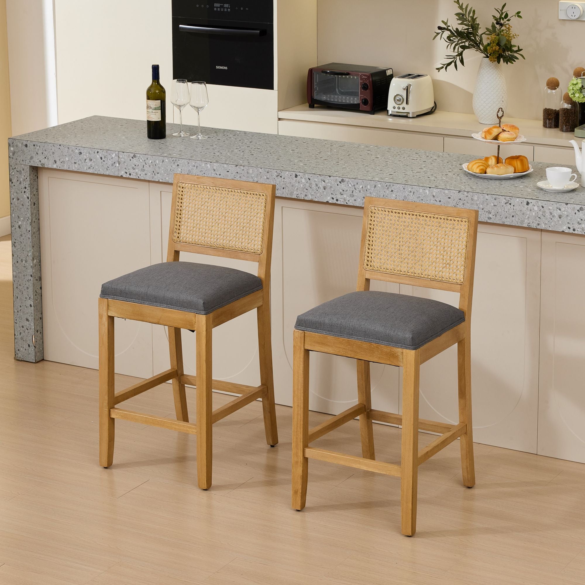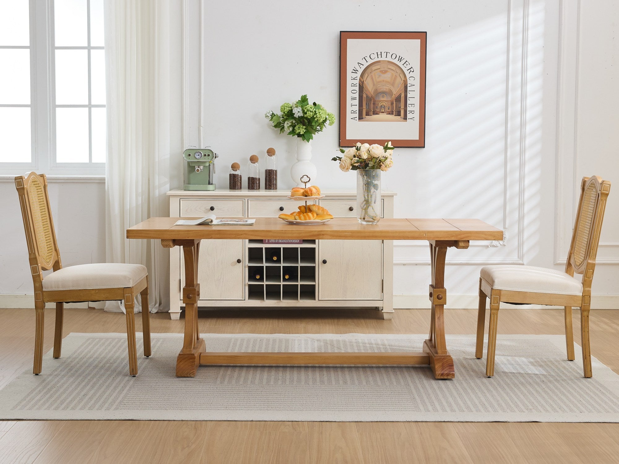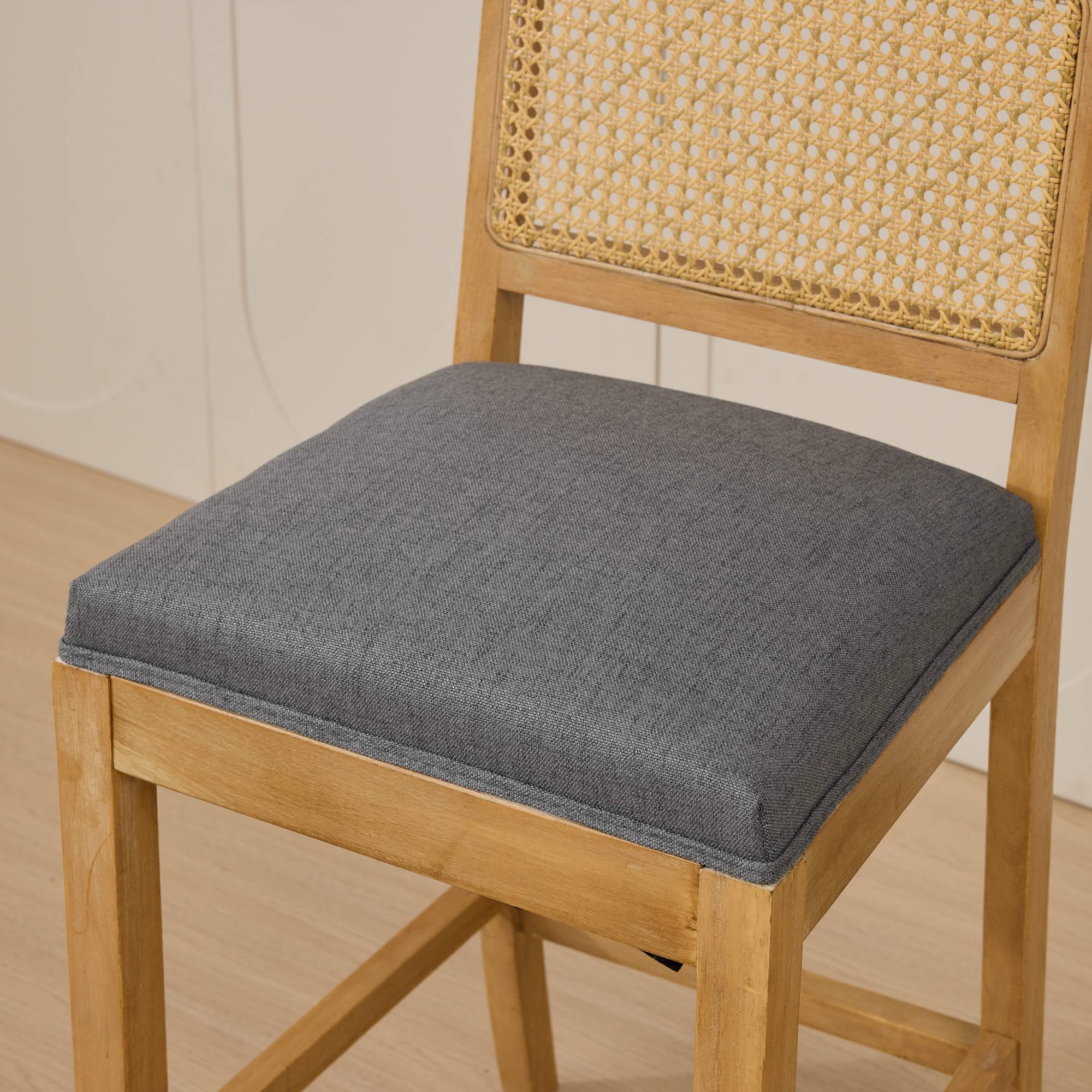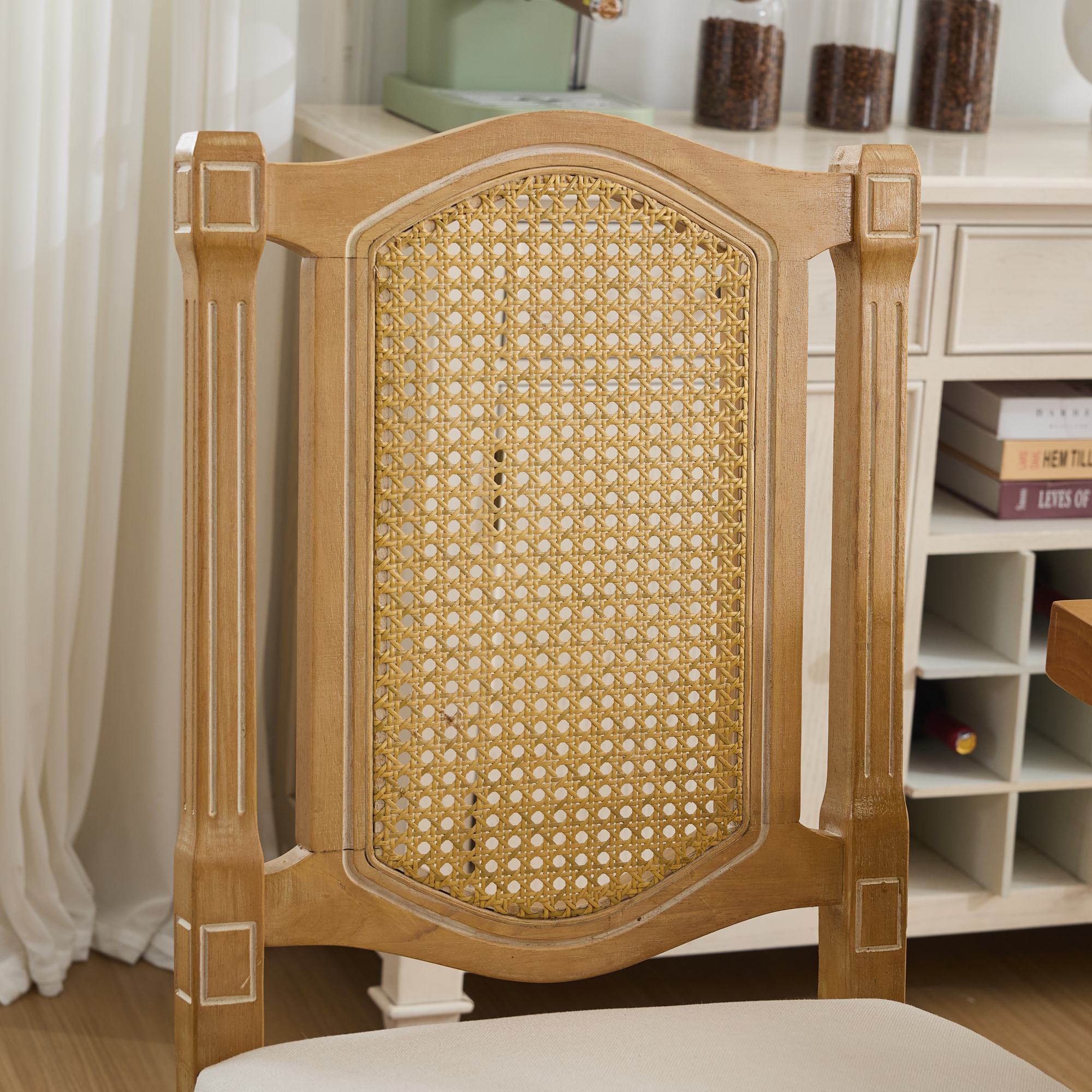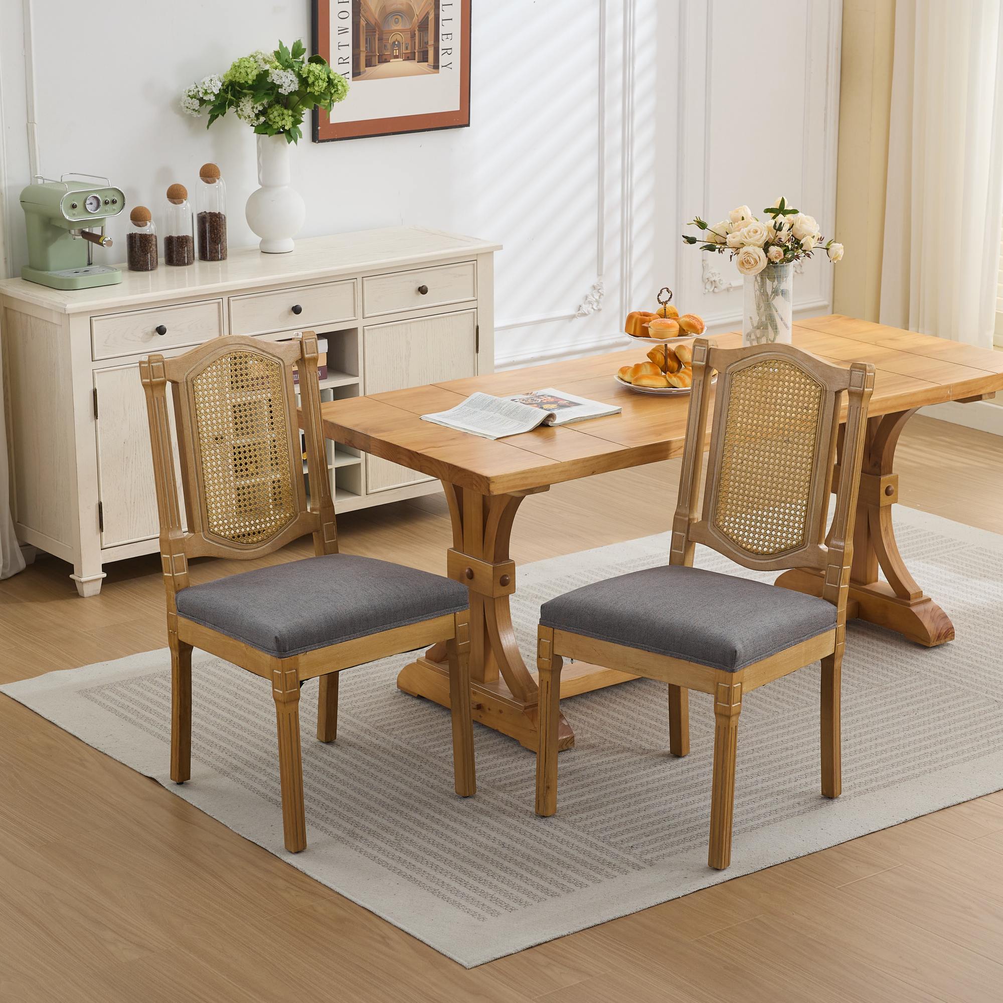 Bring timeless rustic charm and lasting comfort to your dining area or café with this solid wood dining chair featuring a breathable rattan-style back and a plush matte linen cushion. Expertly constructed for everyday use, it balances classic natural aesthetics with ergonomic support—an ideal choice for spaces that value both form and function.