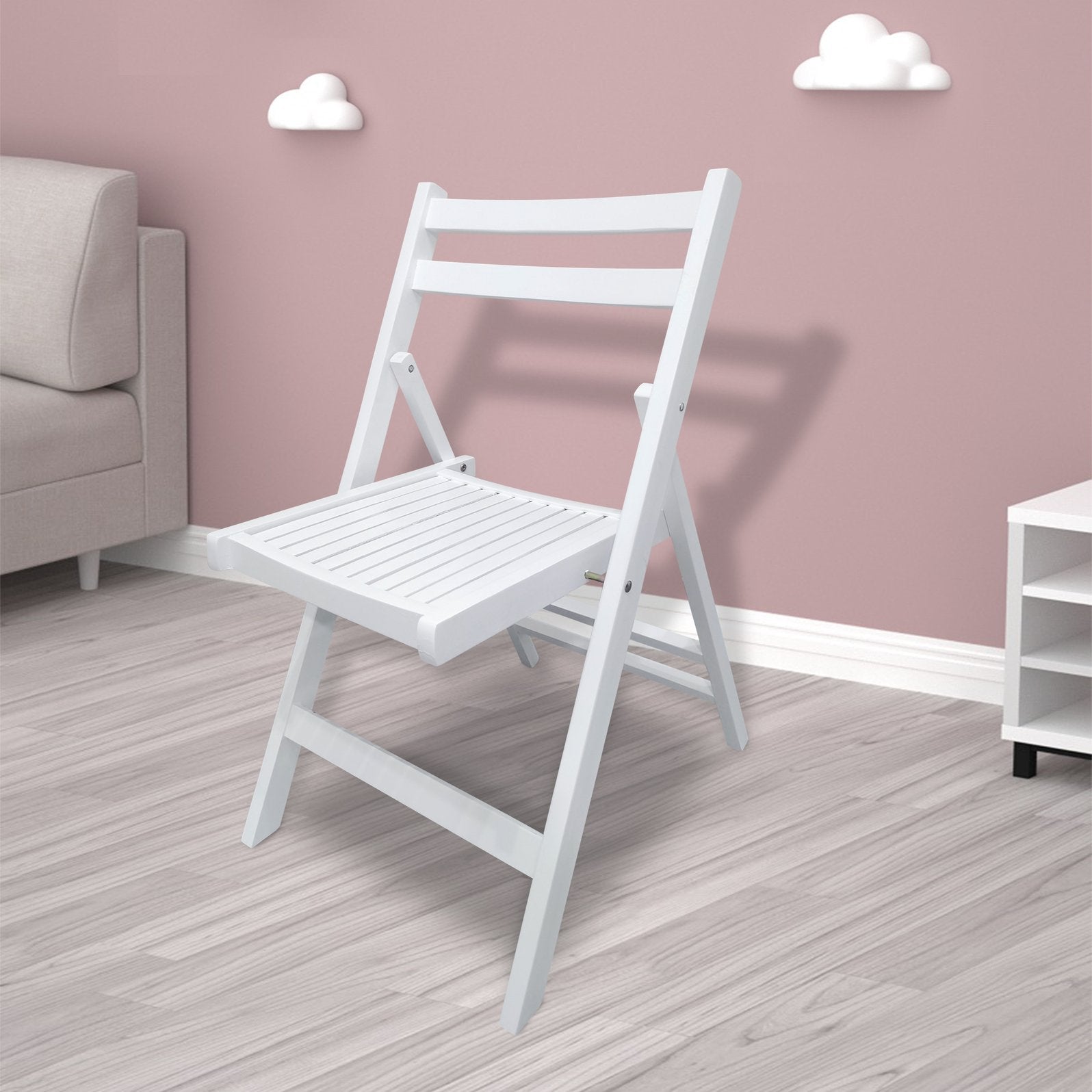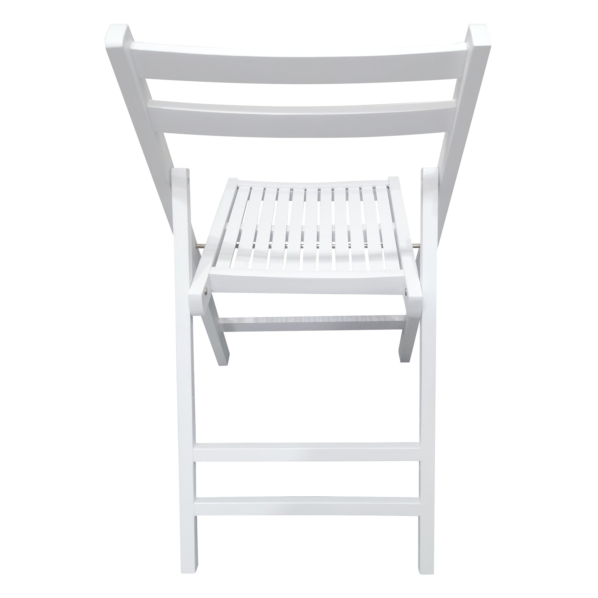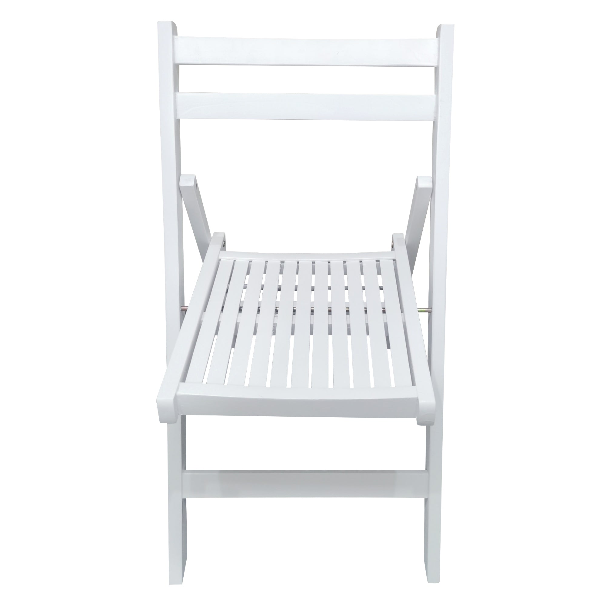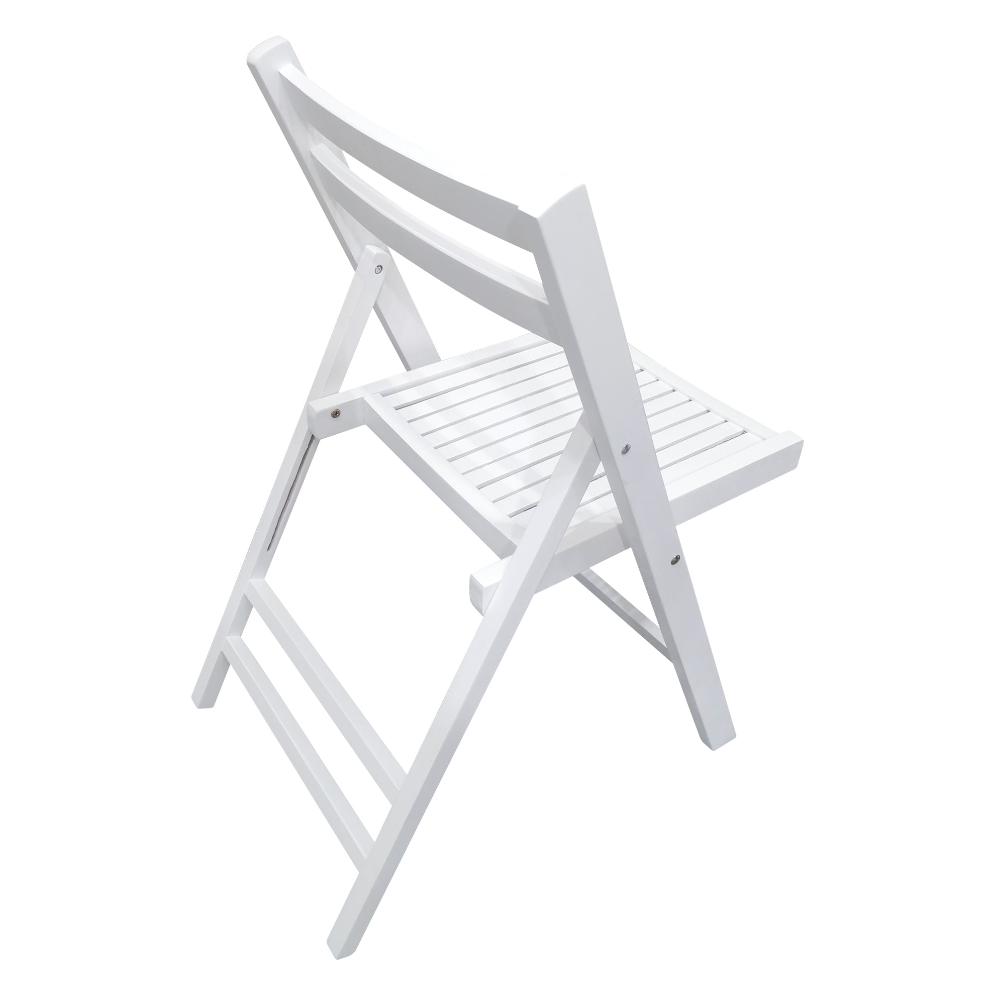 A classic, clean-lined slatted wood folding chair designed for both everyday use and special events. Finished in crisp white, this solid wood chair blends a timeless aesthetic with practical functionality—lightweight for transport, easy to store, and sturdy enough for dining, patios, ceremonies, and extra seating whenever you need it.