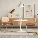 - Cantilevered Metal Frame: Flexible cantilever design offers a subtle recline and responsive seating experience that enhances comfort during long meals or conversations.