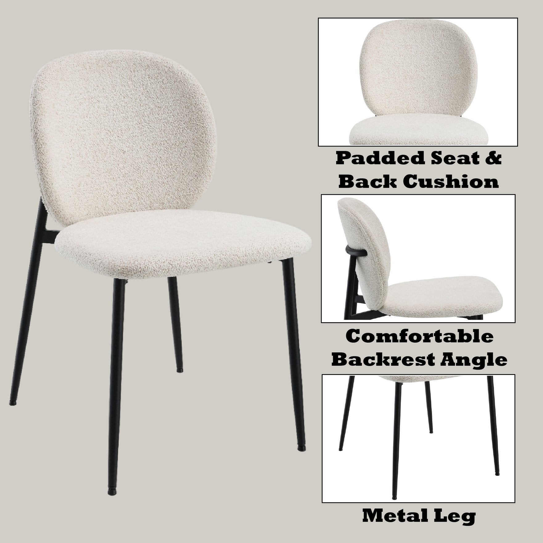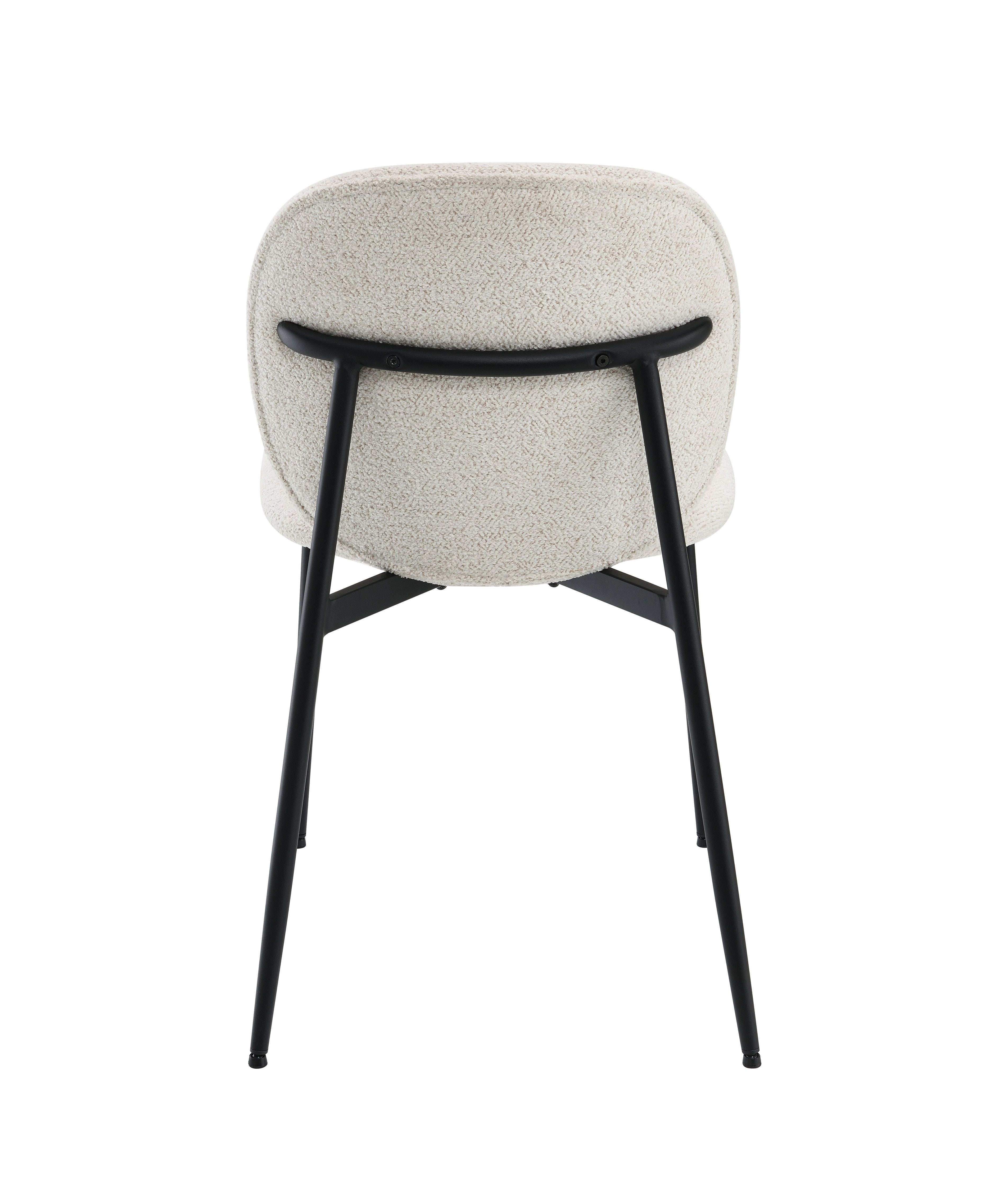 Refresh your dining or workspace with the Klaus side chair — a modern, minimalist piece that pairs soft boucle upholstery with a sleek black finish for sculptural contrast and everyday comfort. Designed as a set of two, these chairs combine supportive padding, durable construction, and a compact footprint ideal for apartments, dining rooms, or home offices.