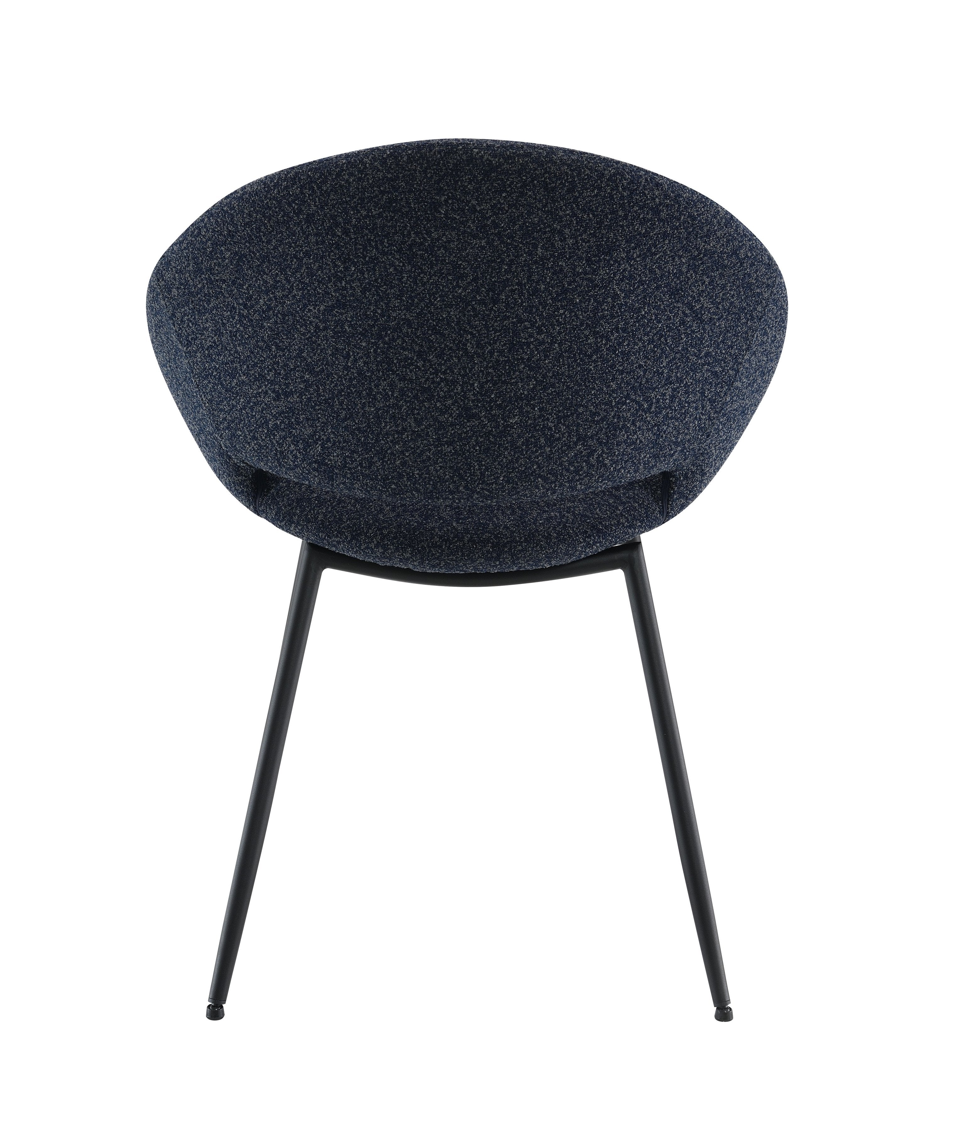 Add contemporary comfort and sculpted style to your dining or workspace with this pair of Klaus side chairs. Upholstered in soft black boucle with a supportive padded back and seat, each chair pairs a refined textile look with a durable black metal frame and synthetic wood base for everyday use. Clean lines and a compact profile make these chairs ideal for small dining areas, home offices, or as accent seating.