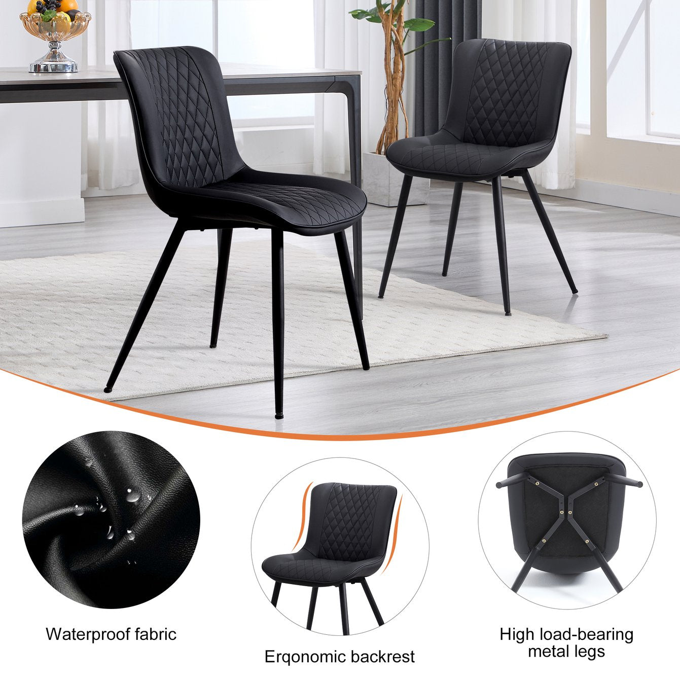 - This dining chair Crafted from high-quality faux leather, it is waterproof and breathable, ensuring a pleasant seating experience. The armless design allows for easy movement and convenient storage under tables, making it a space-saving solution for any dining area.The kitchen chair features a chic diamond pattern that adds a touch of elegance while maintaining a minimalist aesthetic. Its soft and comfortable seat, paired with an ergonomic padded backrest, provides excellent support for long mea