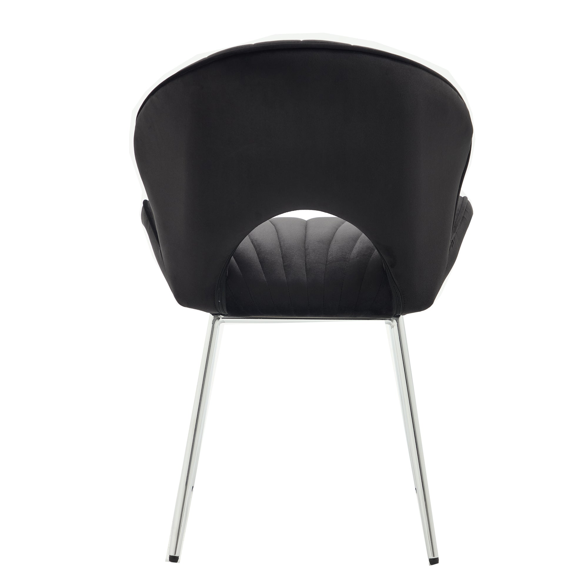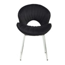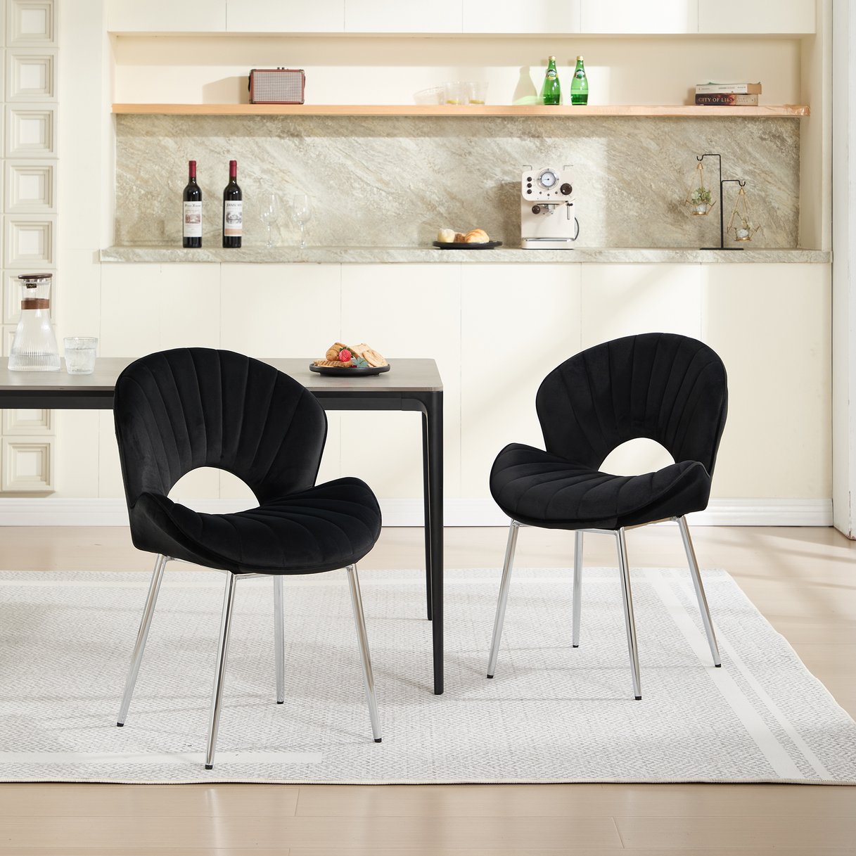 Elevate your dining or living space with these modern black velvet chairs that blend contemporary style with everyday comfort. The hollow back and enlarged seat deliver visual interest and a relaxed sitting experience, while silver electroplated legs add a refined metallic contrast. Built for durability and convenience, this set of 2 chairs is suitable for homes, restaurants, or office lounge areas.