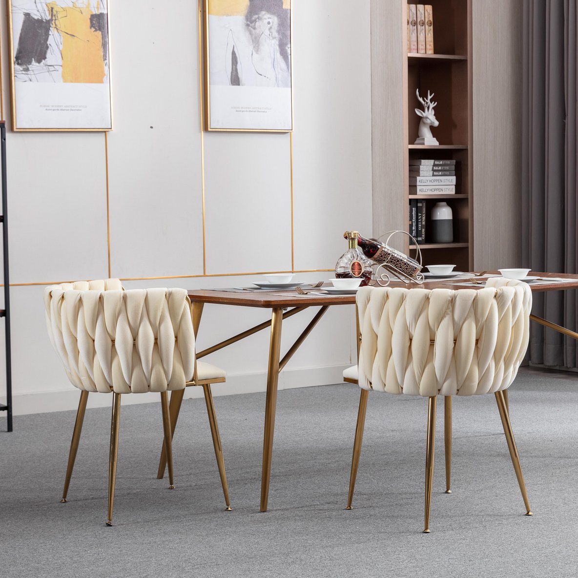 Elevate your dining space with these elegant ivory velvet dining chairs that blend modern glamour with everyday comfort. The plush upholstery and gold metal frame create a refined look, while thoughtful construction ensures durability and support—perfect for formal dinners or casual meals.