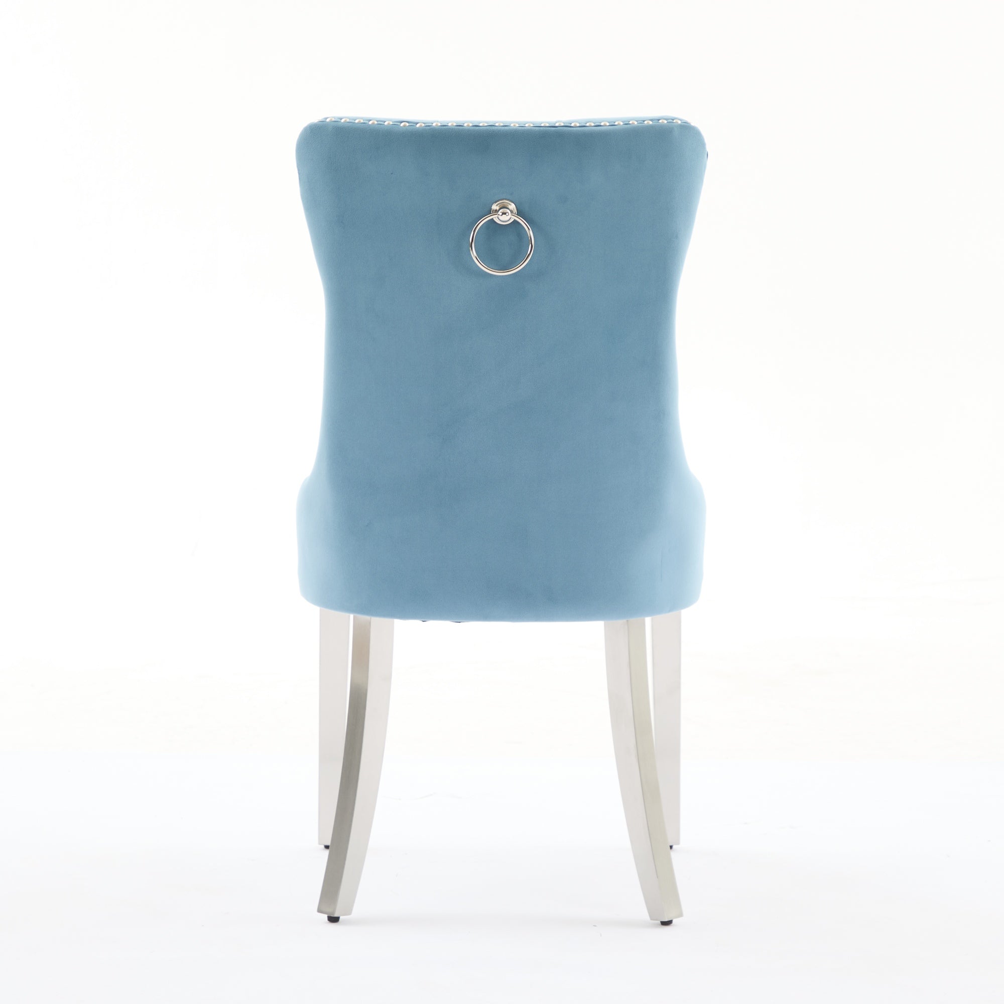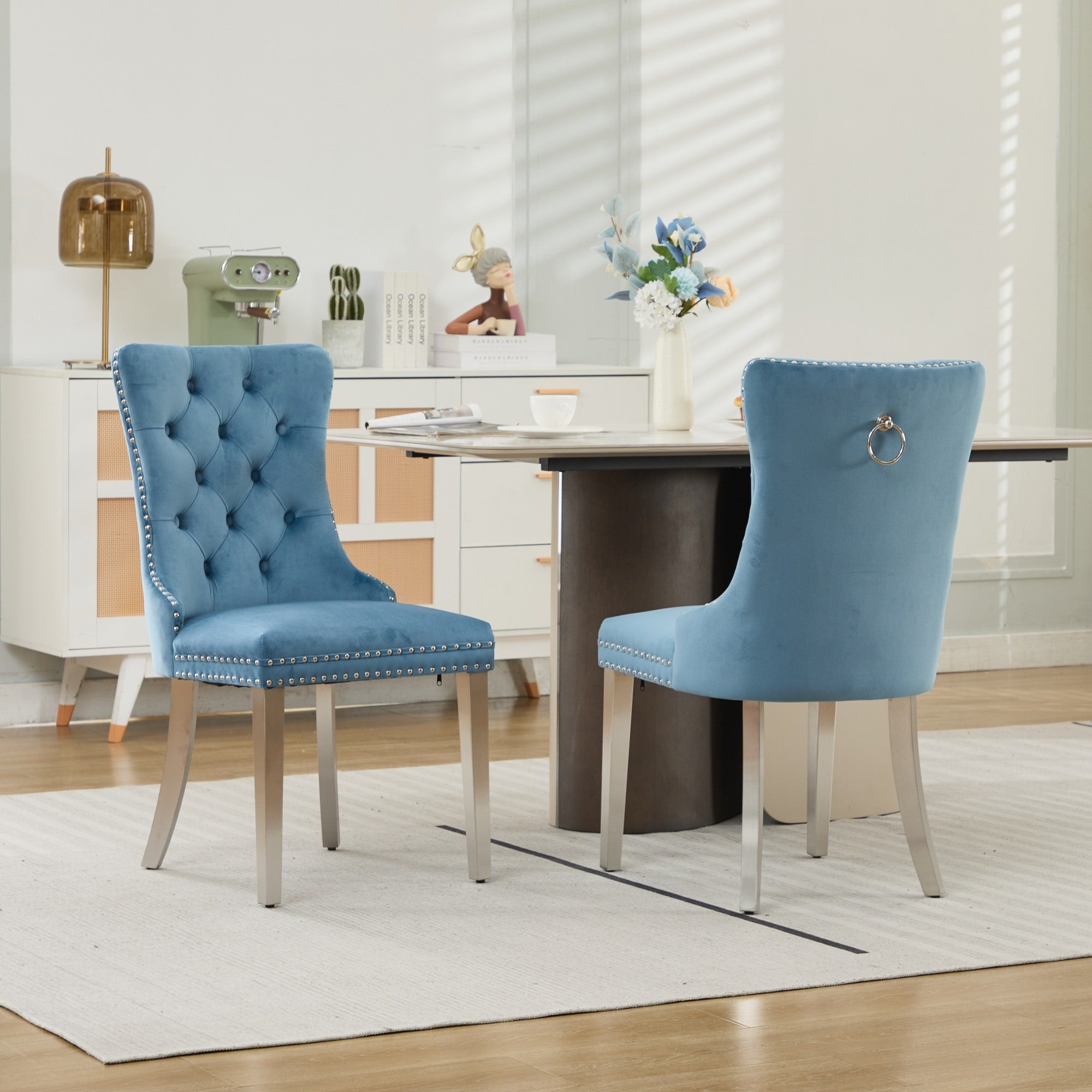 Elevate your dining space with these luxurious, modern velvet upholstered chairs from the Nikki Collection. Designed for both style and comfort, each chair features deep tufting, elegant nailhead trim, and chic chrome-plated stainless steel legs for a high-end look that complements contemporary interiors. Ideal for dining rooms, breakfast nooks, or as accent seating, this set of 2 combines durable construction with plush cushioning for everyday use.