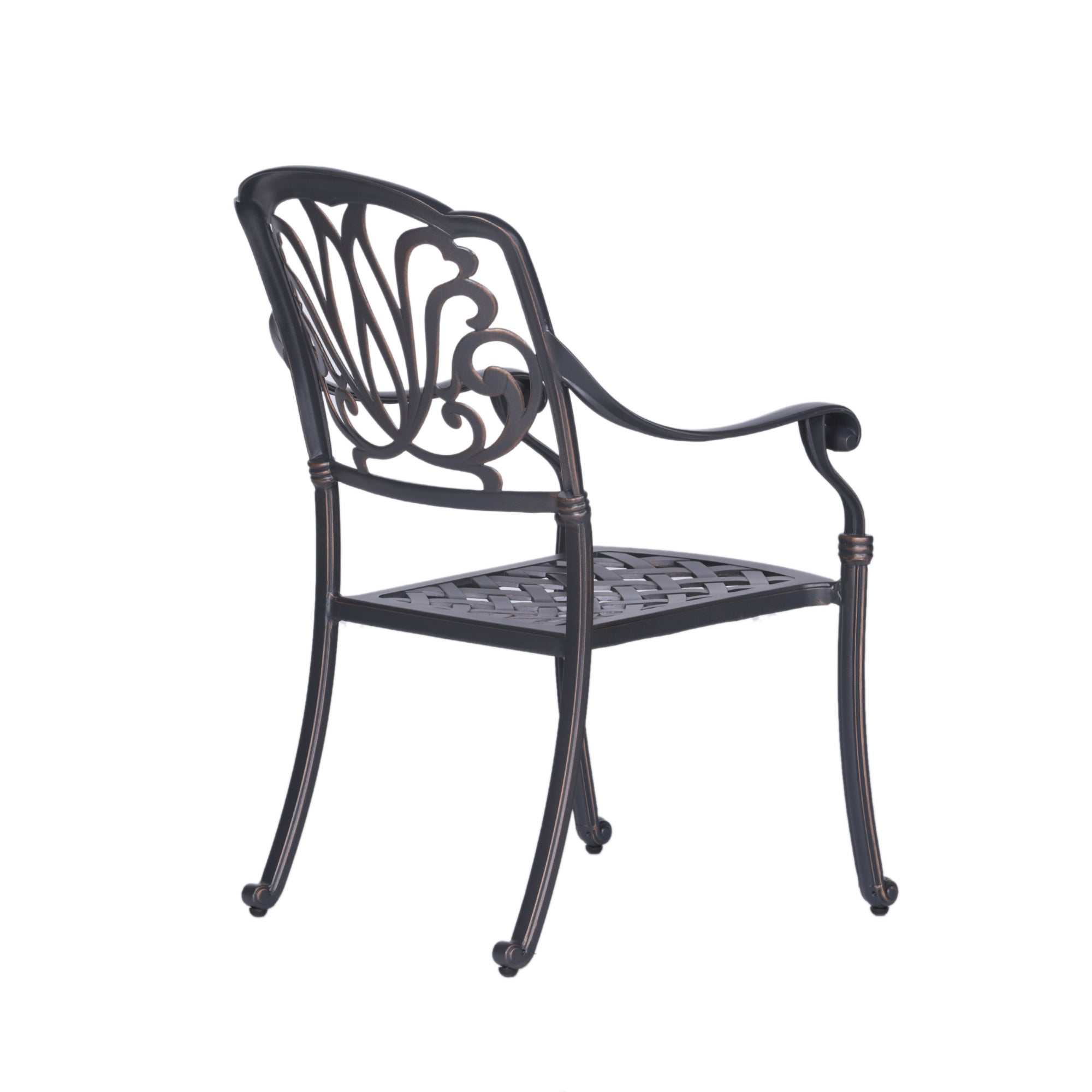 Enhance your outdoor dining area with these elegant, durable aluminum armchairs from the Geneva Collection. Designed to blend refined, intricate styling with practical all-weather performance, this set of two offers comfortable seating that resists fading and stands up to outdoor conditions while remaining easy to maintain.