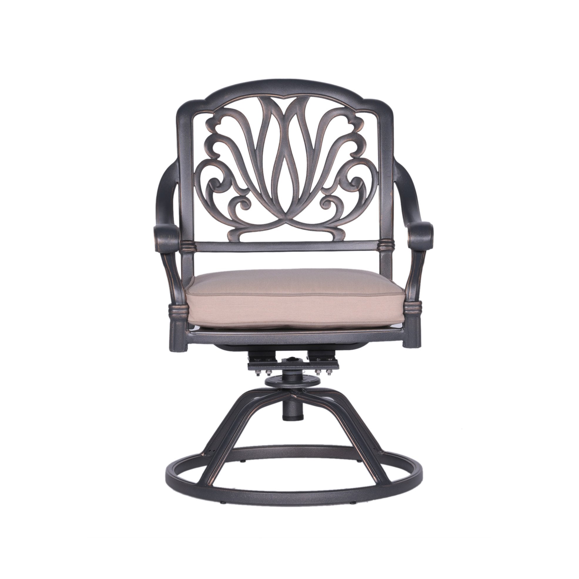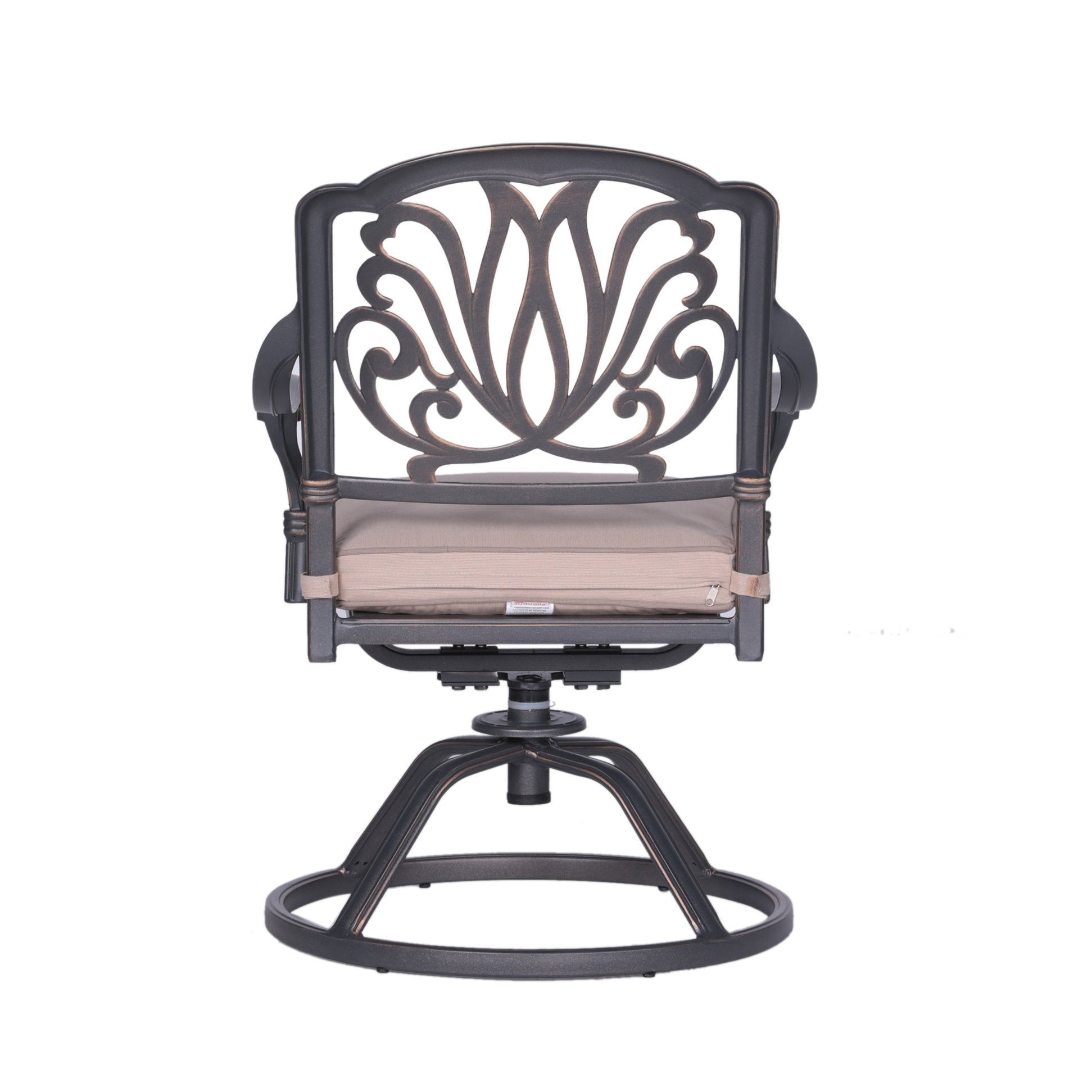 Bring comfort and style to your outdoor dining area with these elegant swivel rocker chairs. Combining refined design, smooth motion, and durable all-weather cushions, this set of two offers both visual appeal and practical comfort for everyday use or entertaining guests.