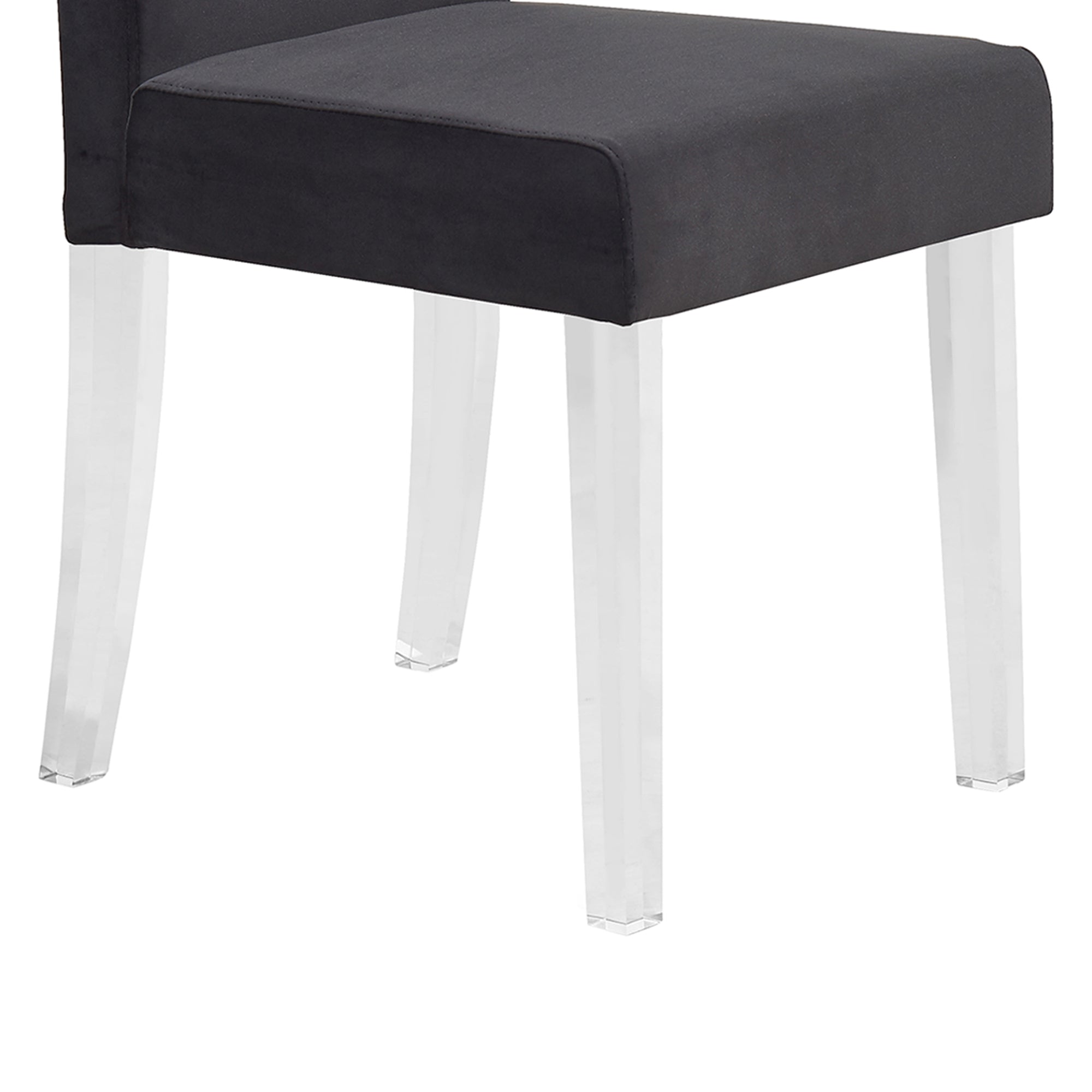 - Plush upholstered seat and back are accented by a sturdy acrylic leg