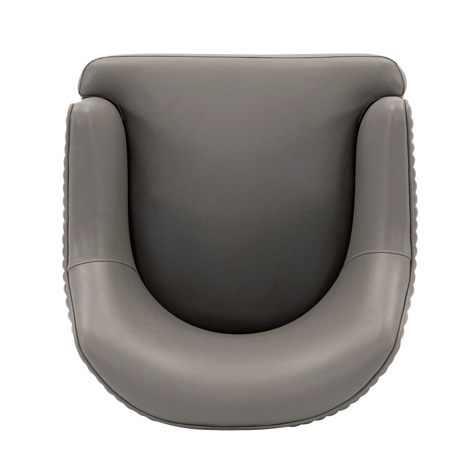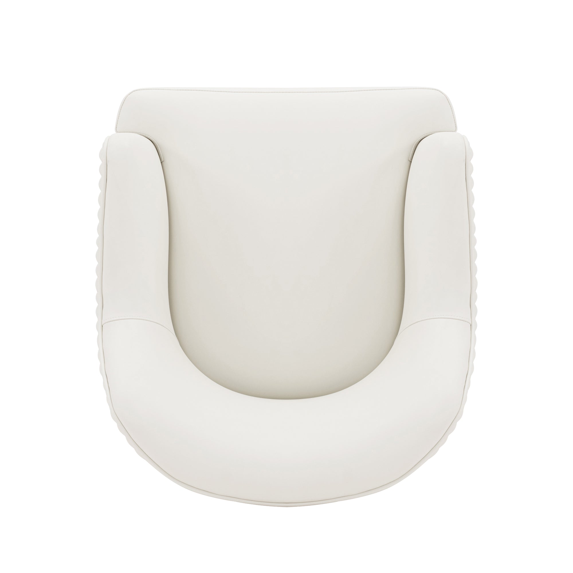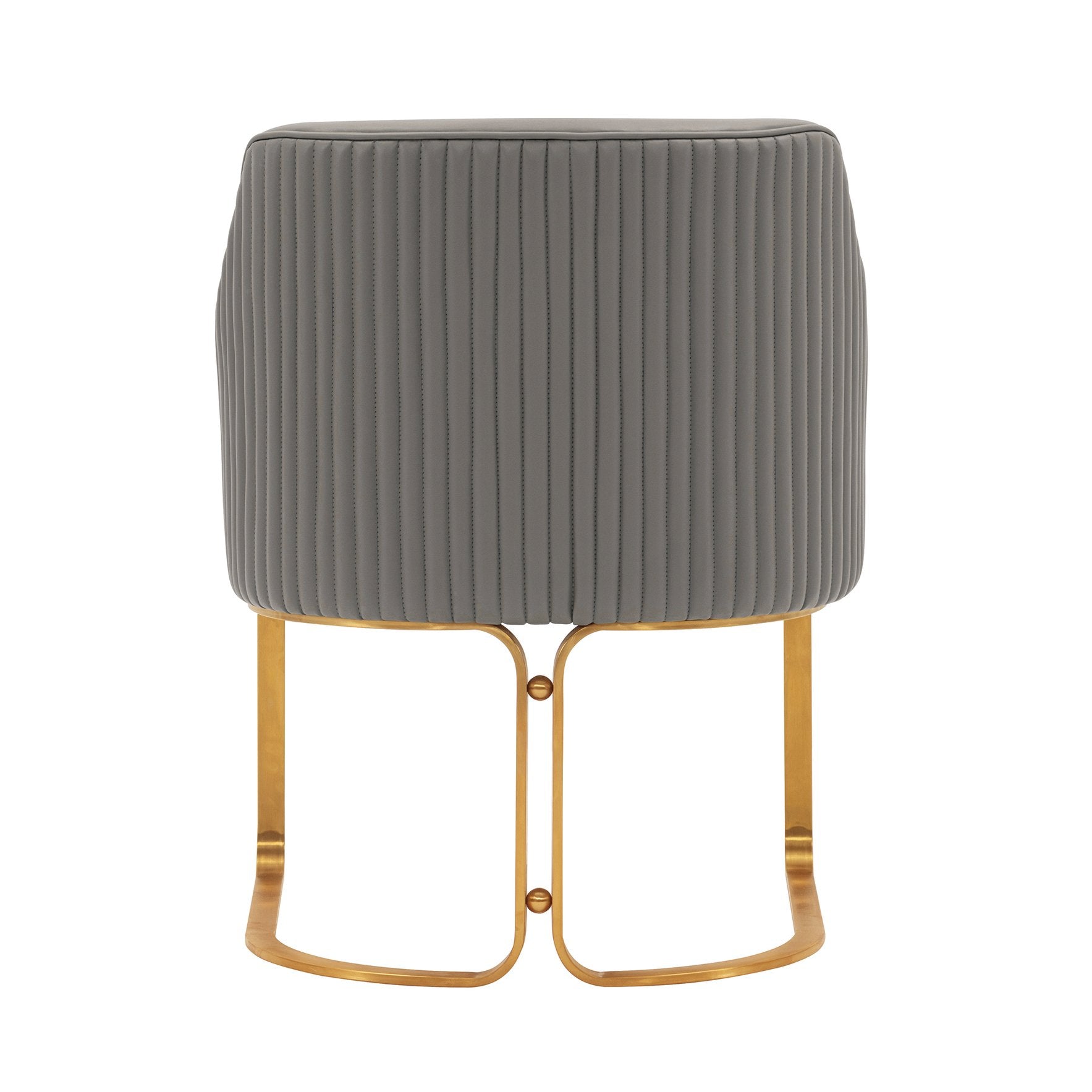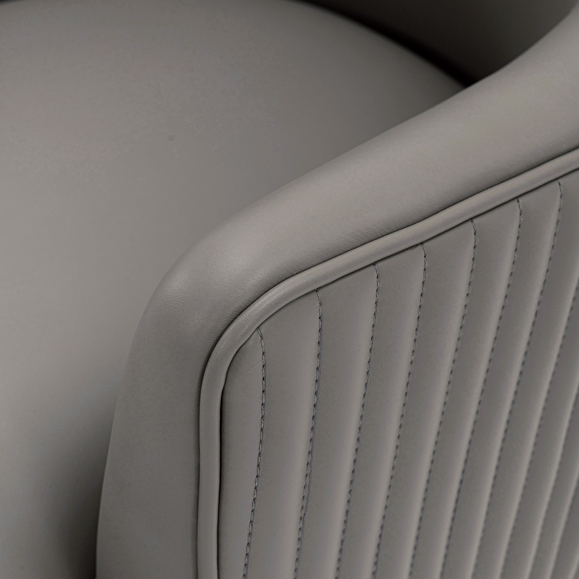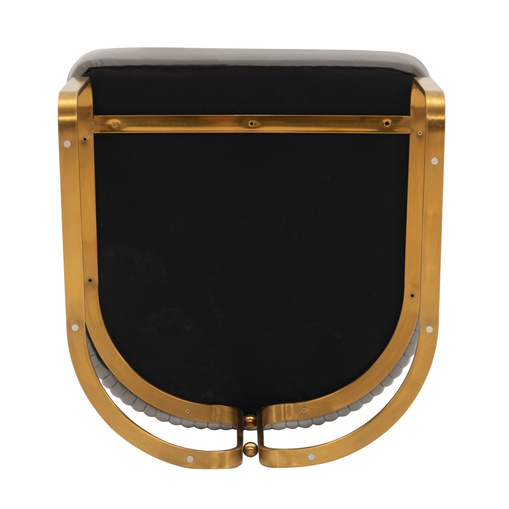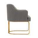 - Floating Style Chair with Beautiful Vertical Ribbed Back Stitching on Geometrical Gold Base with Unique Floating Round Details Gold Connecting Balls.
