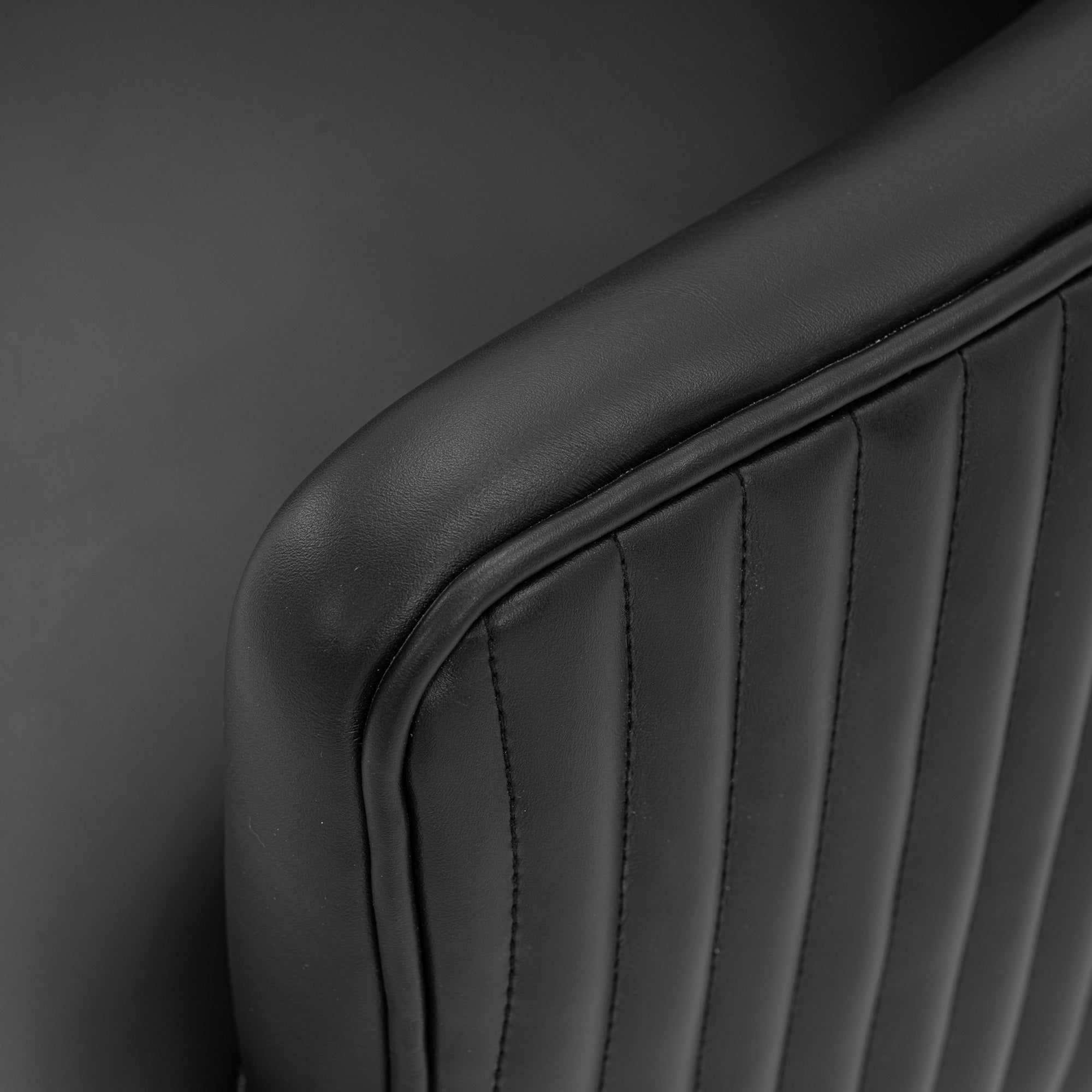 - Upholstery & Comfort: Luxurious black leatherette (vegan leather) wrapped around high-density foam padding for comfortable seating and easy care.