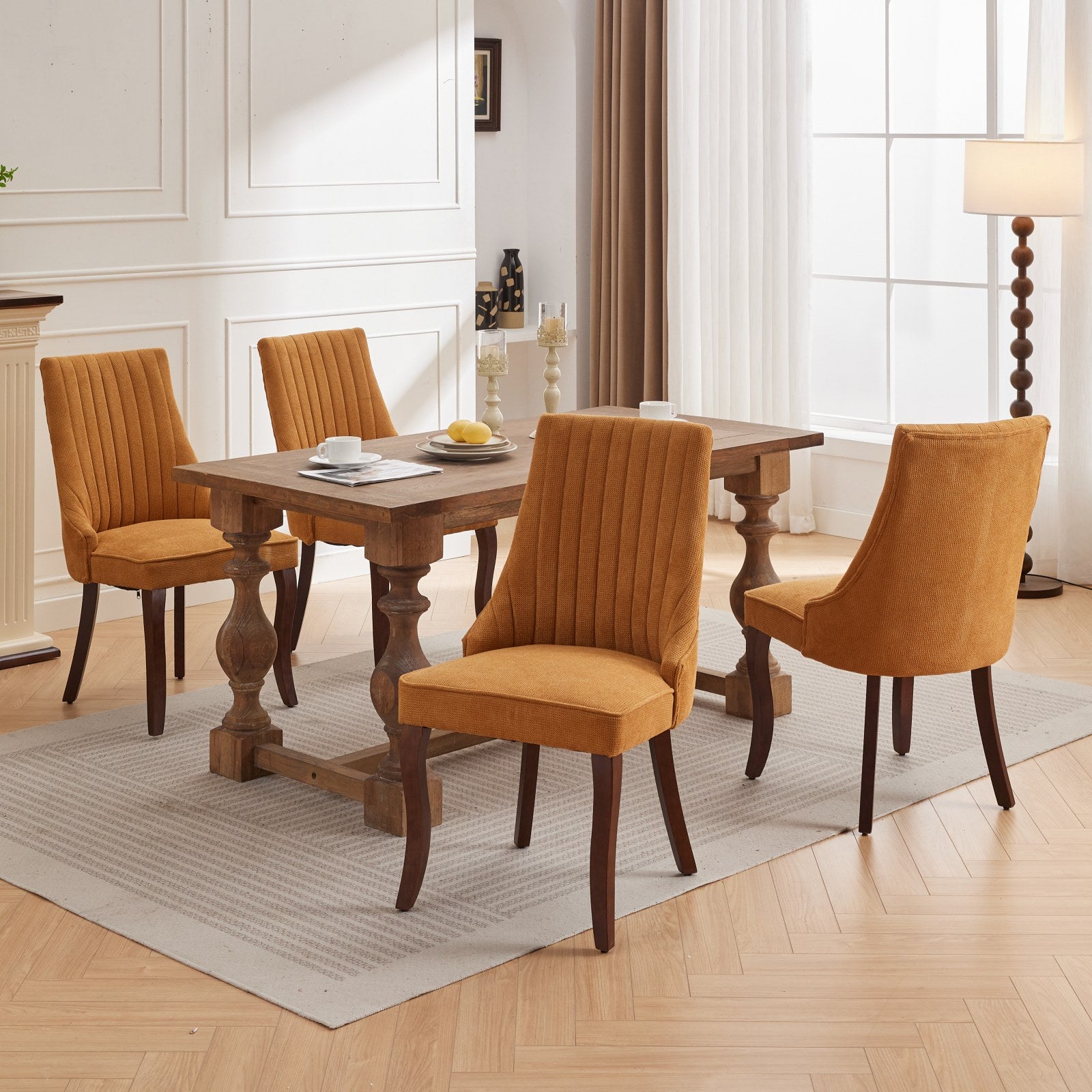 Elevate your dining space with these elegant upholstered dining chairs that blend modern channel-tufted design, plush comfort, and durable construction. Upholstered in soft rayon flocking fabric with a supportive high back and resilient seat core, this set of two chairs brings refined style and long-lasting comfort to your kitchen, dining room, or accent seating areas.