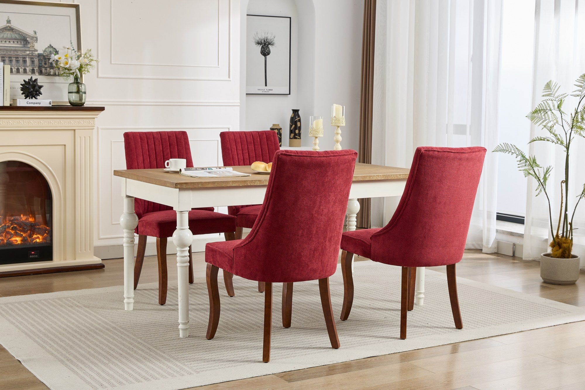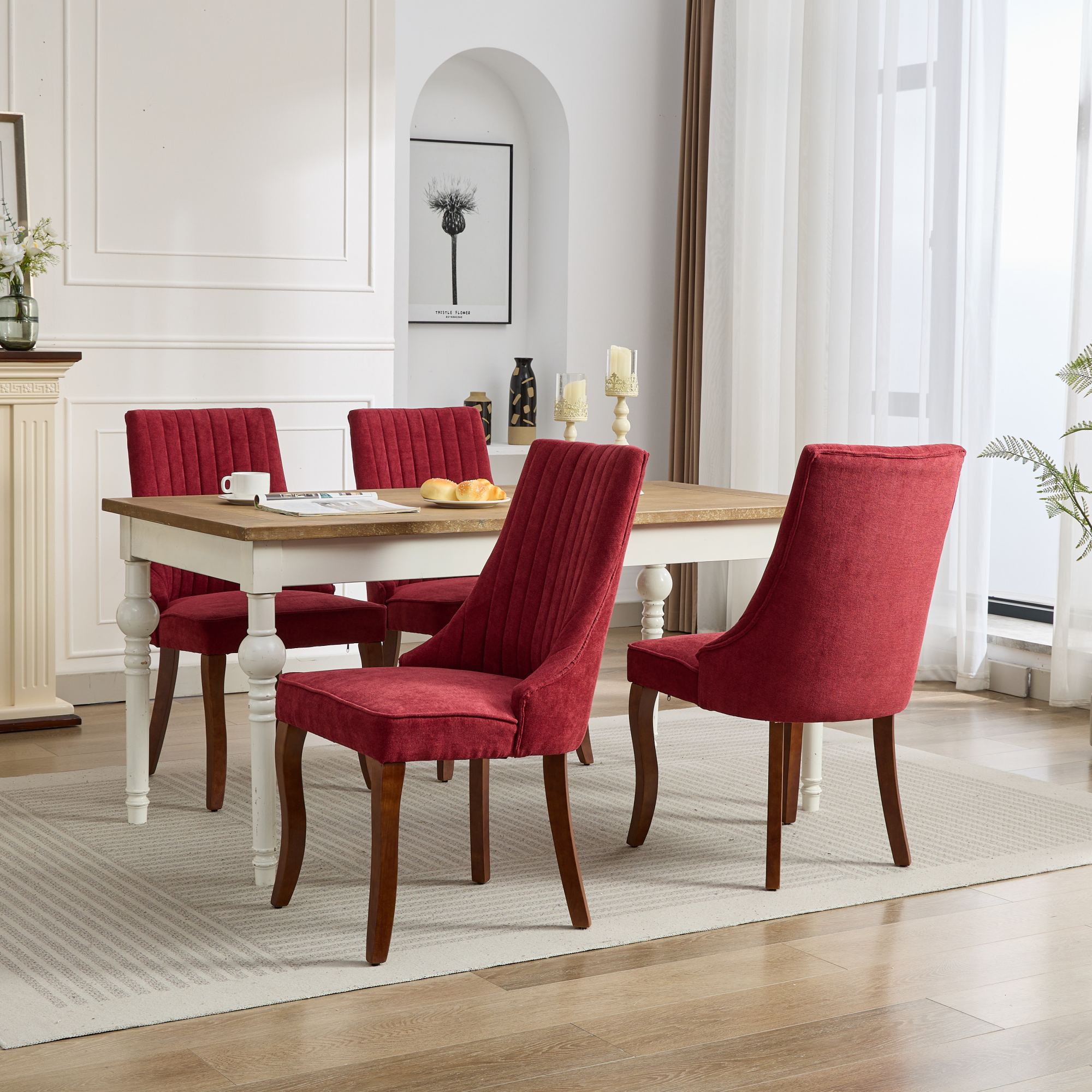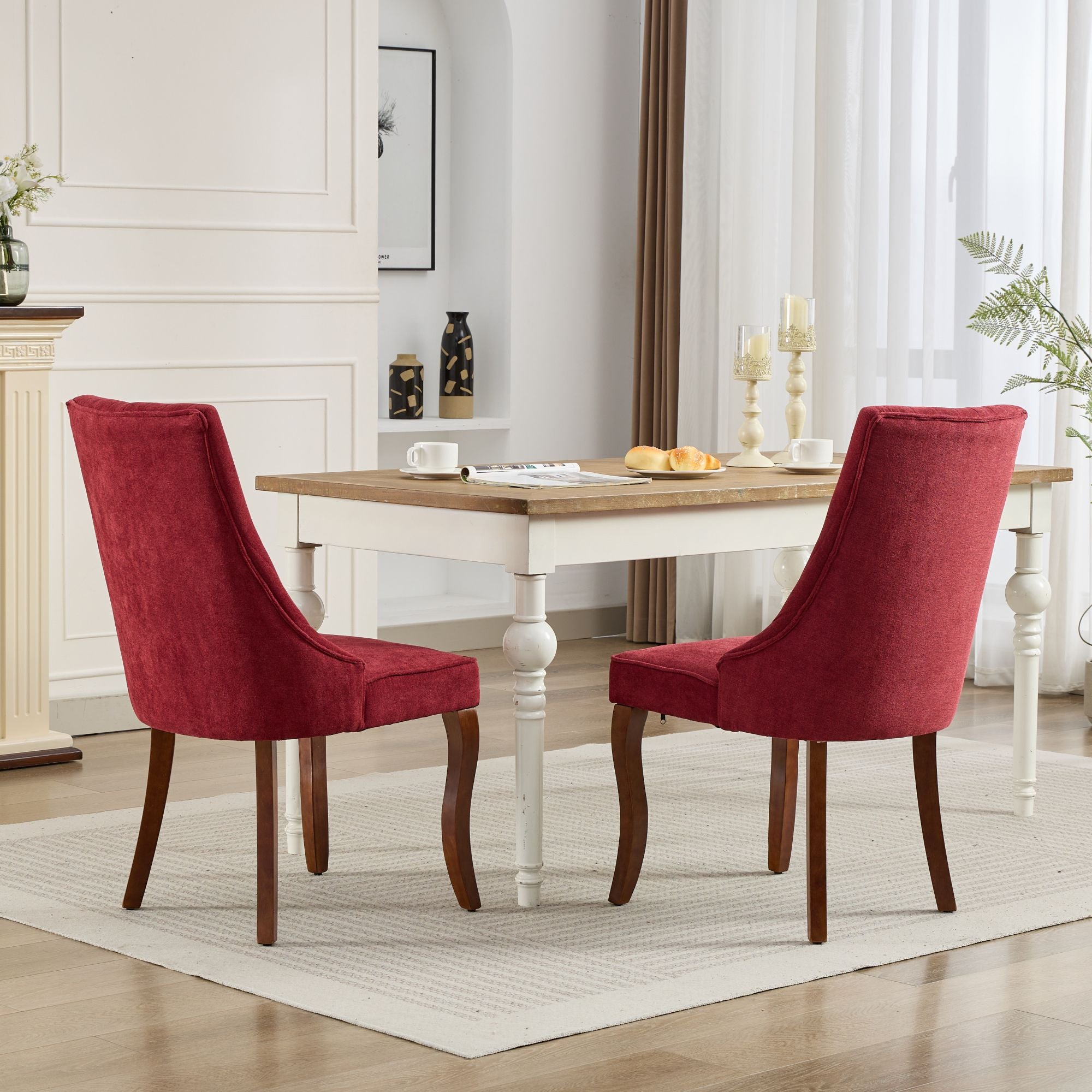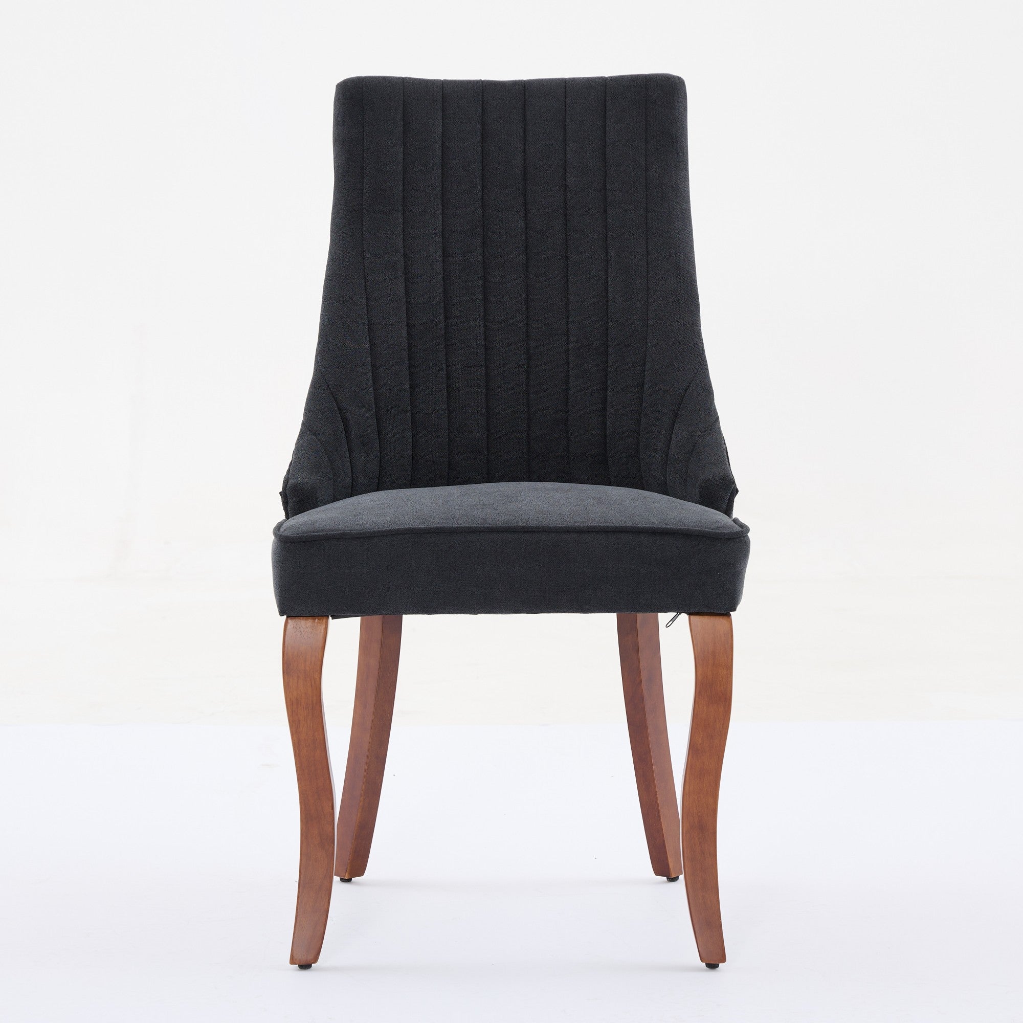 A refined set of dining chairs that blends modern channel-tufted styling with durable construction and plush comfort—ideal for elevating your dining room, kitchen, or accent seating. These upholstered chairs feature a supportive high back, luxurious rayon flocking fabric, and solid wood curved legs for a polished look that complements contemporary and transitional interiors.