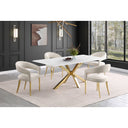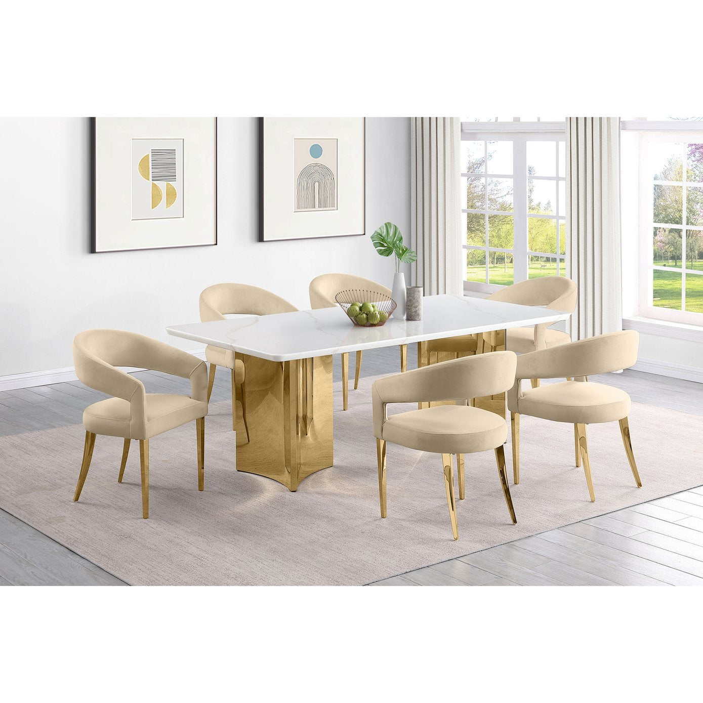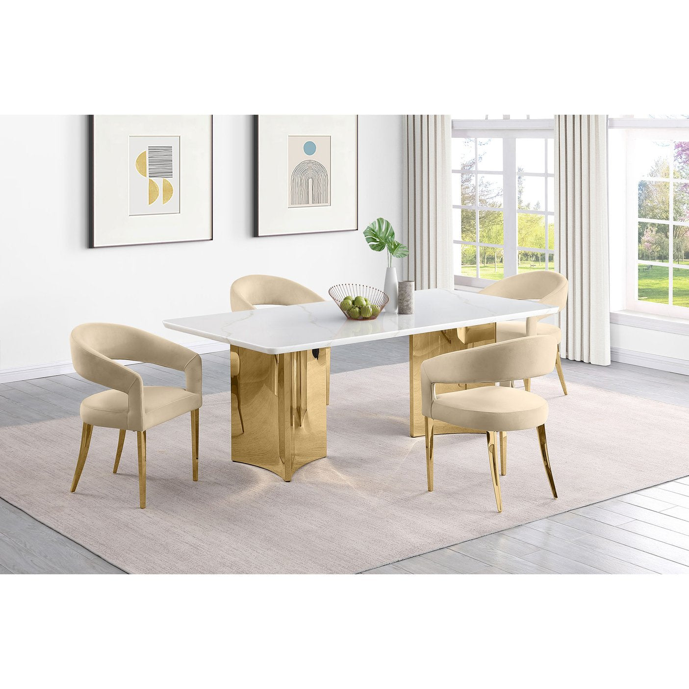 - Upholstery & Comfort: Plush beige/cream fabric with high-density foam padding for comfortable seating during long dinners