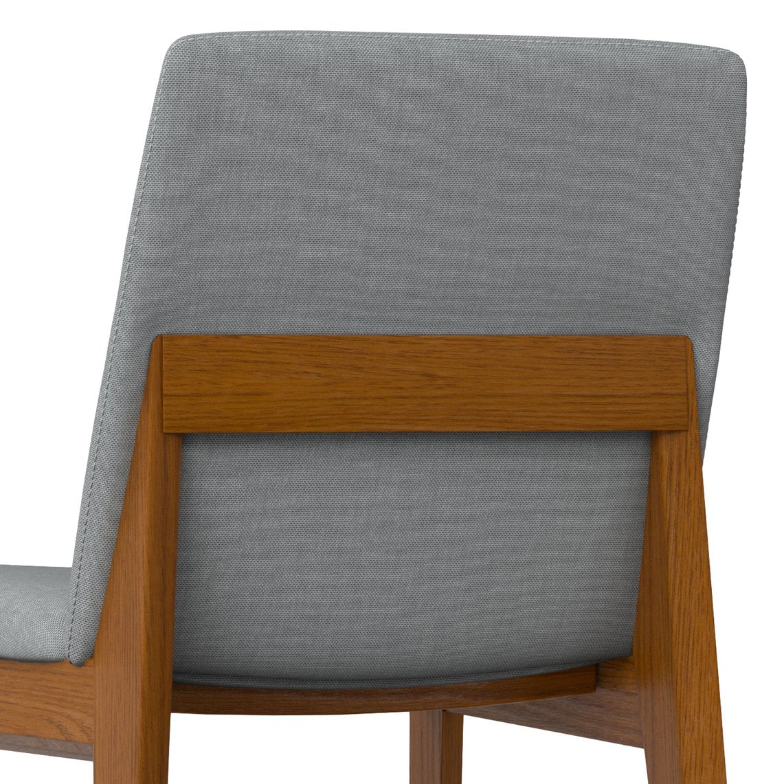 - Upholstery: Light grey, linen-look fabric covering the seat and back for a timeless, versatile appearance