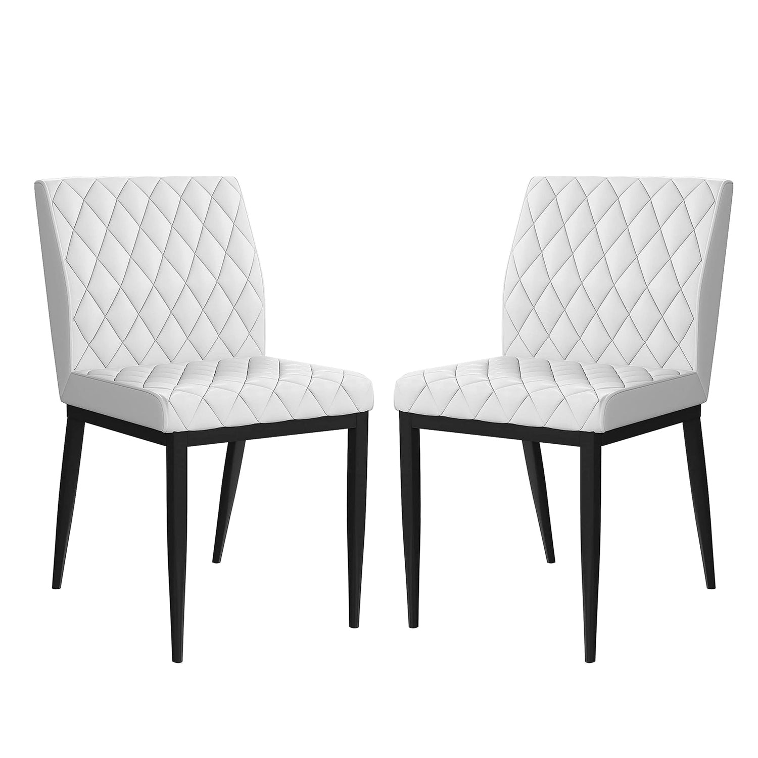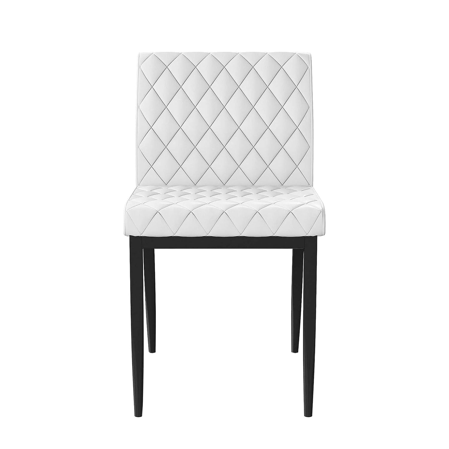 Bring modern sophistication to your dining space with this set of 2 leatherette and metal chairs in black and ivory. Clean lines, a diamond-pattern seat back, and a durable metal frame combine for contemporary style, everyday comfort, and easy maintenance—ideal for dining rooms, breakfast nooks, or casual seating areas.