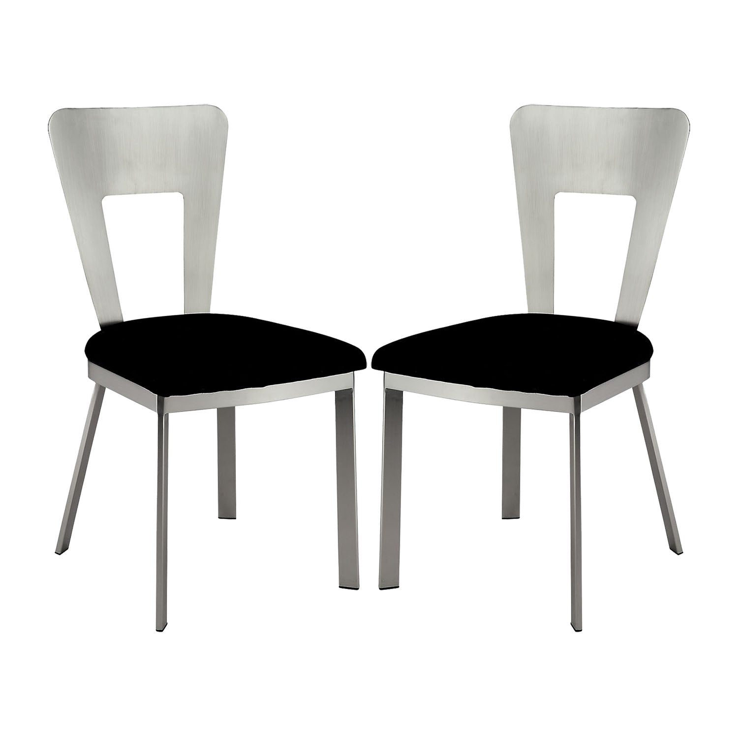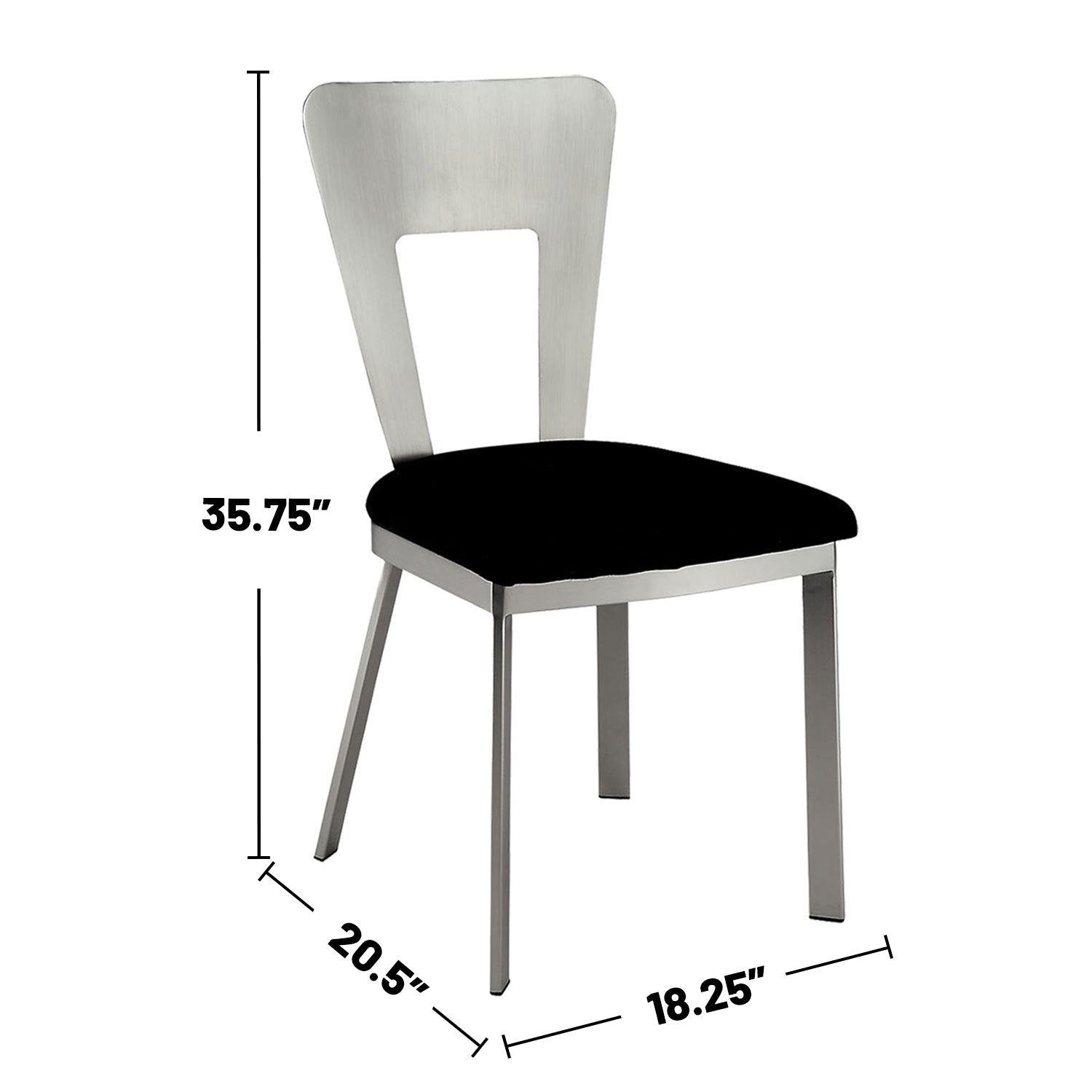 Enjoy contemporary comfort and sleek style with this set of two side chairs, designed to elevate dining rooms, kitchens, or modern workspaces. The combination of satin-plated metal frames and plush microfiber cushions offers durable support and a soft seating experience, while the black upholstery creates a chic contrast against the silver finish.