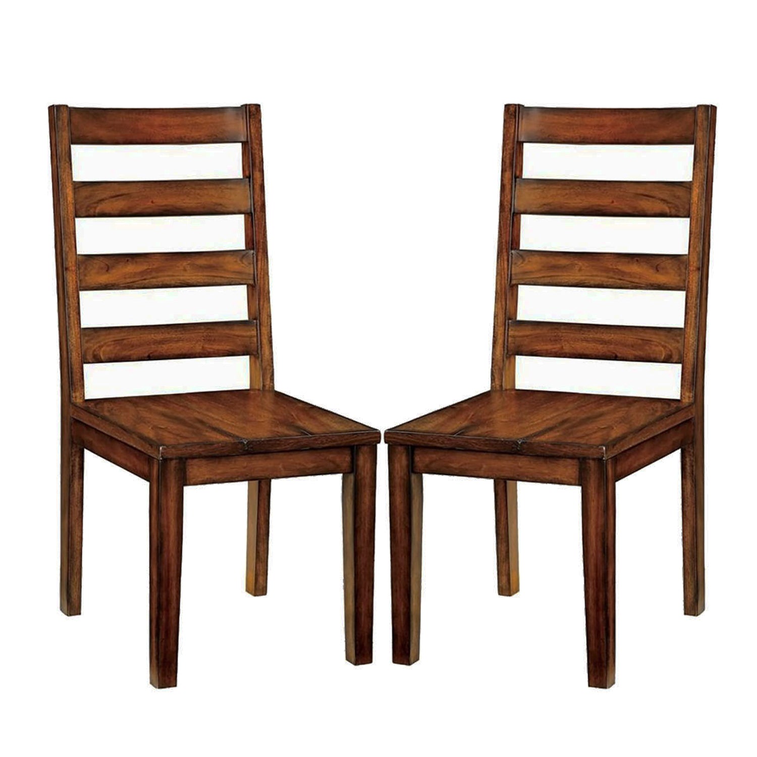 Bring classic country charm to your dining space with this set of two wooden dining chairs finished in a rich tobacco oak tone. These ladder-back chairs combine timeless styling with practical construction to create a warm, inviting seating option for everyday meals or casual gatherings.