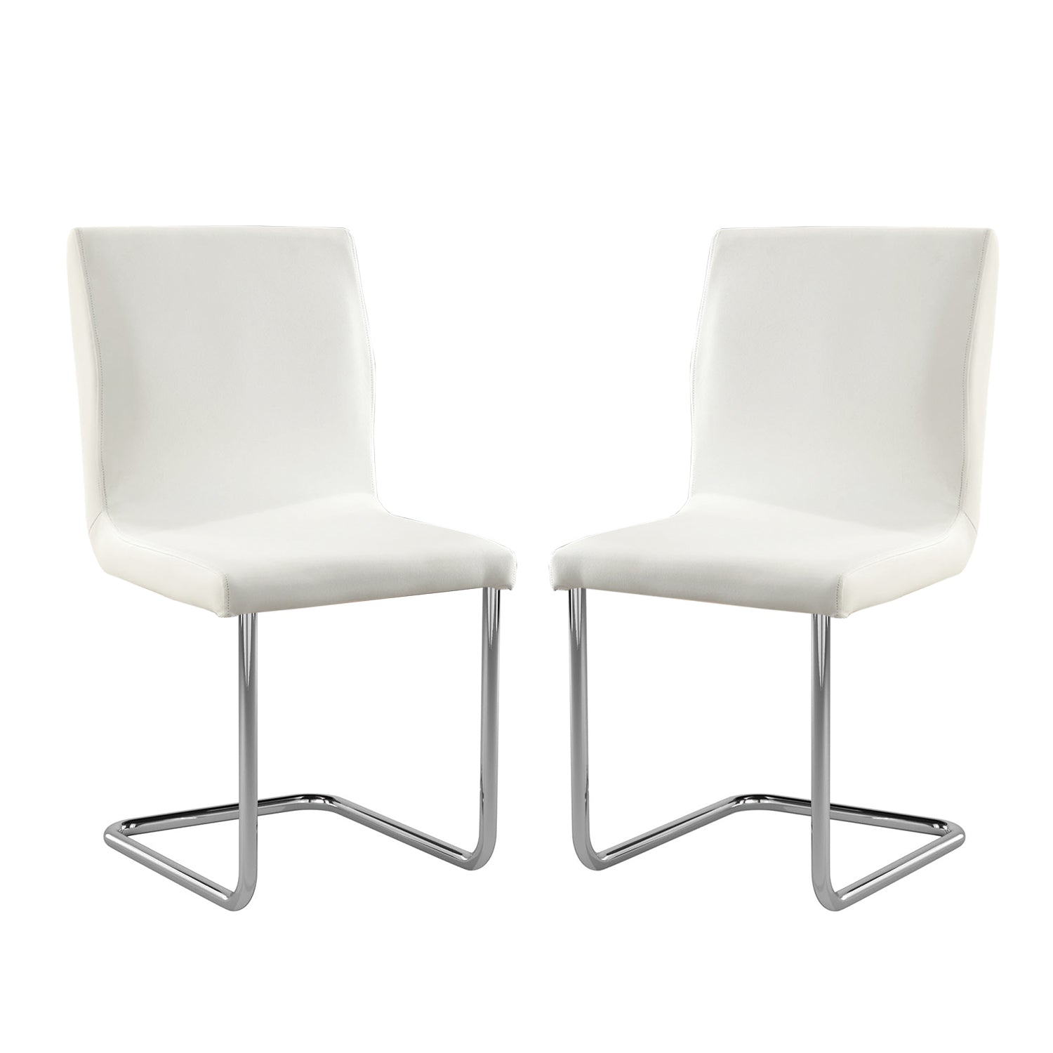 Bring modern elegance and everyday comfort to your dining or workspace with this convenient set of two padded white leatherette side chairs. Clean lines, chrome L‑shape legs, and a soft, easy‑care upholstery combine to create a versatile seating solution that complements contemporary and transitional interiors.