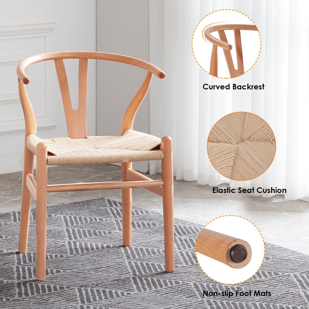 - Solid Wood Wishbone Chair: We use strong European high-end beech and American ash tree as raw materials, without any paint and formaldehyde, environmental friendly, for your family to provide a safe and healthy life. It perfectly shows the natural colors of wood grain and wood; and is simple and elegant