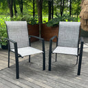 Upgrade your outdoor living with this sleek and durable two-piece patio chair set, designed for comfortable dining and relaxing by the pool, on the deck, or in the garden. Combining a rust-resistant metal frame with breathable, quick-drying fabric, these chairs deliver weather-ready performance, easy stacking storage, and a modern black-and-gray aesthetic that complements any outdoor décor.