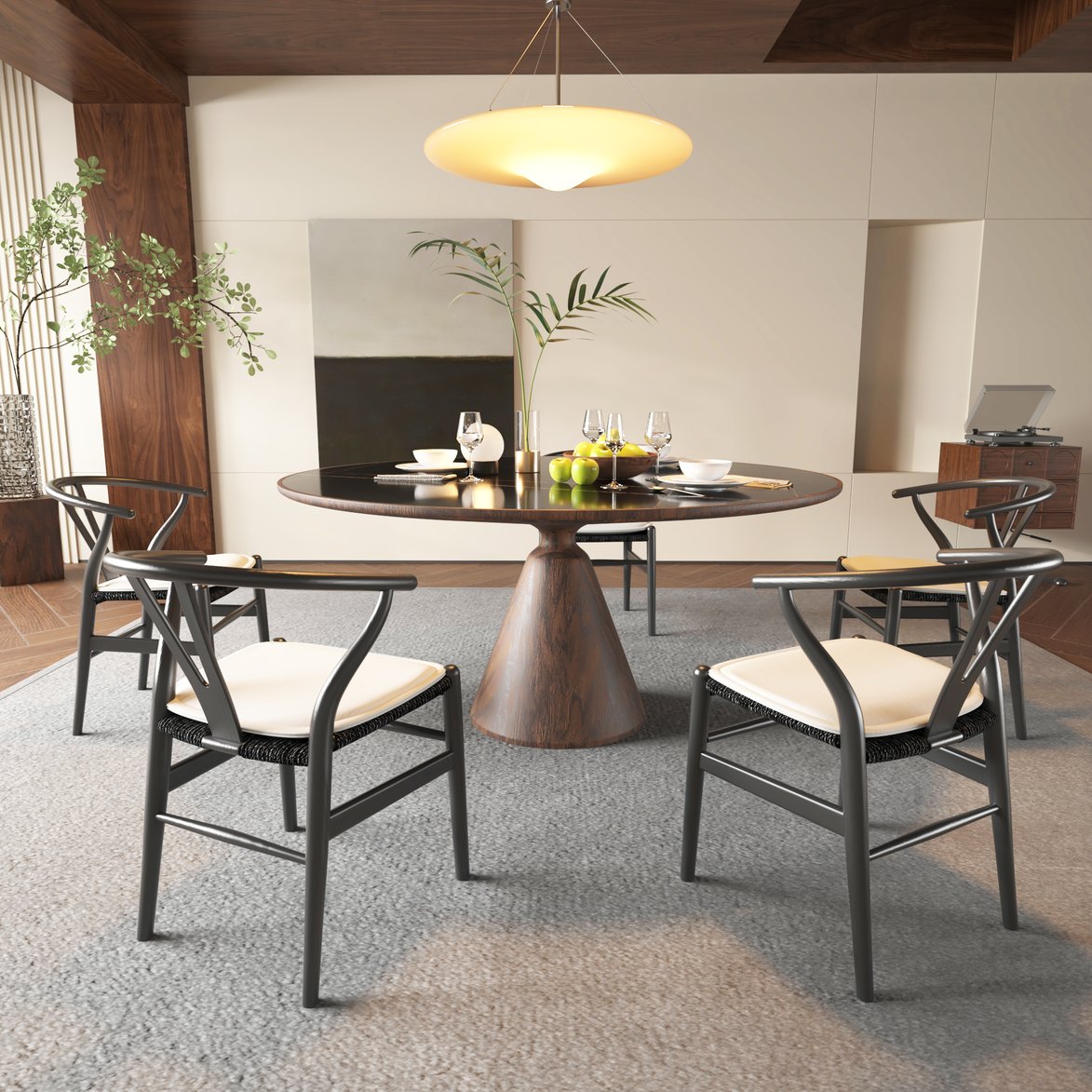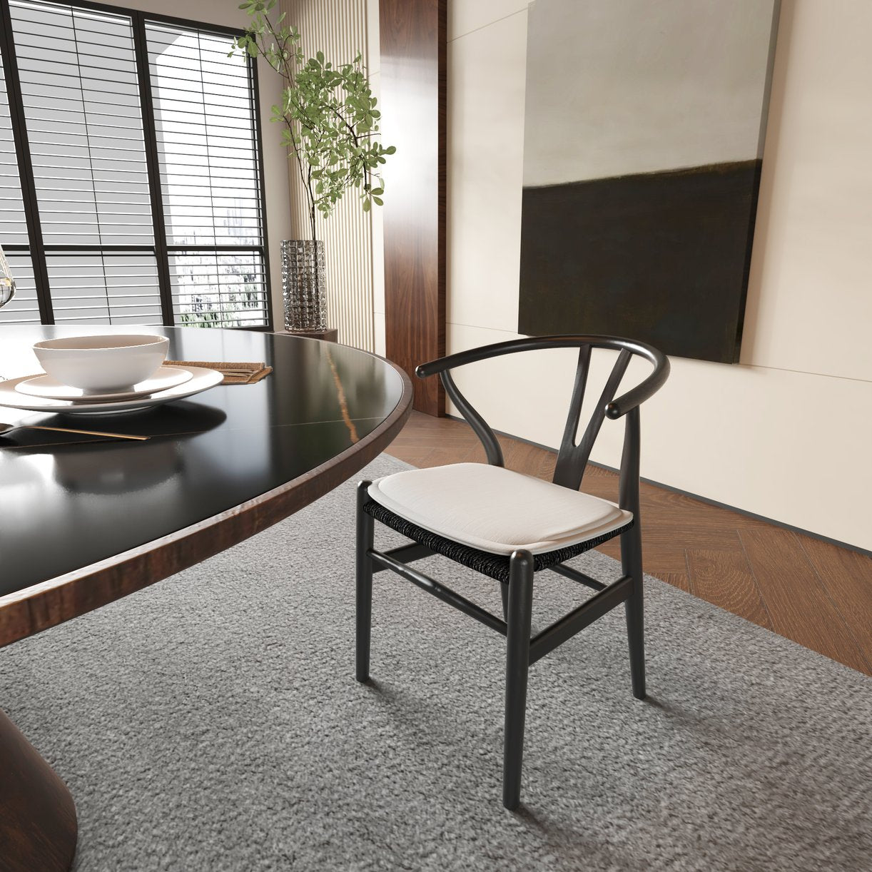 Bring timeless Scandinavian charm and everyday comfort to your dining area with this set of two fully assembled wishbone armchairs. Crafted from high-grade beech wood and inspired by the iconic "Y-Chair" silhouette, these chairs combine ergonomic support, durable construction, and understated mid-century design for a refined yet relaxed seating experience. Each chair arrives ready to use and includes a removable cushion so you can personalize comfort and style instantly.