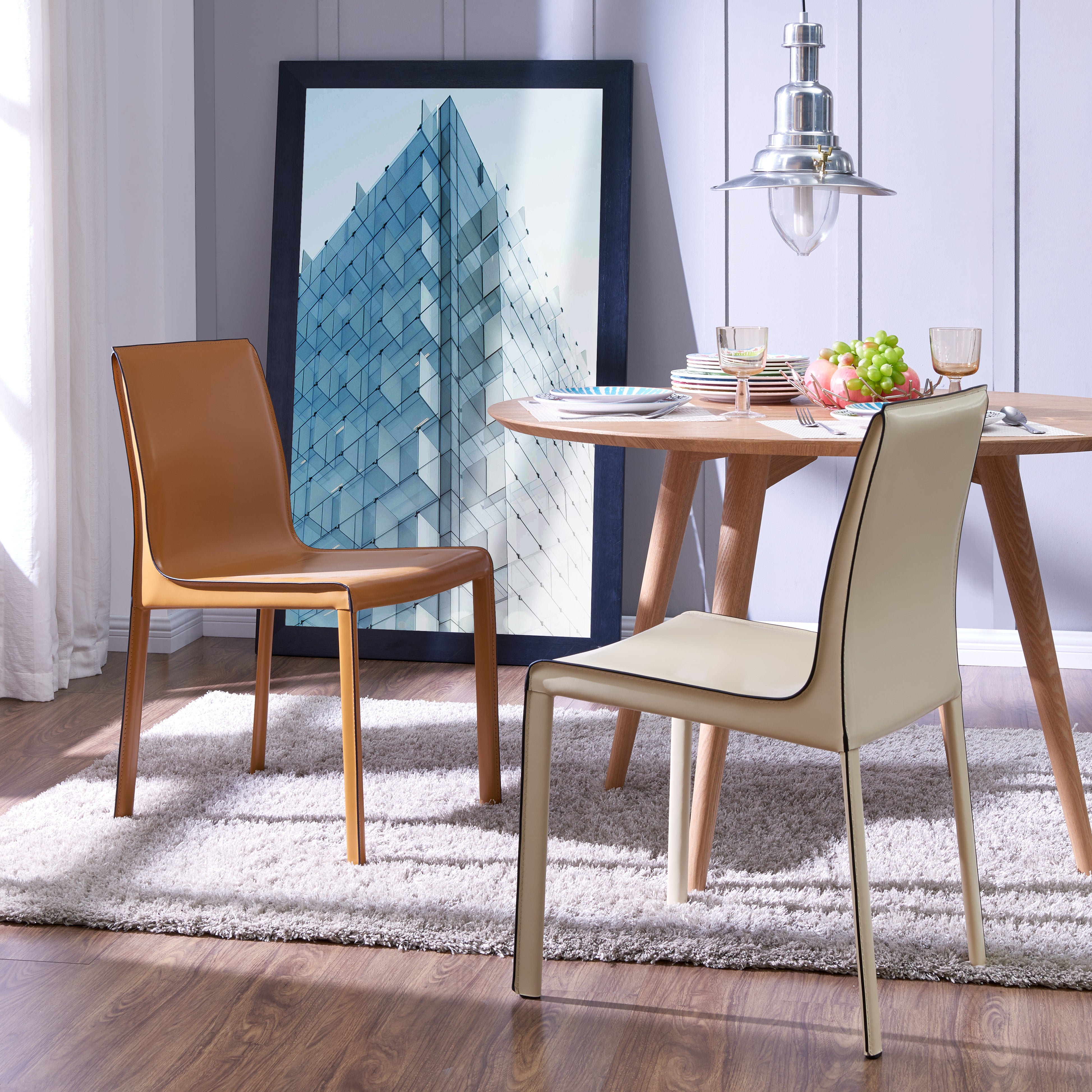 - Feature 1: MINIMALIST MODERN STYLE - in clean, non-fussy silhouette with piping detail, this chair utilizes recycled leather as upholstery. Constructed of powder coated steel legs for sturdiness.