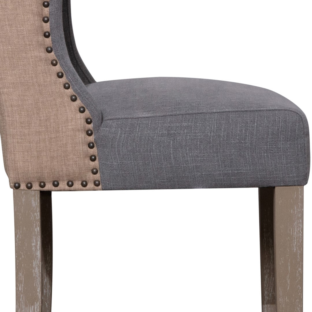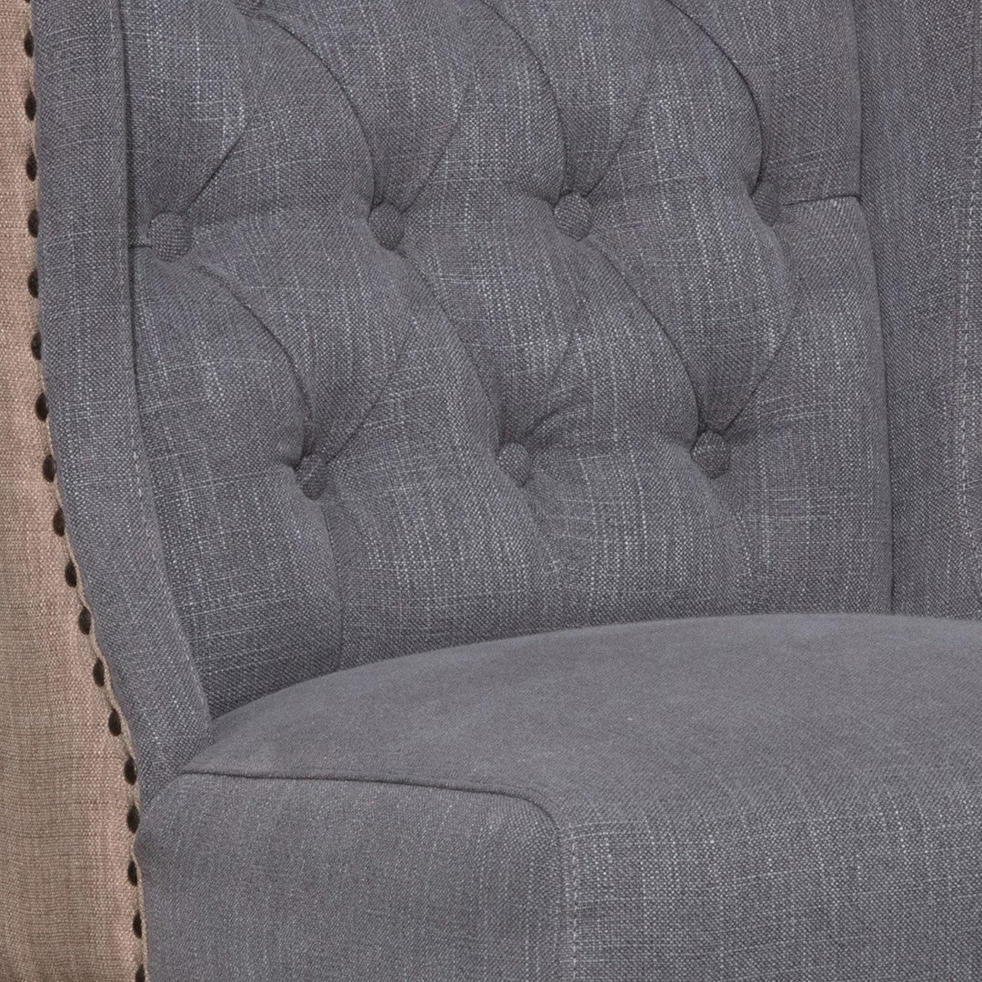 - Feature 2: TWO-TONED FABRIC UPHOLSTERY WITH DARK GREY LINEN AND JUTE MATERIALS