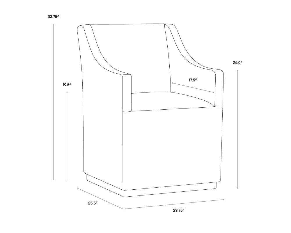 - Dimensions: Zane Wheeled Lounge Chair - Abbington Black 104982 = 23.75W x 25.5D x 33.75H | 42lbs