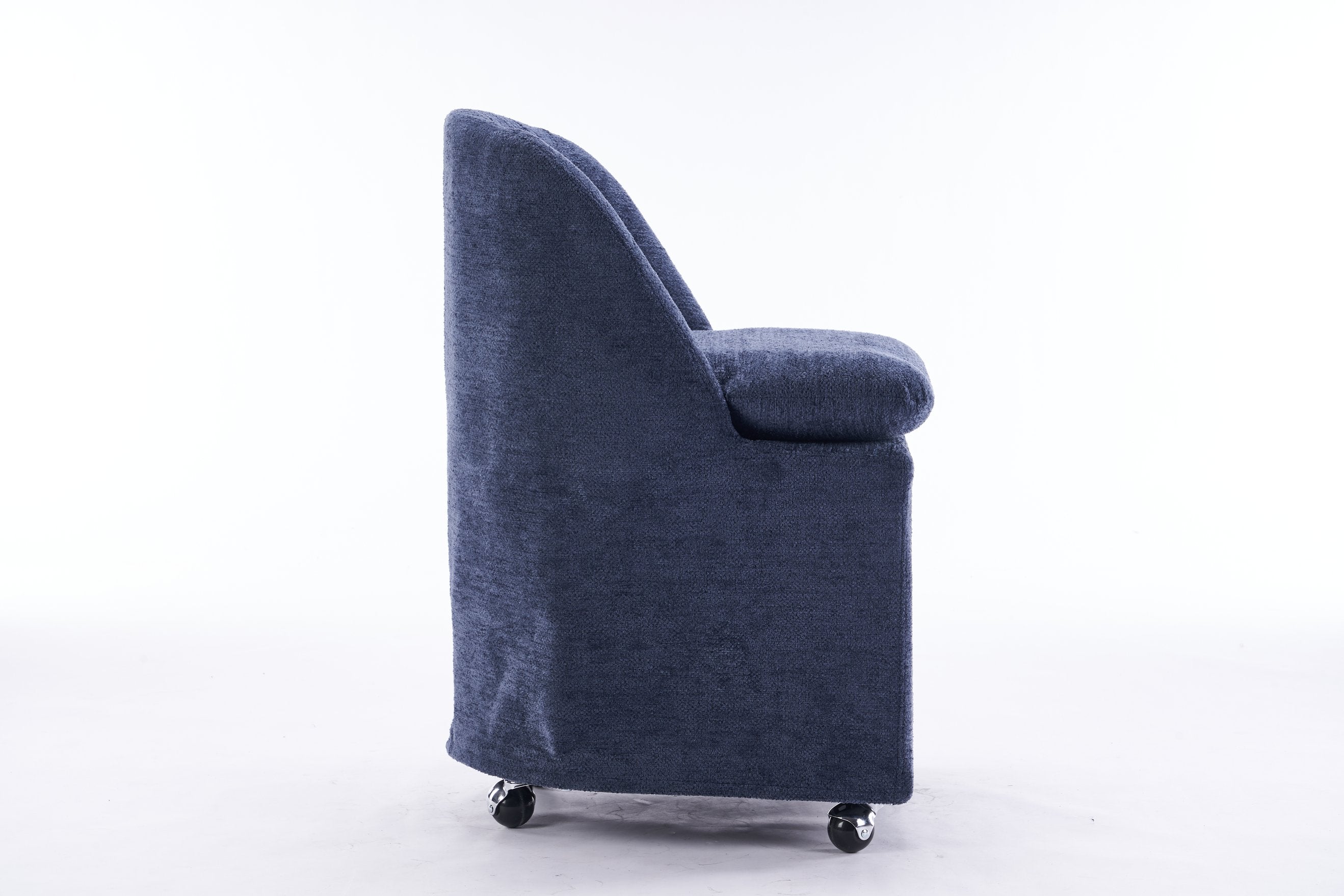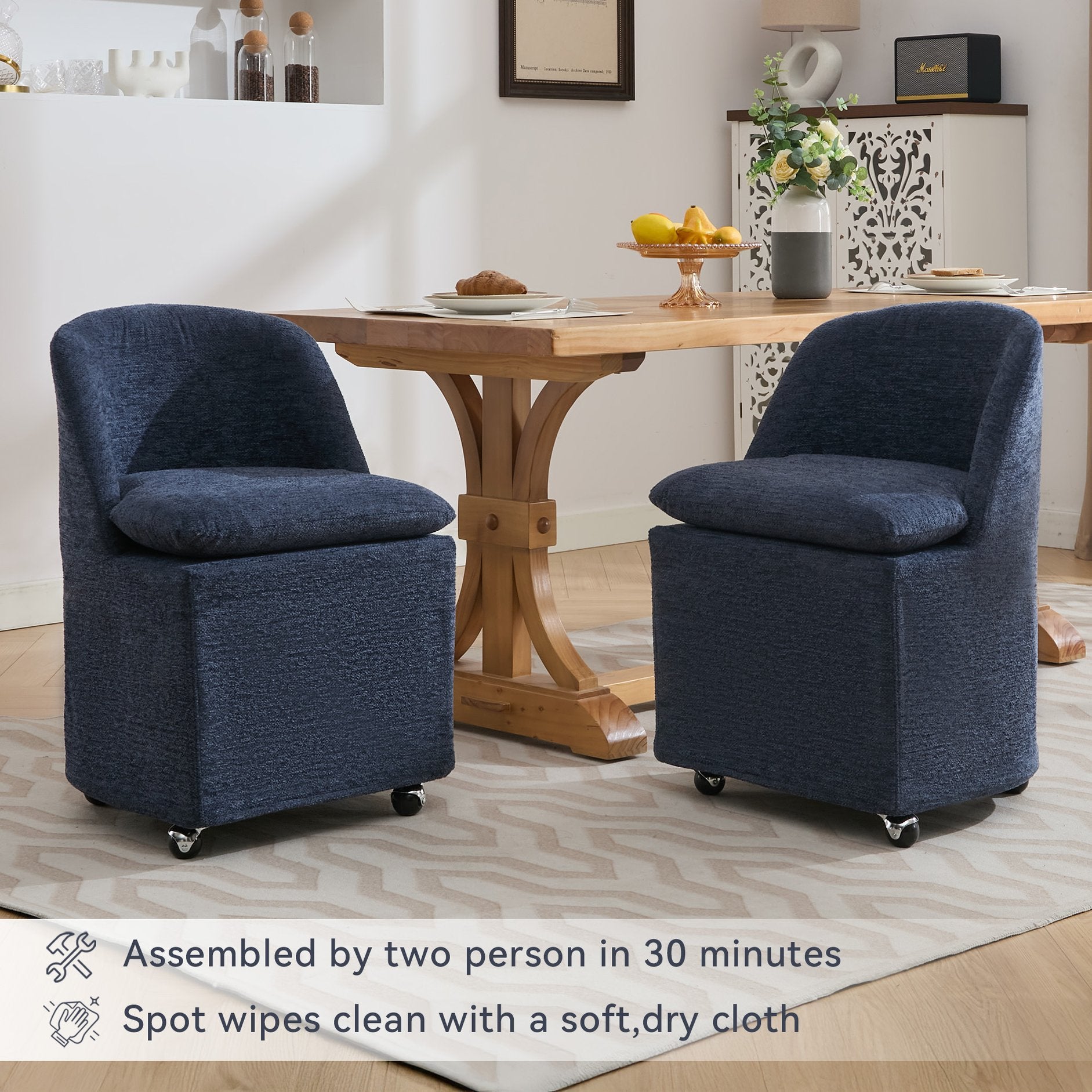 Enjoy comfortable, stylish seating with this set of two beige chenille dining chairs—designed for everyday use, smooth mobility, and easy integration into dining rooms or other indoor spaces. Plush upholstery and ergonomic contours provide supportive seating, while sturdy construction and 360° swivel casters make these chairs both practical and versatile.